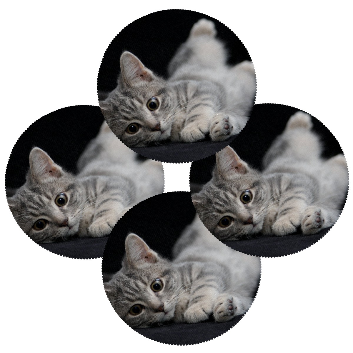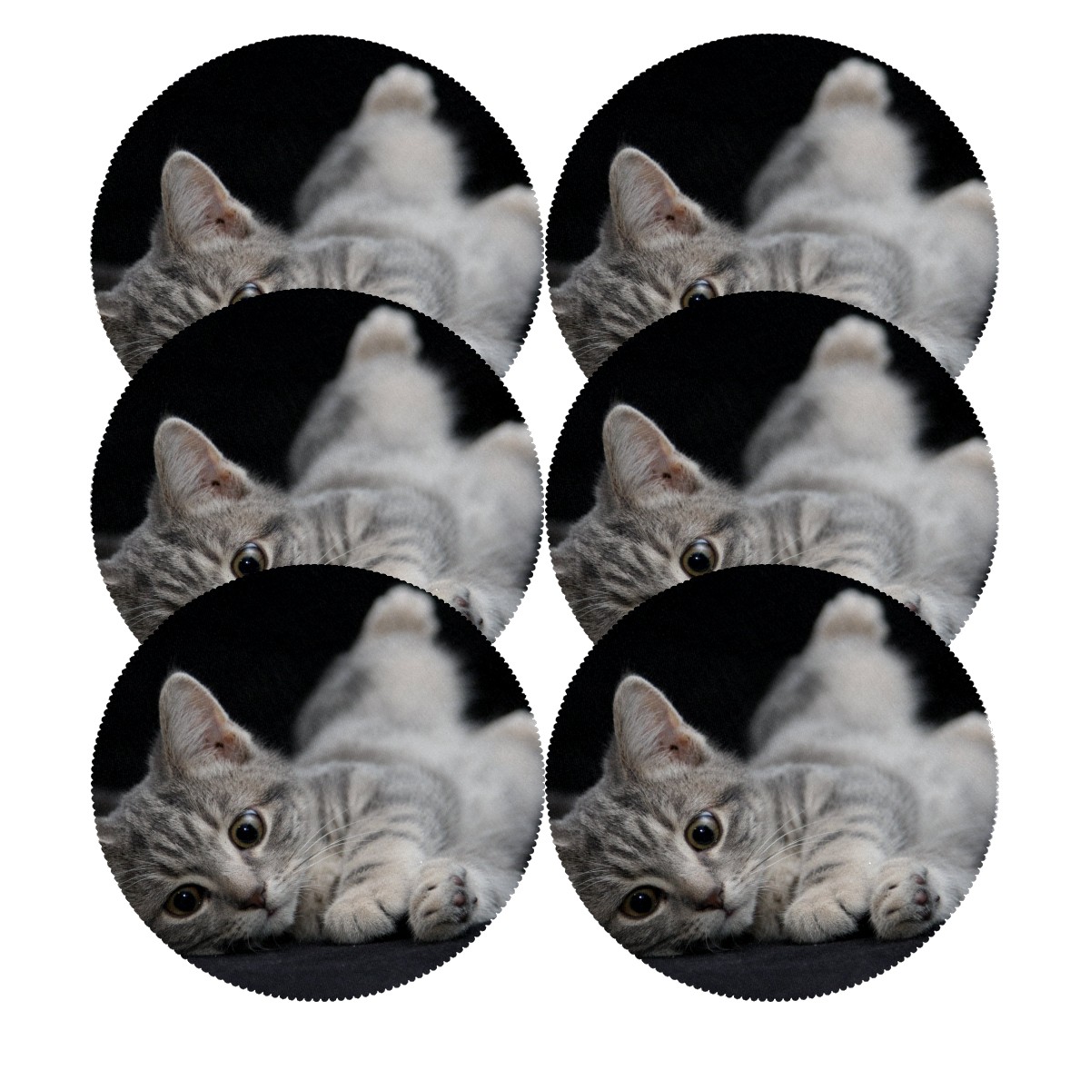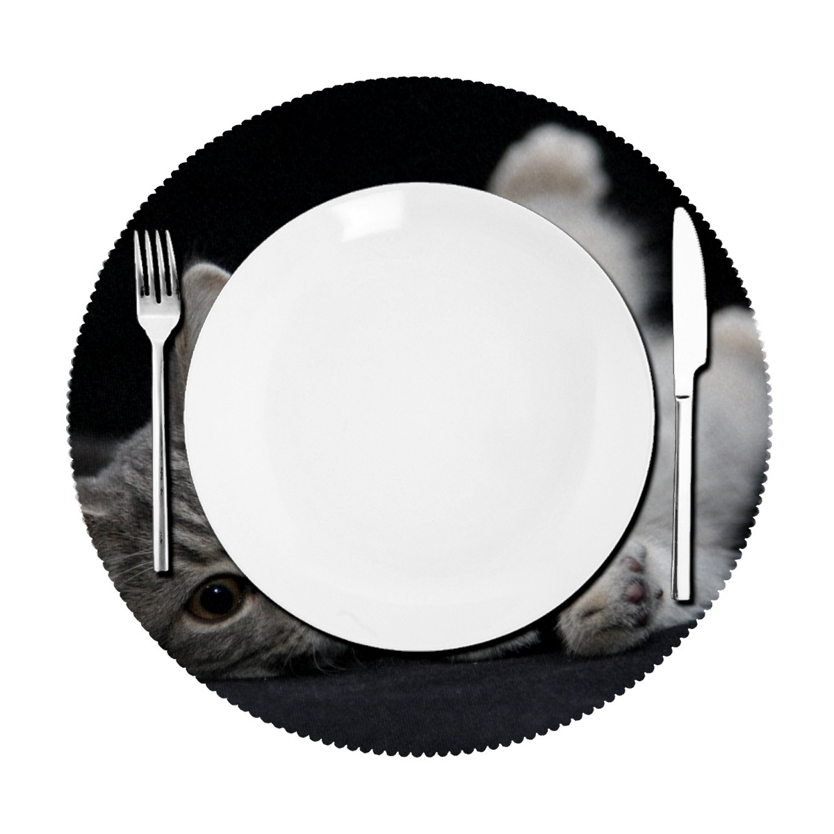 Round Placemats Set of 1 Cute Cat Dining Table Mats Kitchen Waterproof Washable Place Mats Wipeable Boho Tablemats for Home Decor