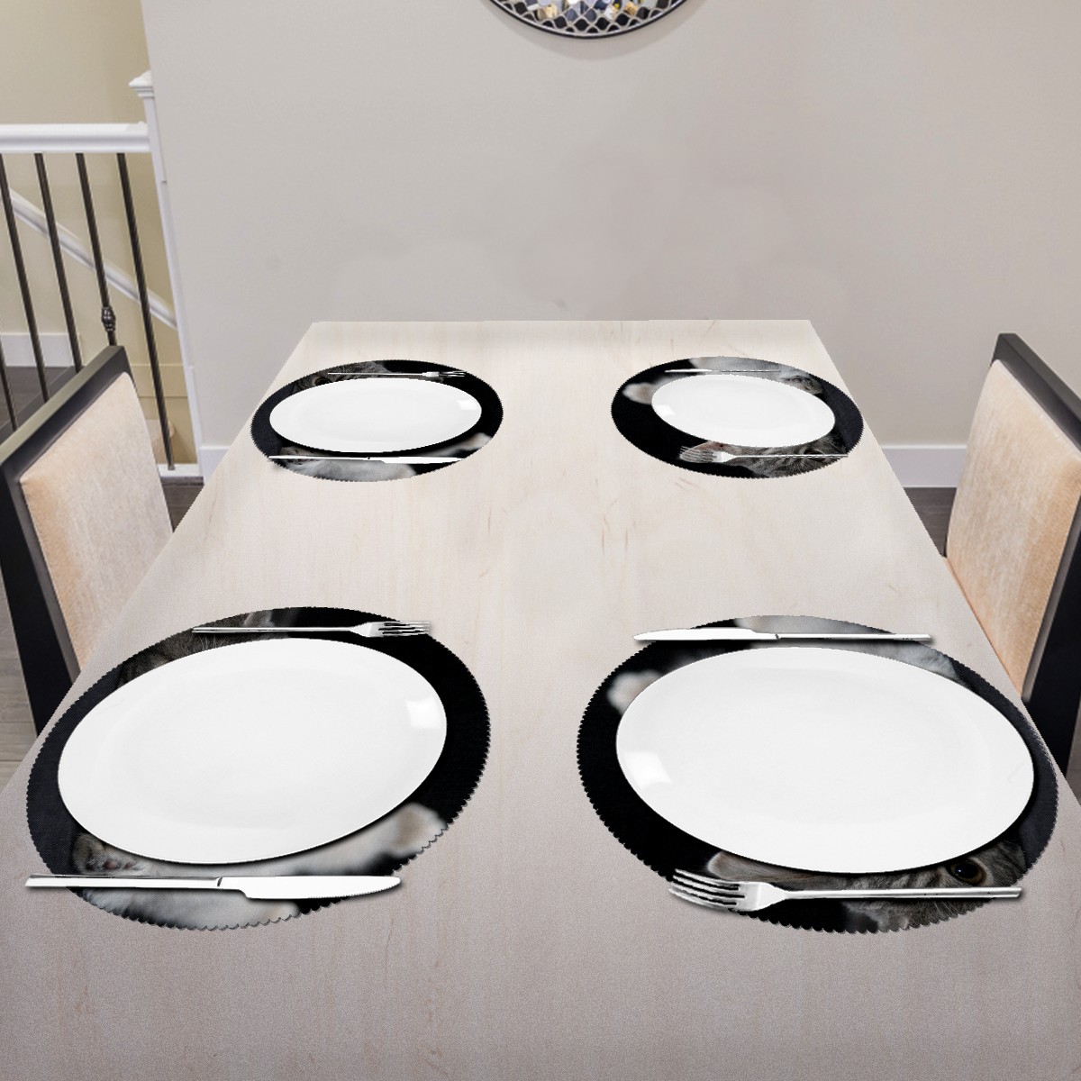 • <p><b>The fashionable design with this table placemat will makes your table look more outstanding and pretty.</b></p> <p><b>Diameter:</b> 15.4 In / 39 cm.</p> <p><b>Packing:</b> 1 PCS/4 PCS/6 PCS.</p> <p><b>Care Instructions:</b></p> <p>1.Wash with water and dry in a cool place. If there are stains on the placemat, you can wipe it with a damp sponge or damp cloth.</p> <p>2.Do not machine wash or sterilize in a microwave oven.</p> <p>3.Note: The package has been rolled up. If you encounter crease problems, please immerse it in warm water and take it out and place a flat object on the mat. The crease will disappear.</p> <p><b>Quality you can trust:</b></p> <p><b>1.Material:High Quality Polyester.</b></p> <p>2.Environmental protection material, no pollution, can be cleaned directly, non-slip, heat-resistant.</p> <p>3.Durable, no deformation,not fade,wrinkle resistant,wear resistant,easy to clean.</p> <p>4.Personalized design. One-Side High Quality Printing Technology.Vivid color and clear images.&nbsp;</p> <p><b>Home Decoration: Suitable for kitchen table,dinner hall,restaurant,hotel,business office,cafe,BBQ,picnic,party,etc.Both practical and decorative.</b></p> <p><b>Best Birthday/Christmas/Halloween/easter/thanksgiving/wedding/engagement anniversary gift to your baby/children/kids/family/boys/girls/parents/friends/girlfriend/boyfriend/wife, etc.</b></p>