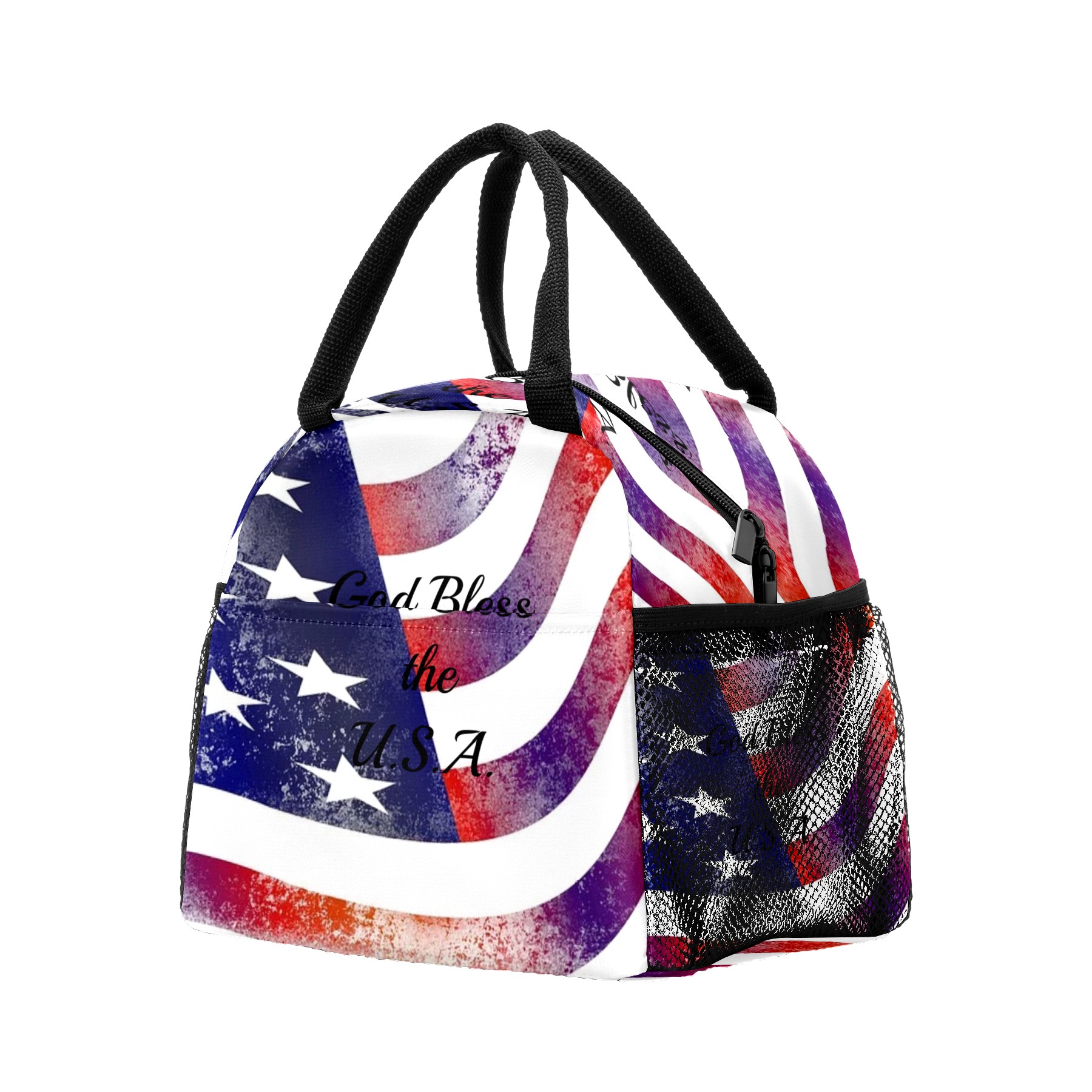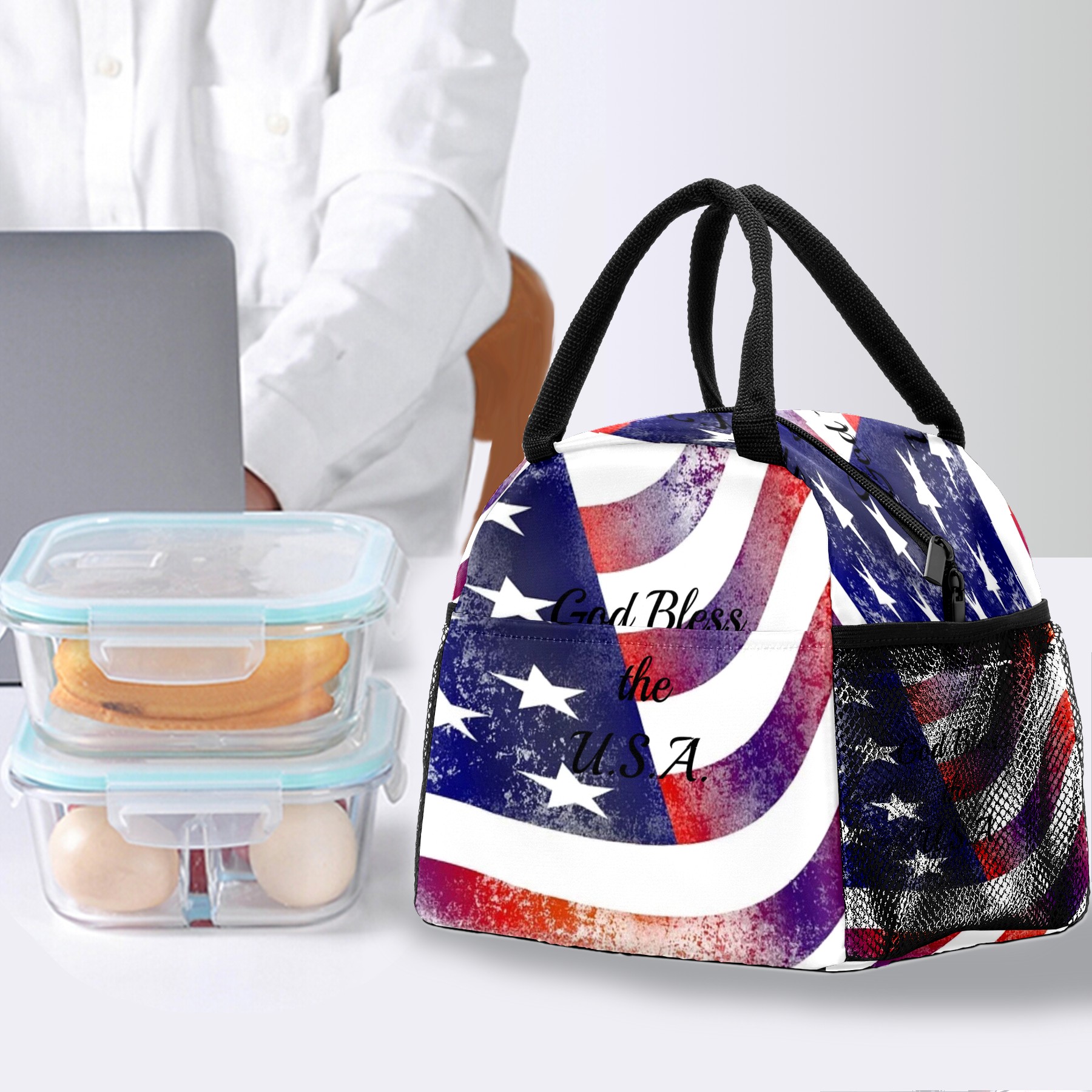 Lunch Bag for Women Men, God Bless The USA Insulated Reusable Lunch Box Thermal Cooler Tote Bag for Work Picnic Hiking Travel Beach