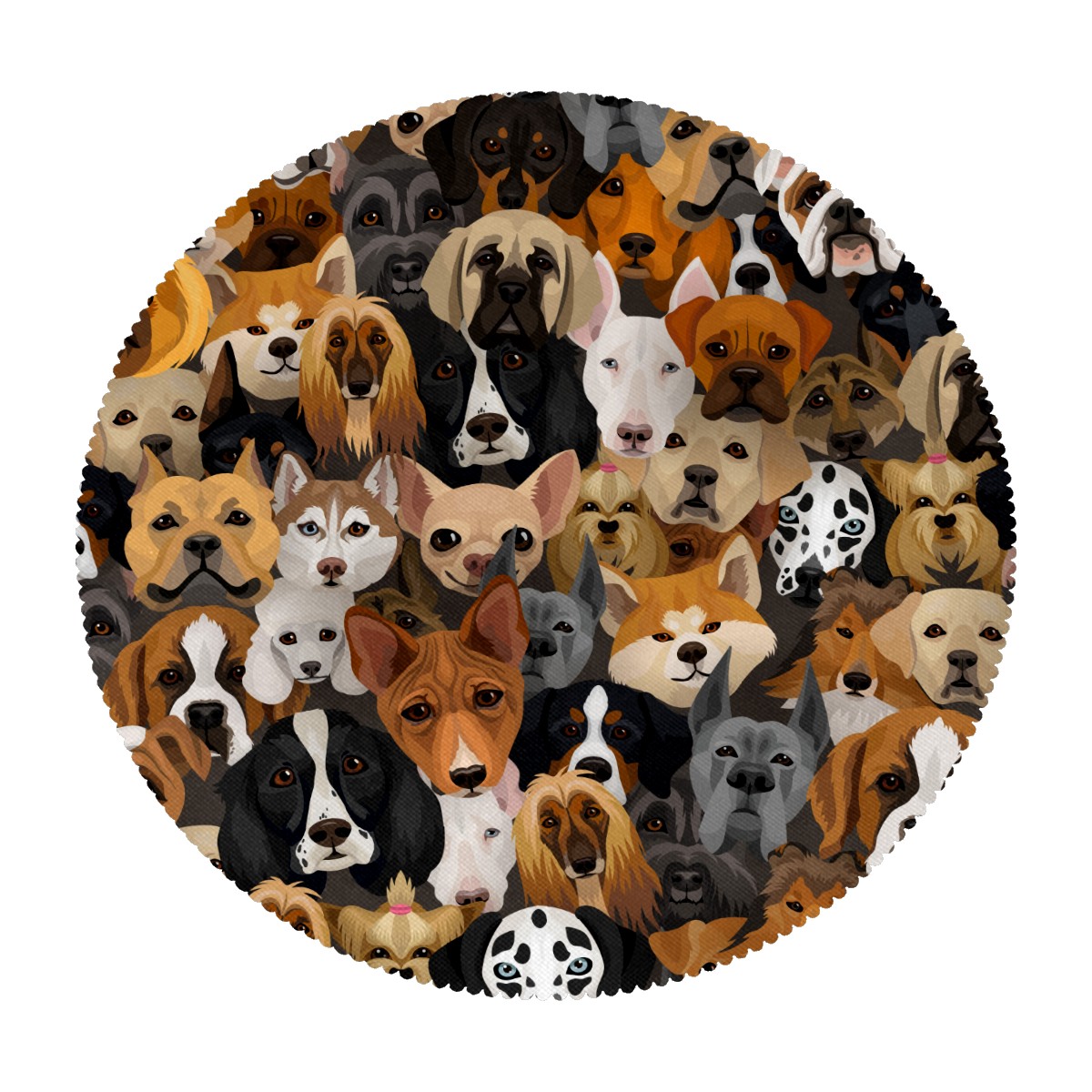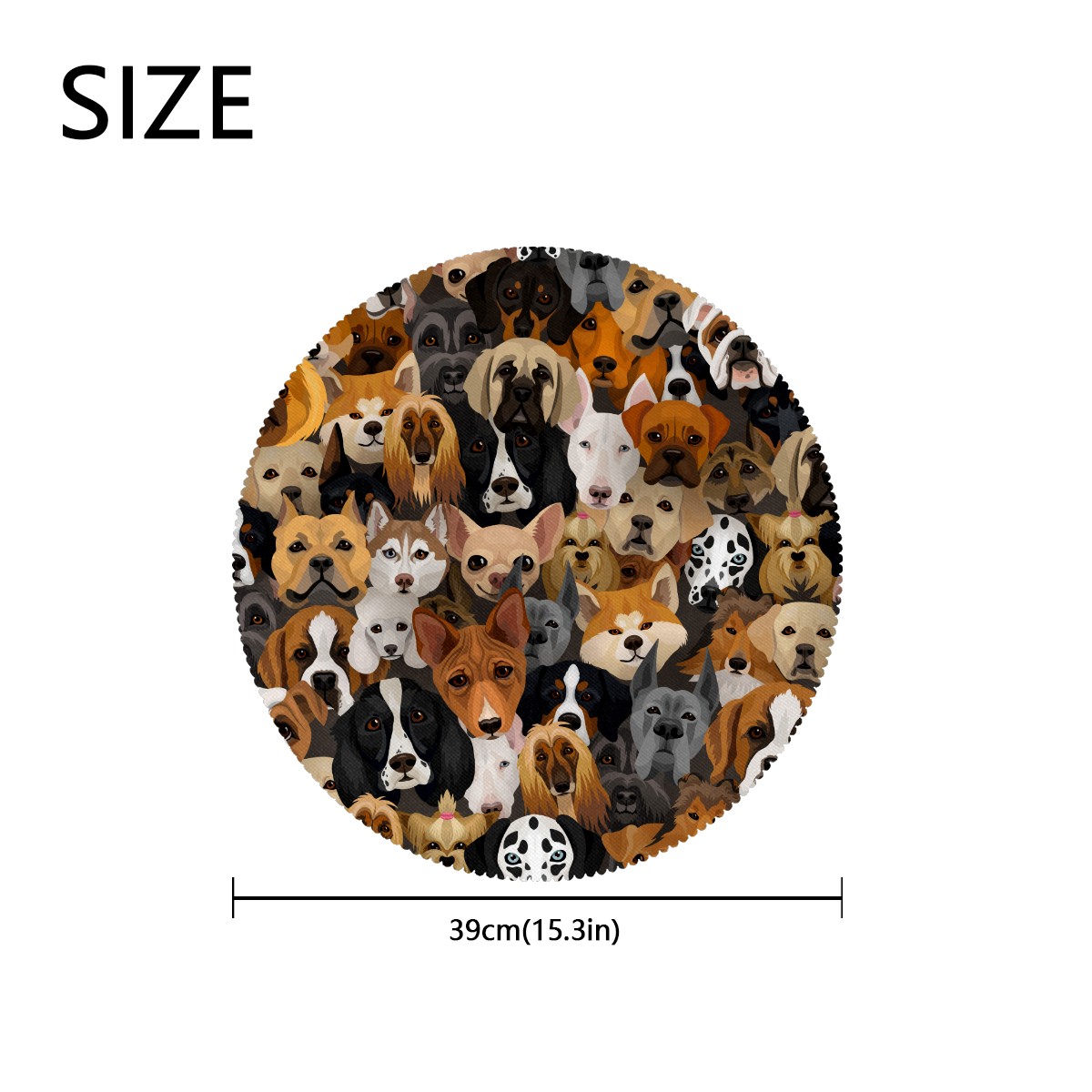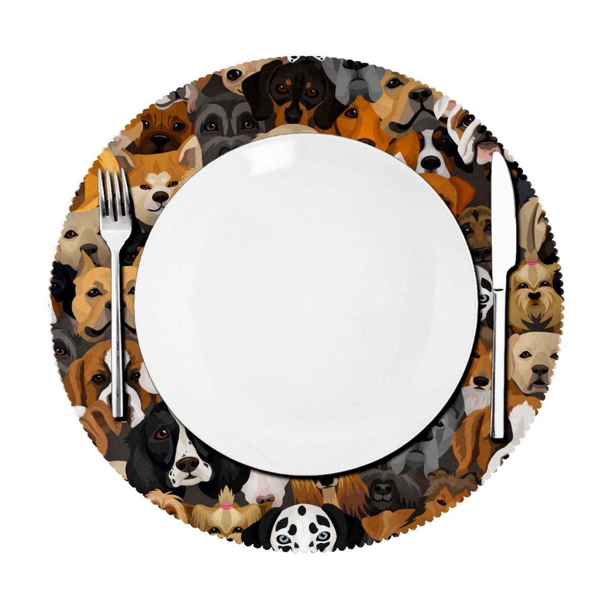 Round Placemats Set of 1 Cartoon Puppy Dog Dining Table Mats Kitchen Waterproof Washable Place Mats Wipeable Boho Tablemats for Home Decor