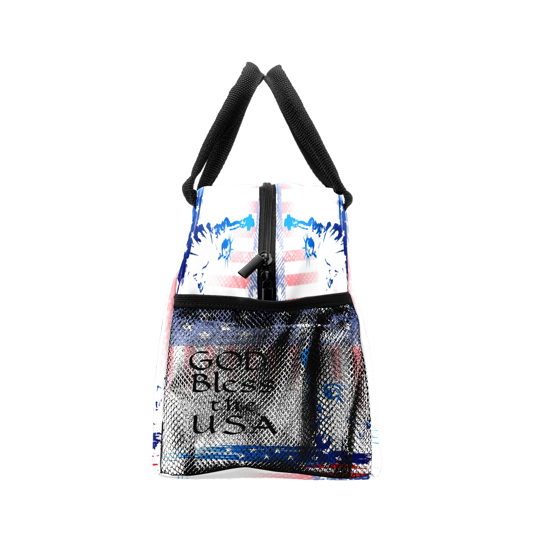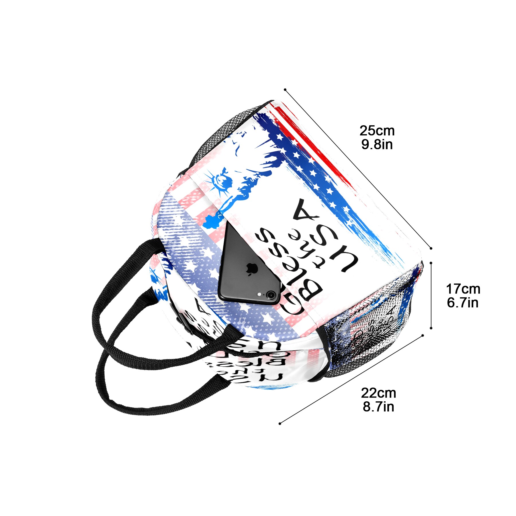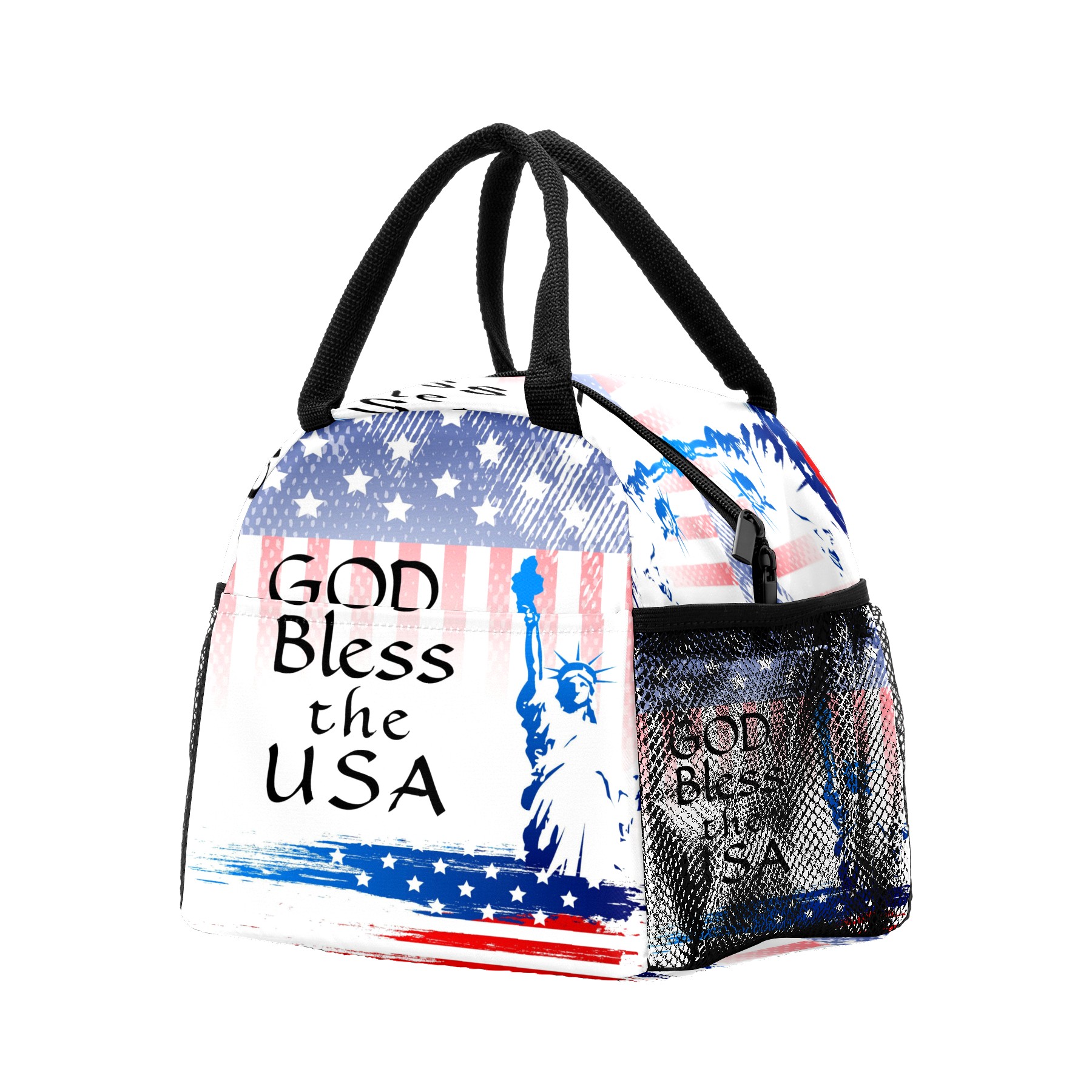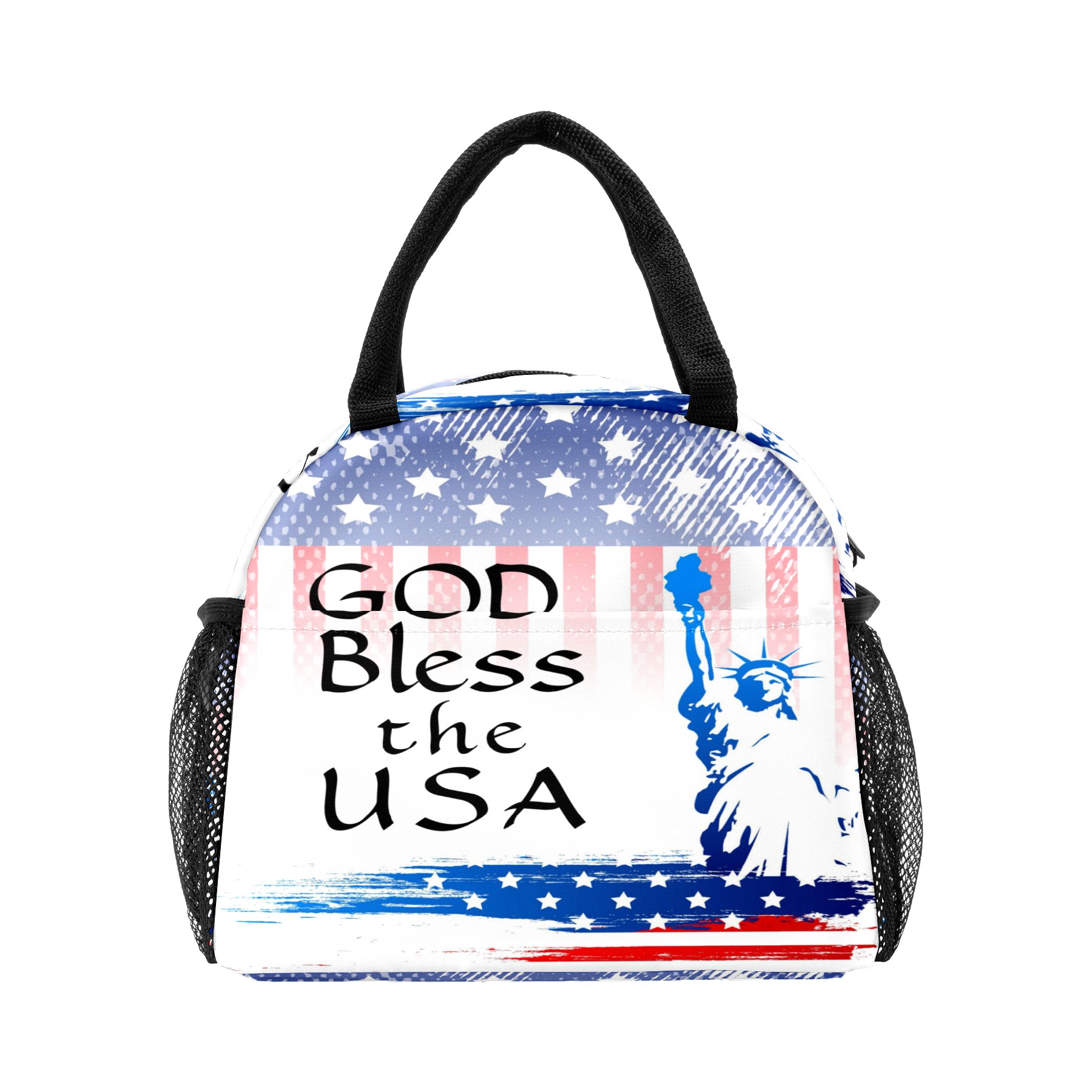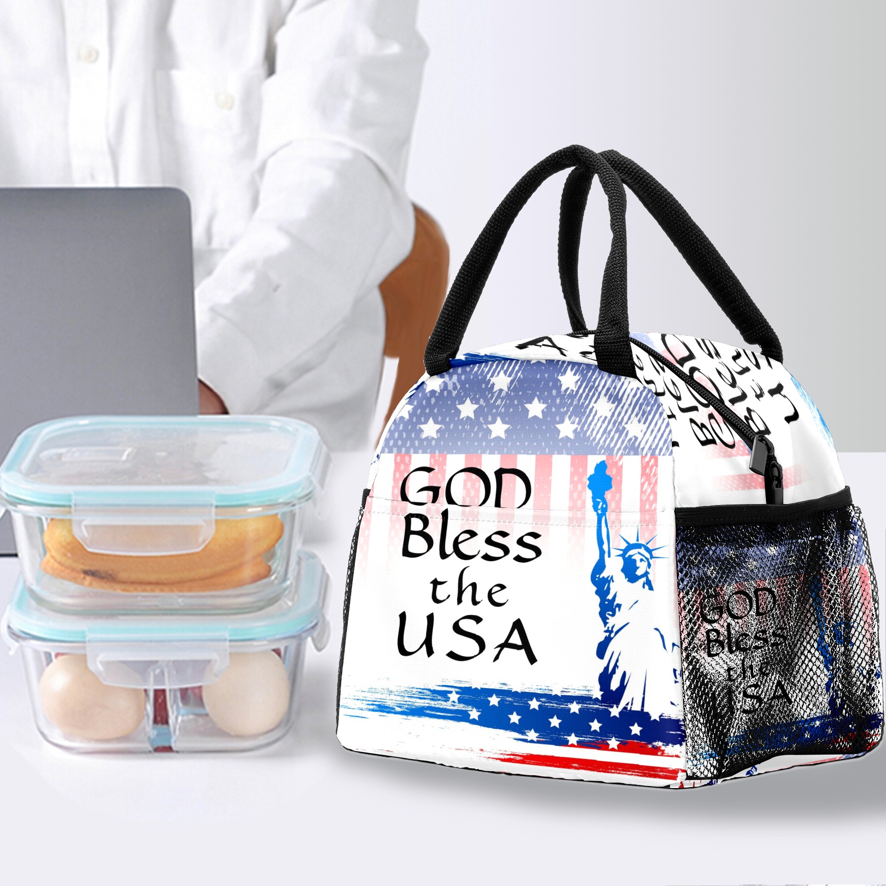 Lunch Bag for Women Men, God Bless The USA Statue Of Liberty Insulated Reusable Lunch Box Thermal Cooler Tote Bag for Work Picnic Hiking Travel Beach
