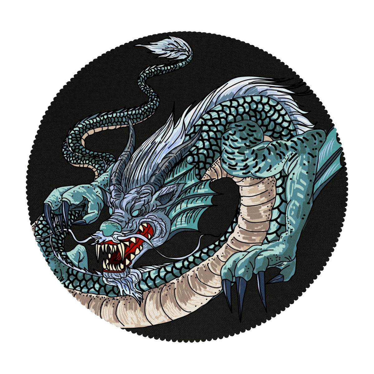 Round Placemats Set of 1 Chinese Dragon Vintage Dining Table Mats Kitchen Waterproof Washable Place Mats Wipeable Boho Tablemats for Home Decor