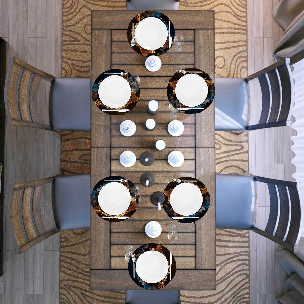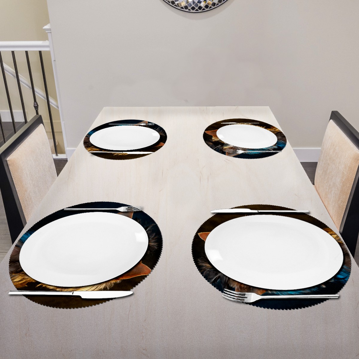 • <p><b>The fashionable design with this table placemat will makes your table look more outstanding and pretty.</b></p> <p><b>Diameter:</b> 15.4 In / 39 cm.</p> <p><b>Packing:</b> 1 PCS/4 PCS/6 PCS.</p> <p><b>Care Instructions:</b></p> <p>1.Wash with water and dry in a cool place. If there are stains on the placemat, you can wipe it with a damp sponge or damp cloth.</p> <p>2.Do not machine wash or sterilize in a microwave oven.</p> <p>3.Note: The package has been rolled up. If you encounter crease problems, please immerse it in warm water and take it out and place a flat object on the mat. The crease will disappear.</p> <p><b>Quality you can trust:</b></p> <p><b>1.Material:High Quality Polyester.</b></p> <p>2.Environmental protection material, no pollution, can be cleaned directly, non-slip, heat-resistant.</p> <p>3.Durable, no deformation,not fade,wrinkle resistant,wear resistant,easy to clean.</p> <p>4.Personalized design. One-Side High Quality Printing Technology.Vivid color and clear images.&nbsp;</p> <p><b>Home Decoration: Suitable for kitchen table,dinner hall,restaurant,hotel,business office,cafe,BBQ,picnic,party,etc.Both practical and decorative.</b></p> <p><b>Best Birthday/Christmas/Halloween/easter/thanksgiving/wedding/engagement anniversary gift to your baby/children/kids/family/boys/girls/parents/friends/girlfriend/boyfriend/wife, etc.</b></p>