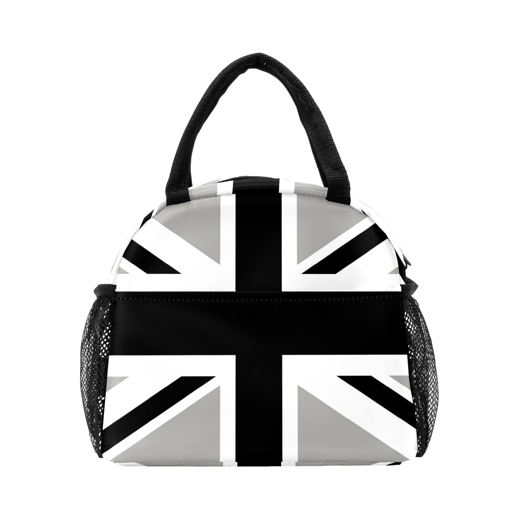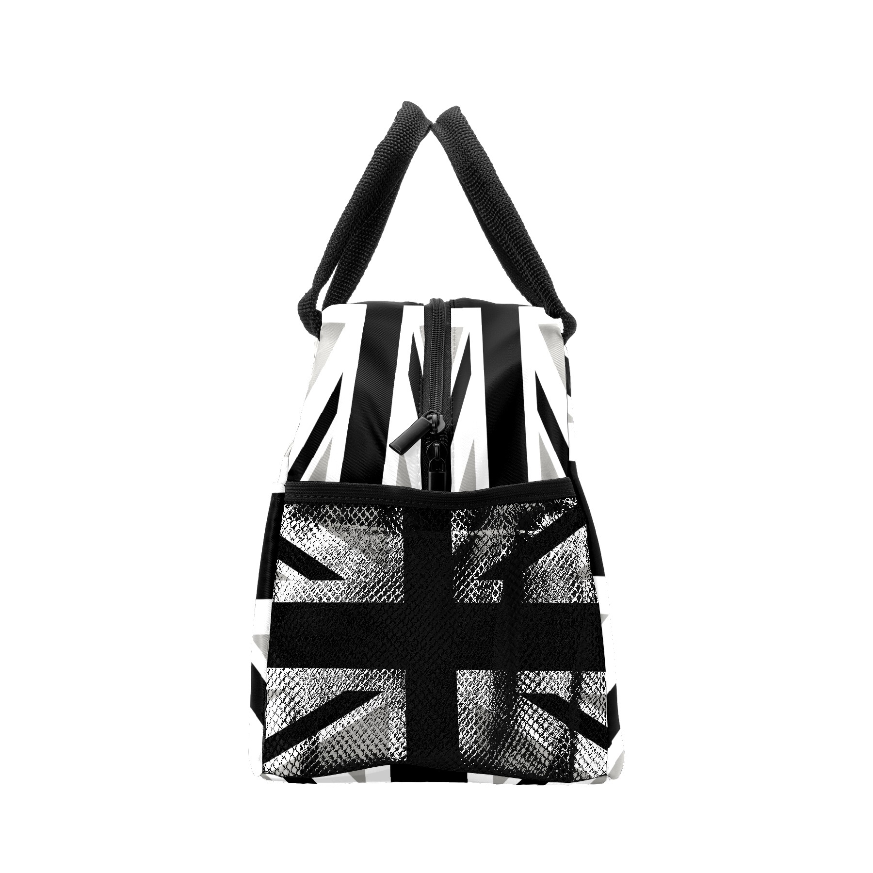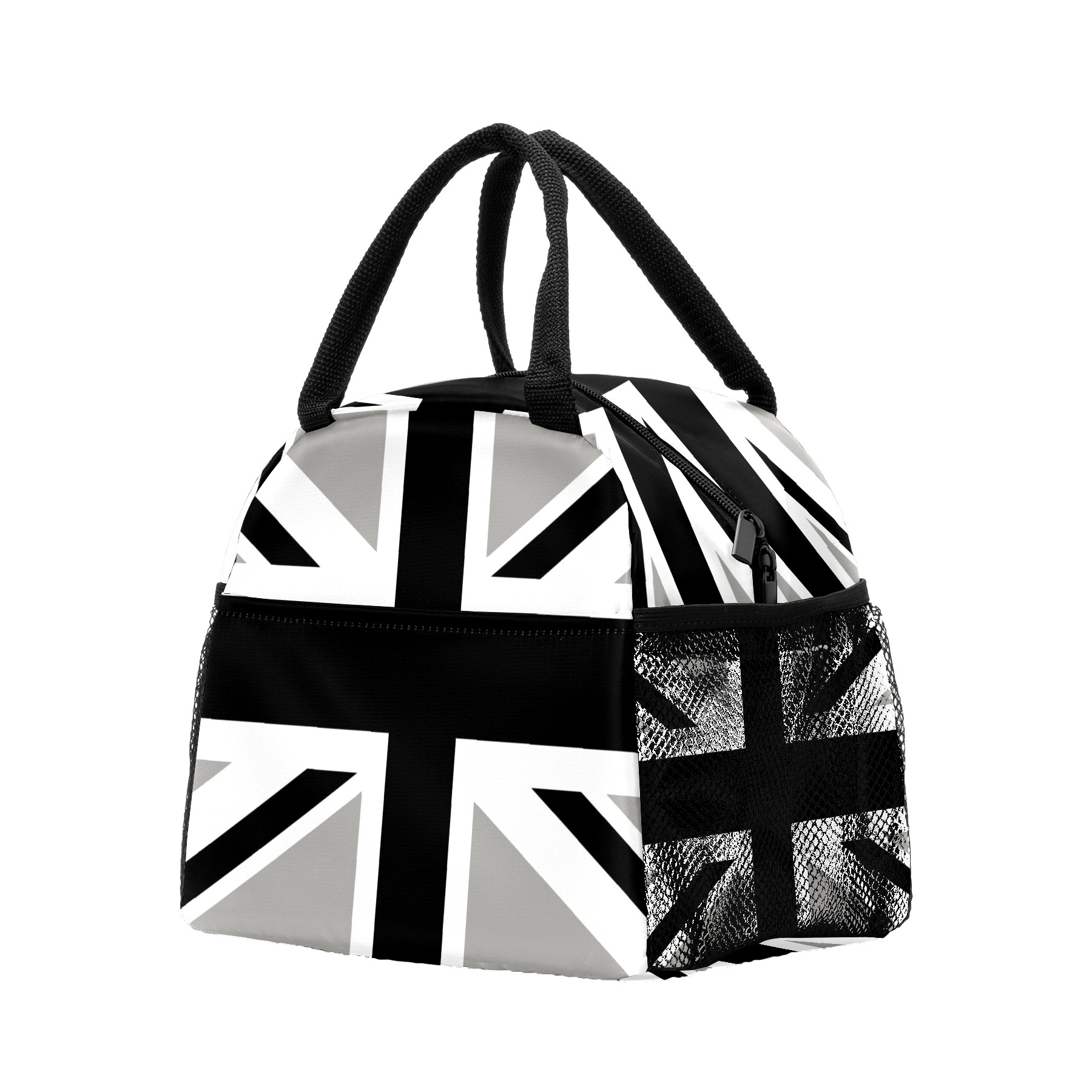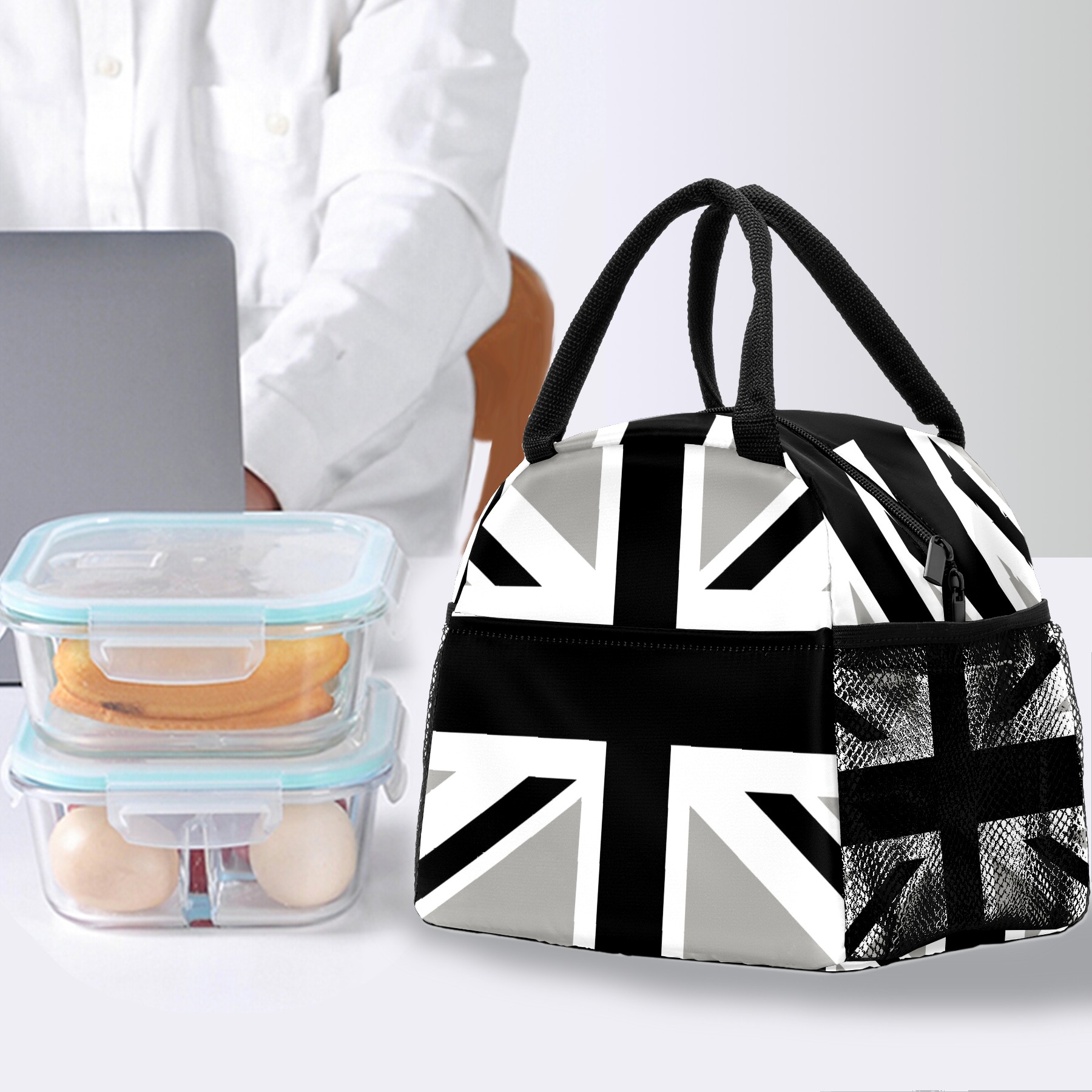 Lunch Bag for Women Men, Gray Black White UK Flag Insulated Reusable Lunch Box Thermal Cooler Tote Bag for Work Picnic Hiking Travel Beach