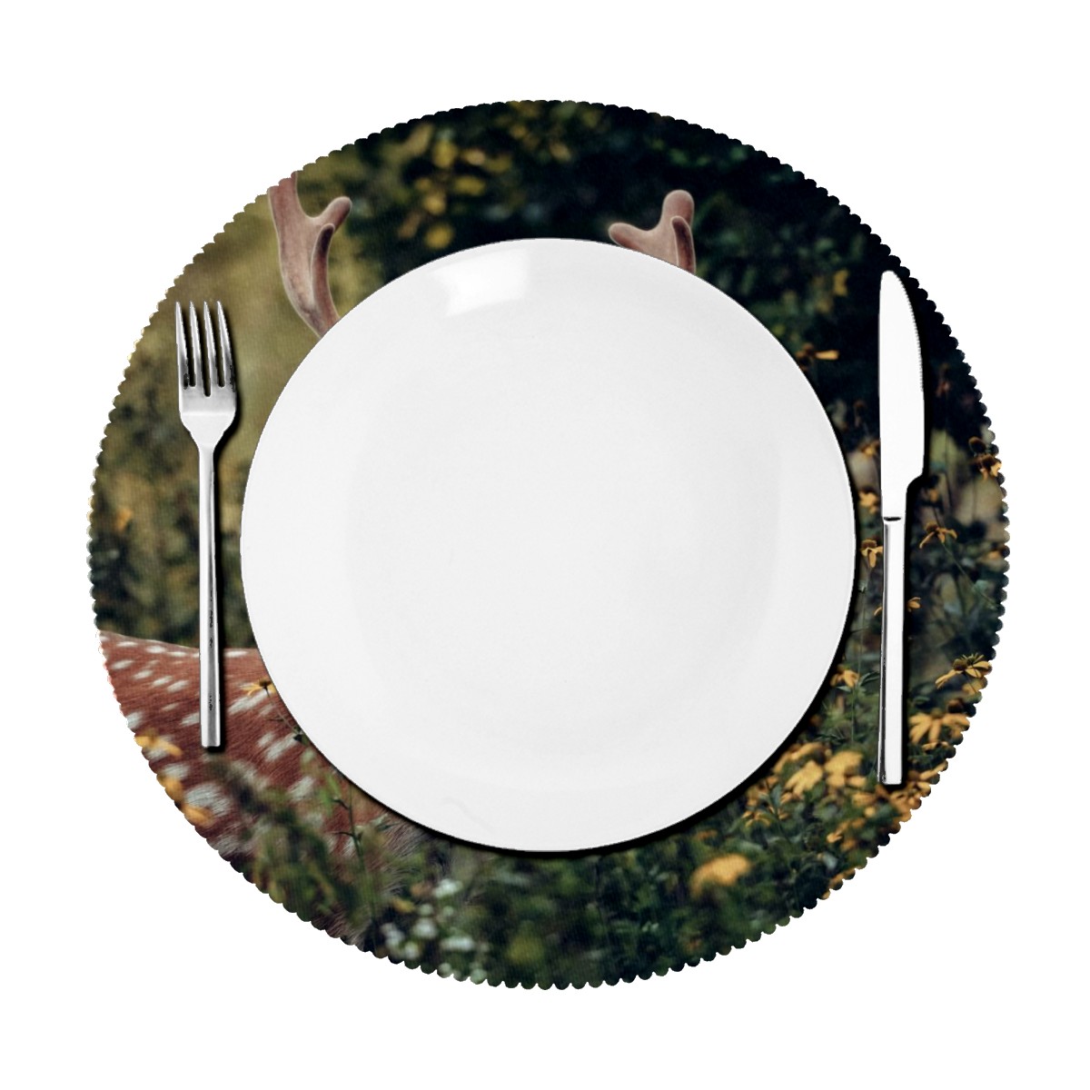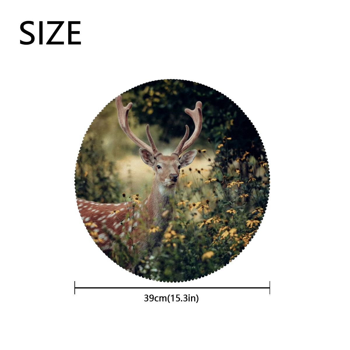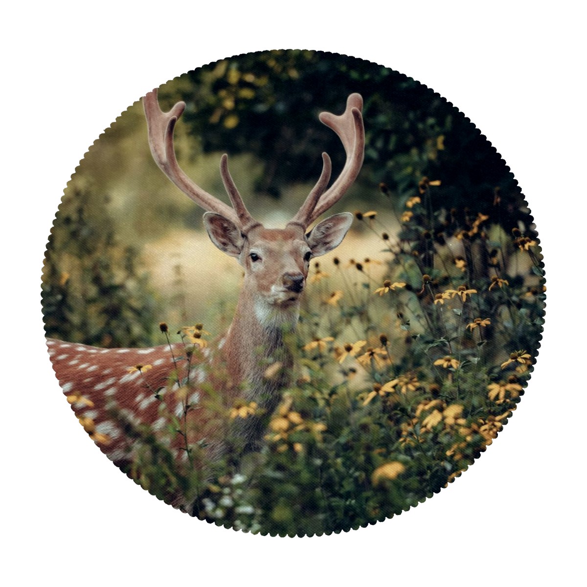 Round Placemats Set of 1 Whitetail Deer Standing Dining Table Mats Kitchen Waterproof Washable Place Mats Wipeable Boho Tablemats for Home Decor