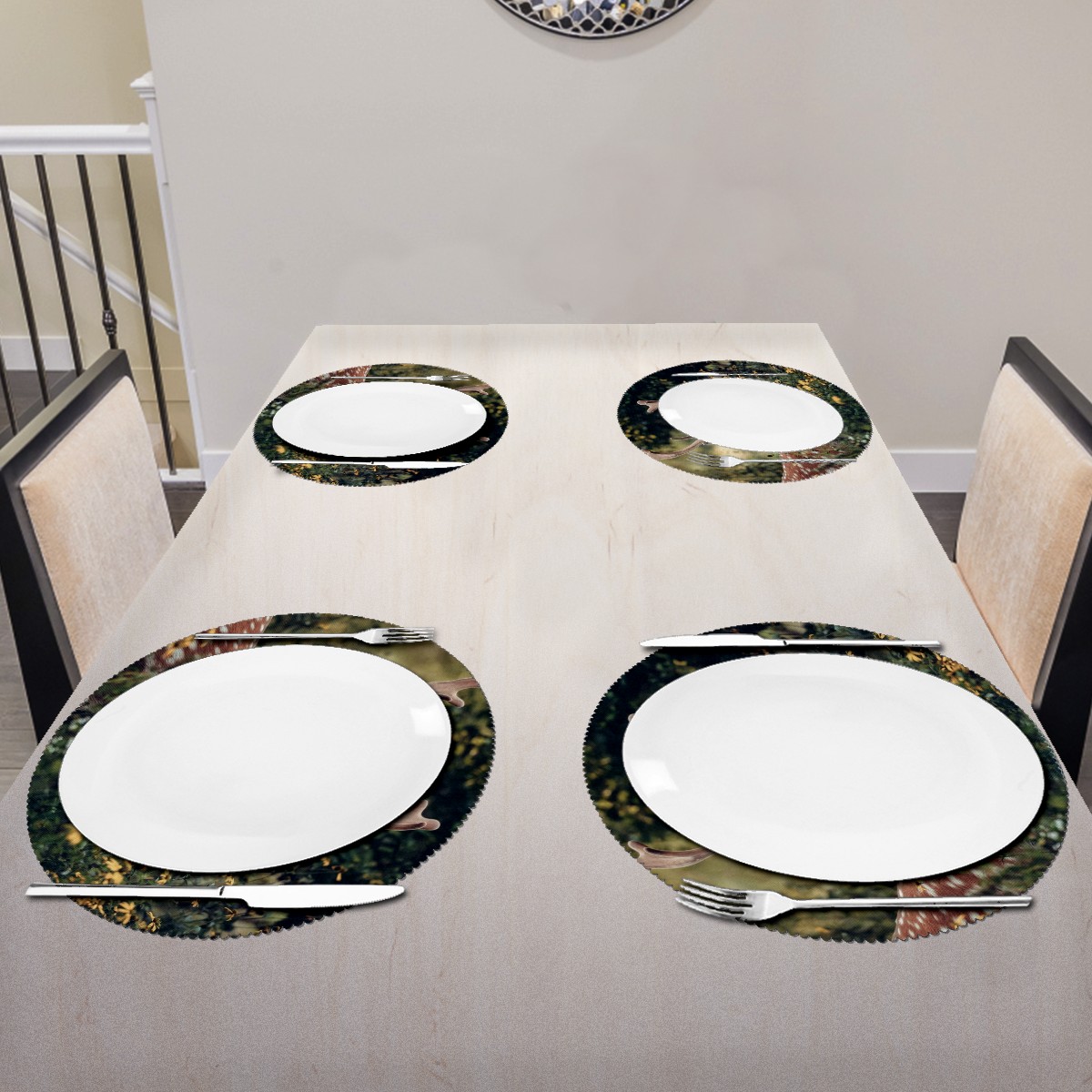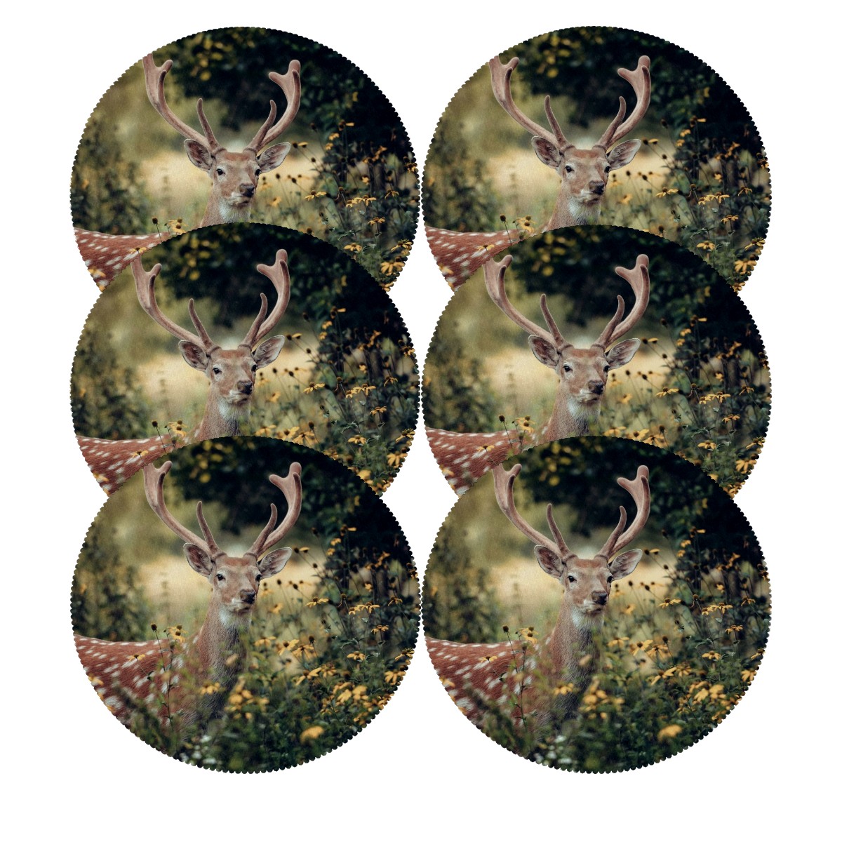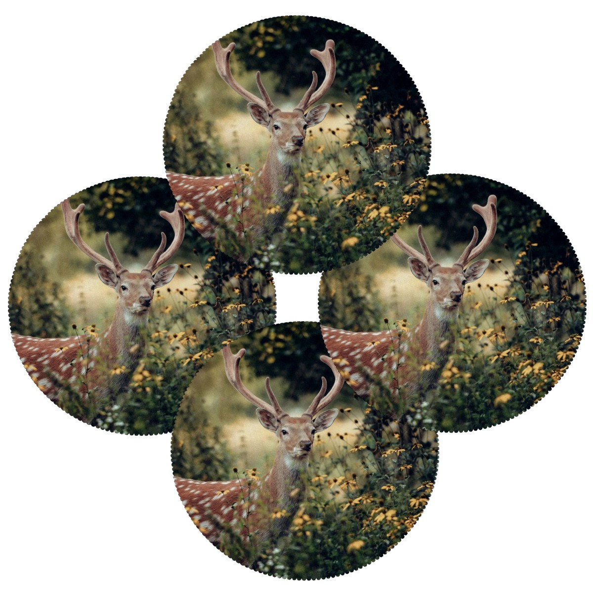 Round Placemats Set of 1 Whitetail Deer Standing Dining Table Mats Kitchen Waterproof Washable Place Mats Wipeable Boho Tablemats for Home Decor