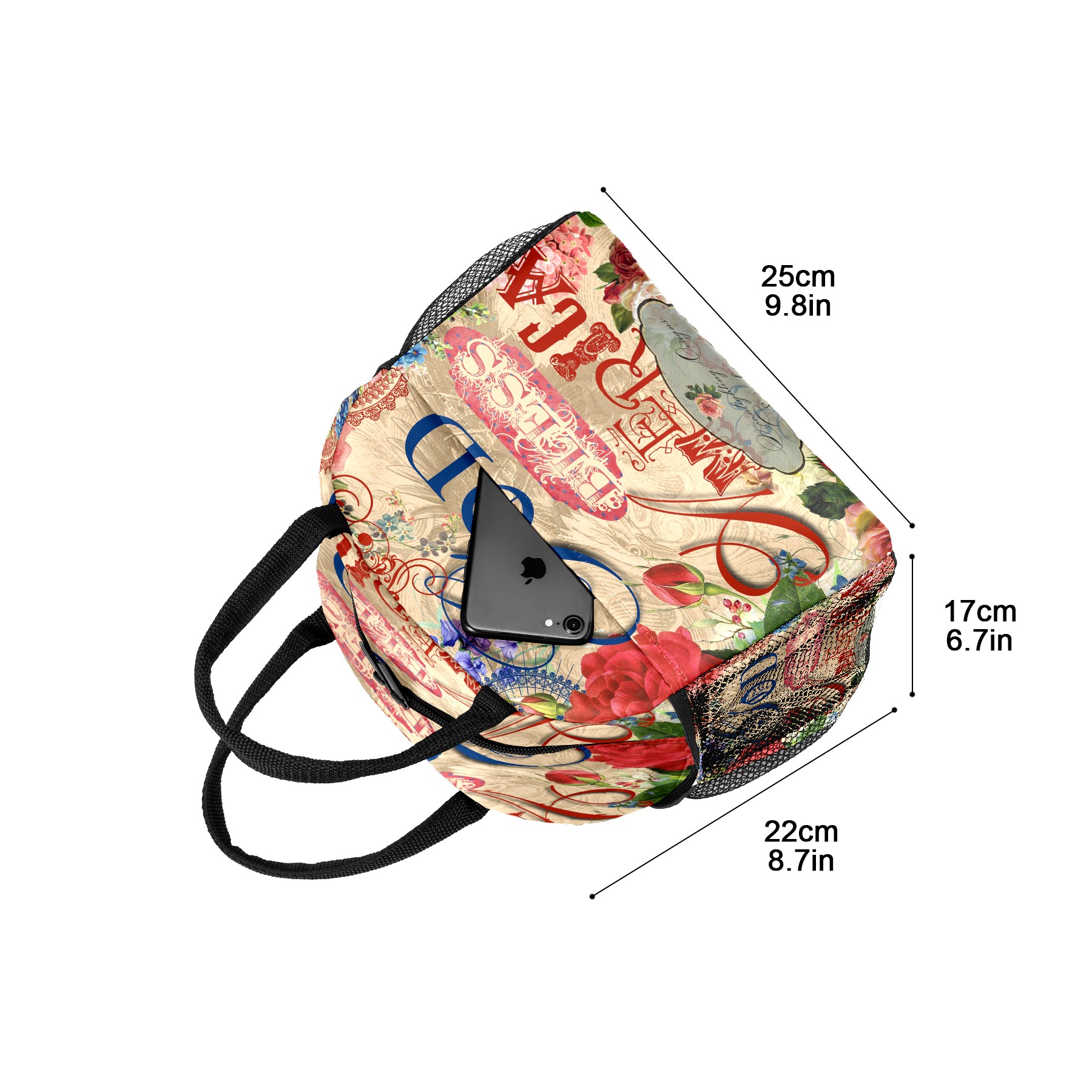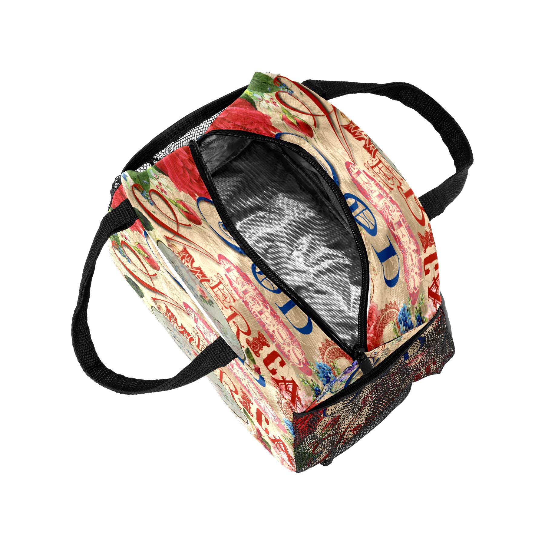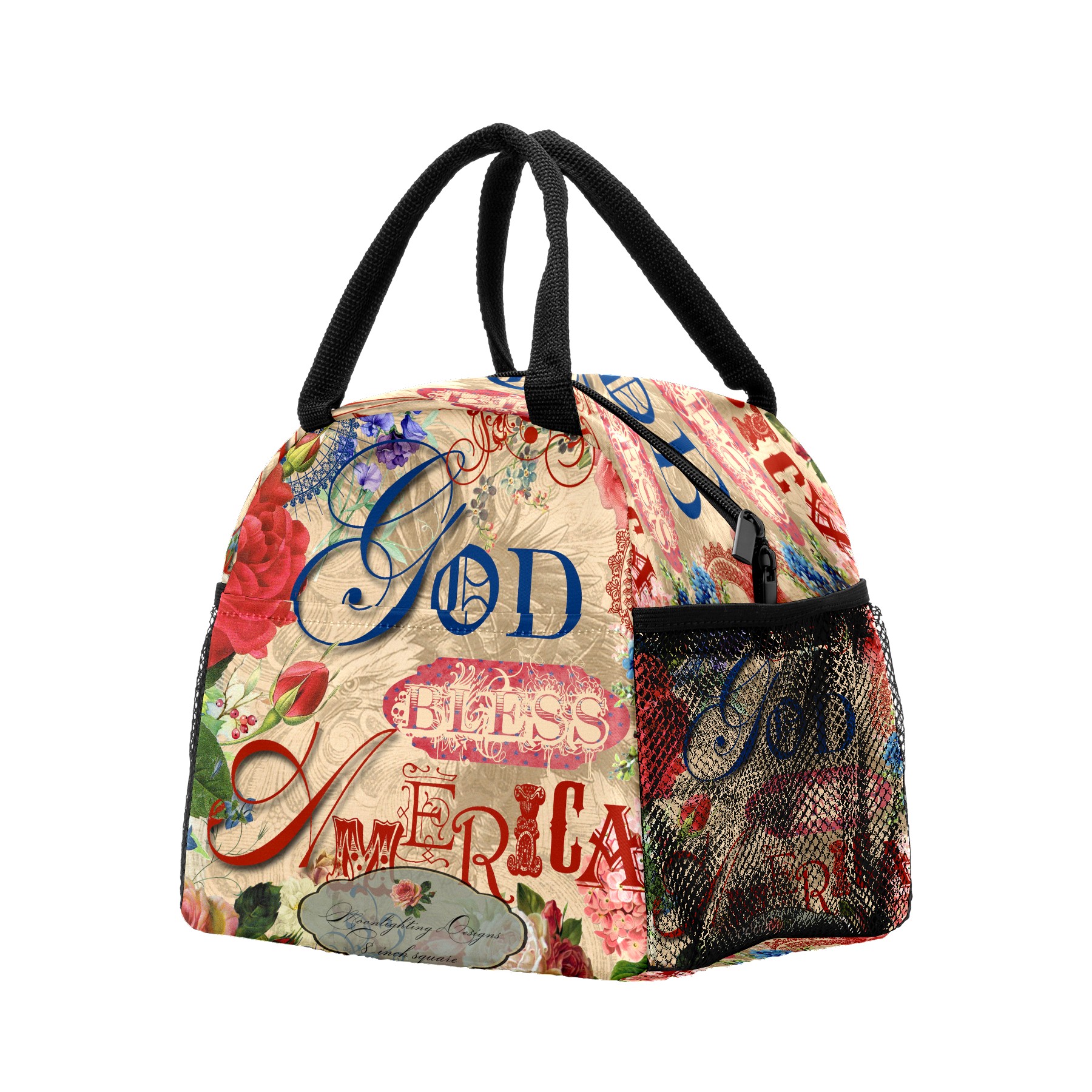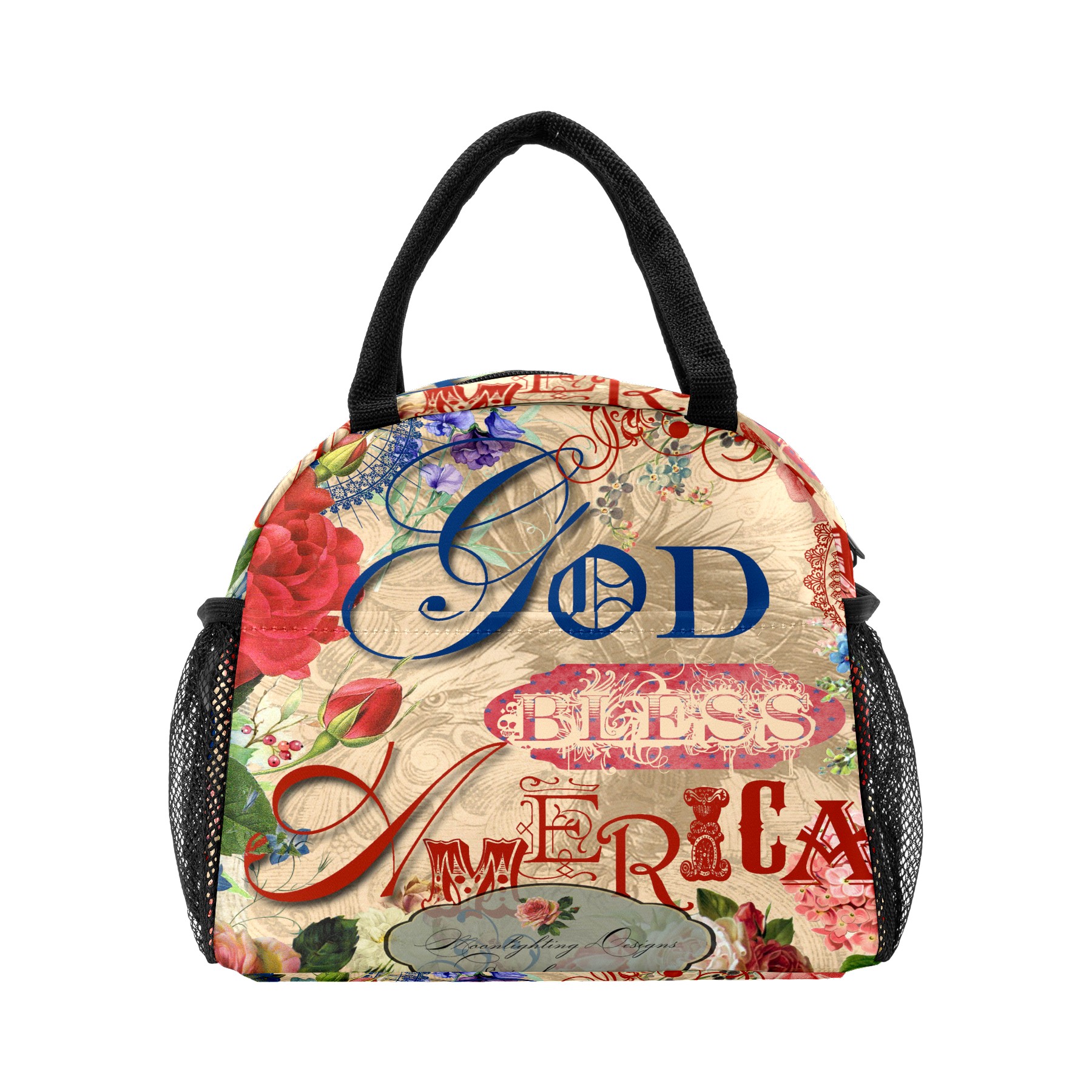 Lunch Bag for Women Men, God Bless American Rose Flower Insulated Reusable Lunch Box Thermal Cooler Tote Bag for Work Picnic Hiking Travel Beach