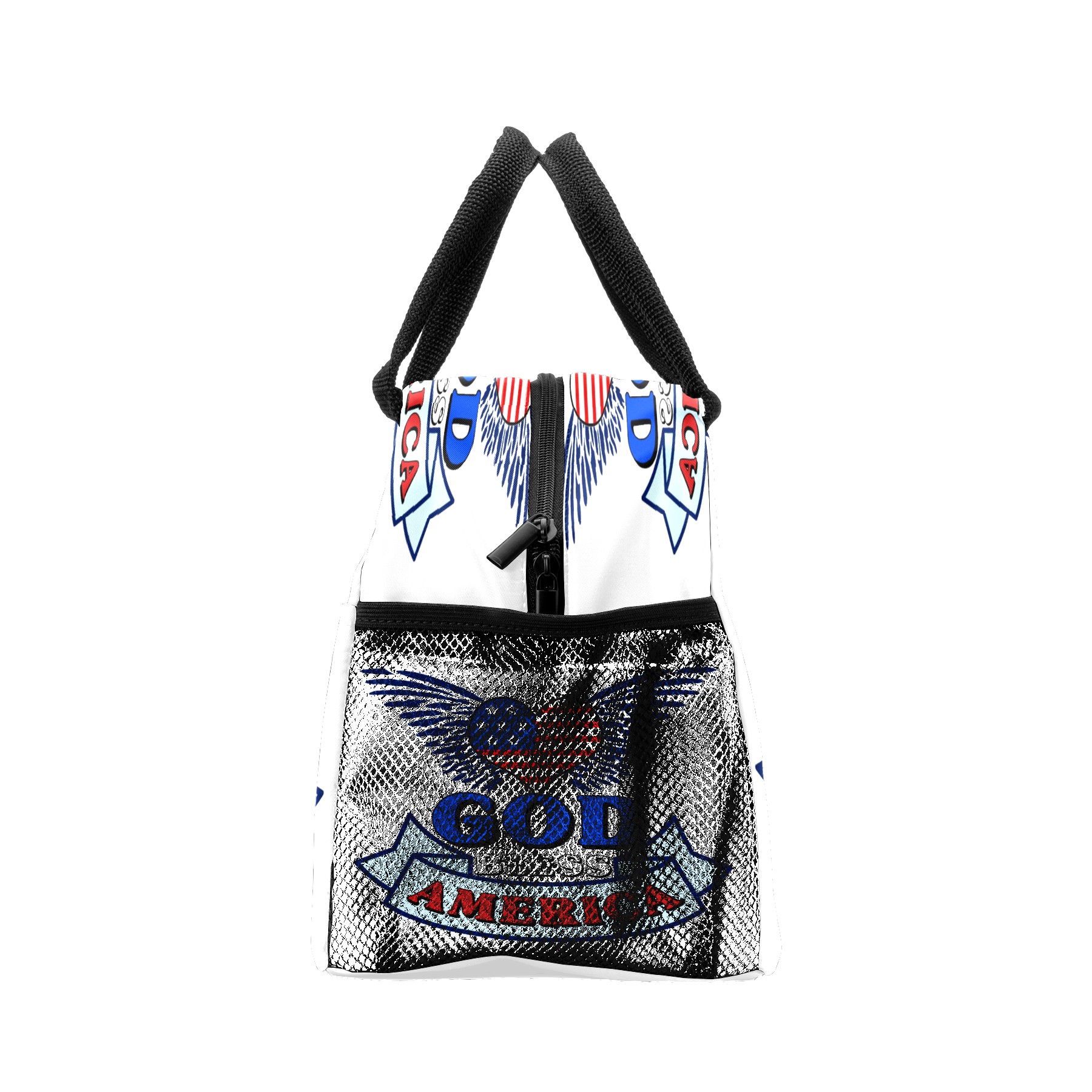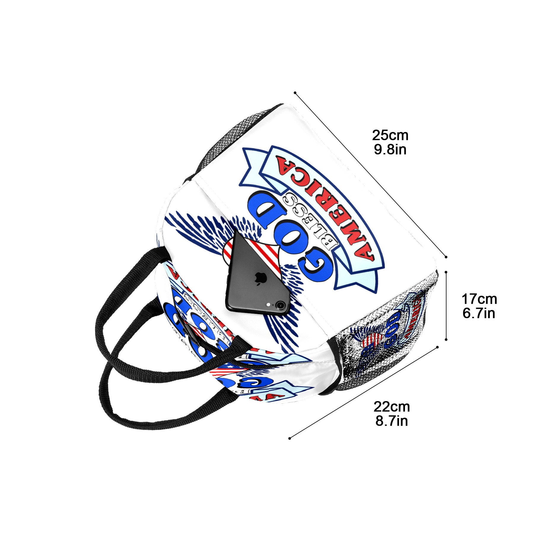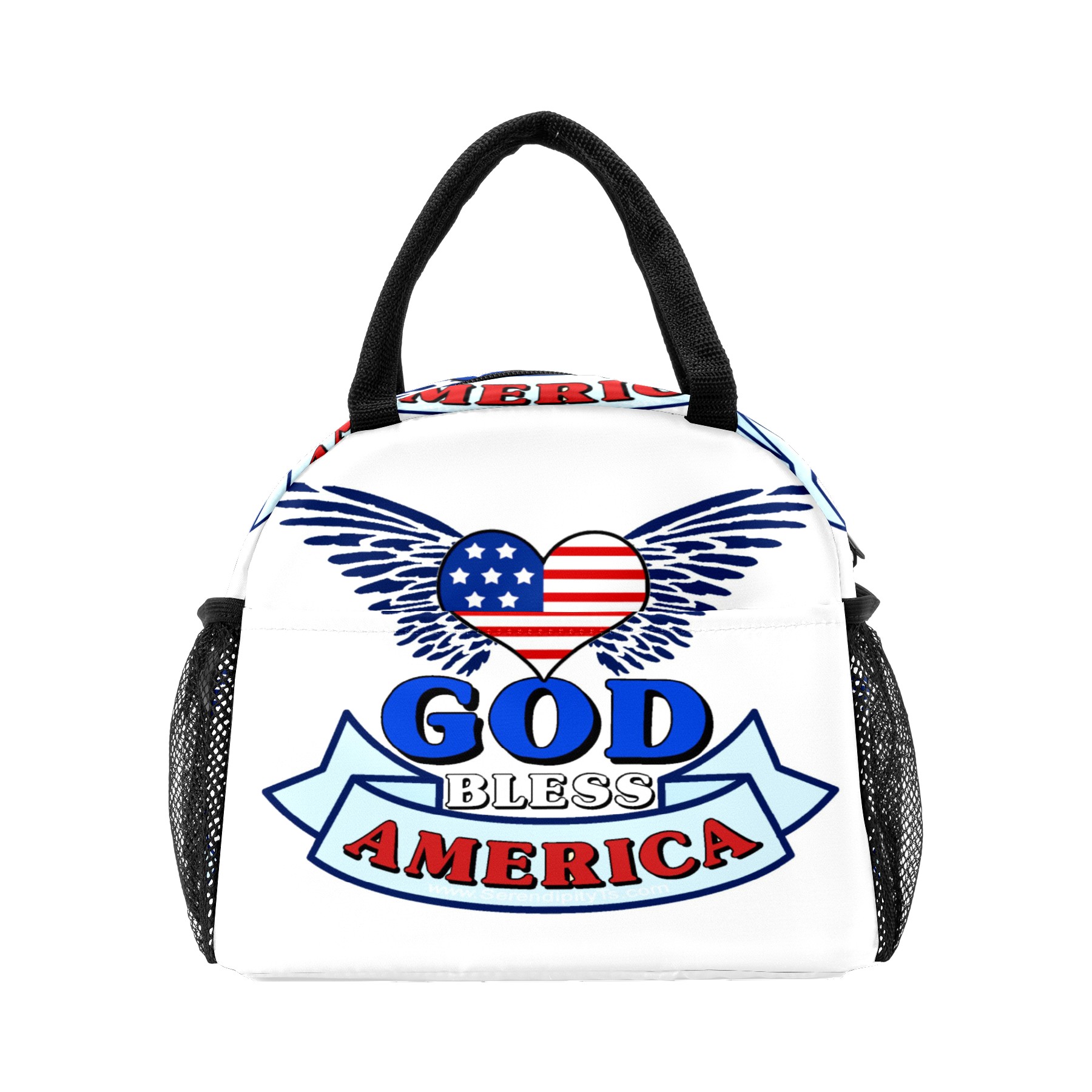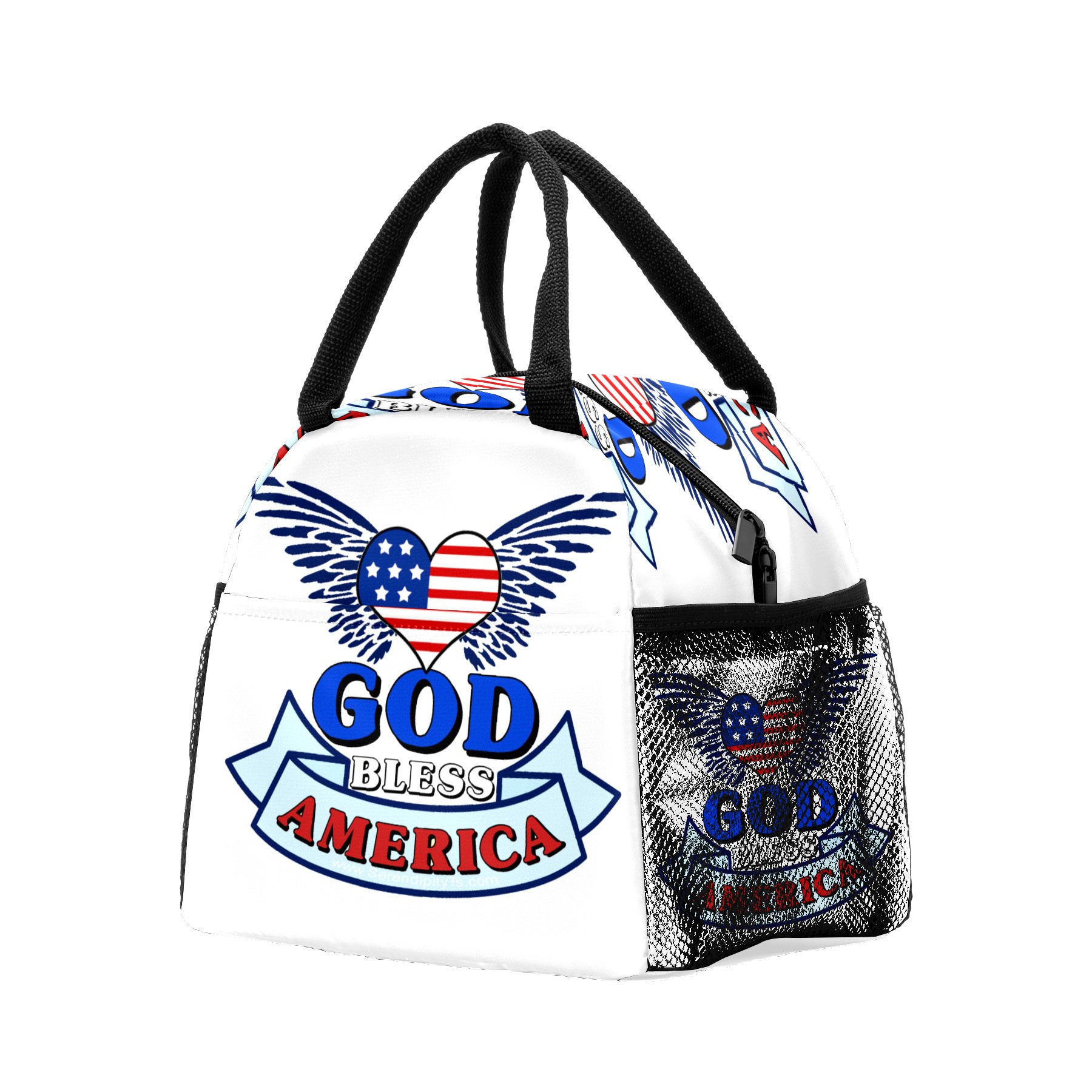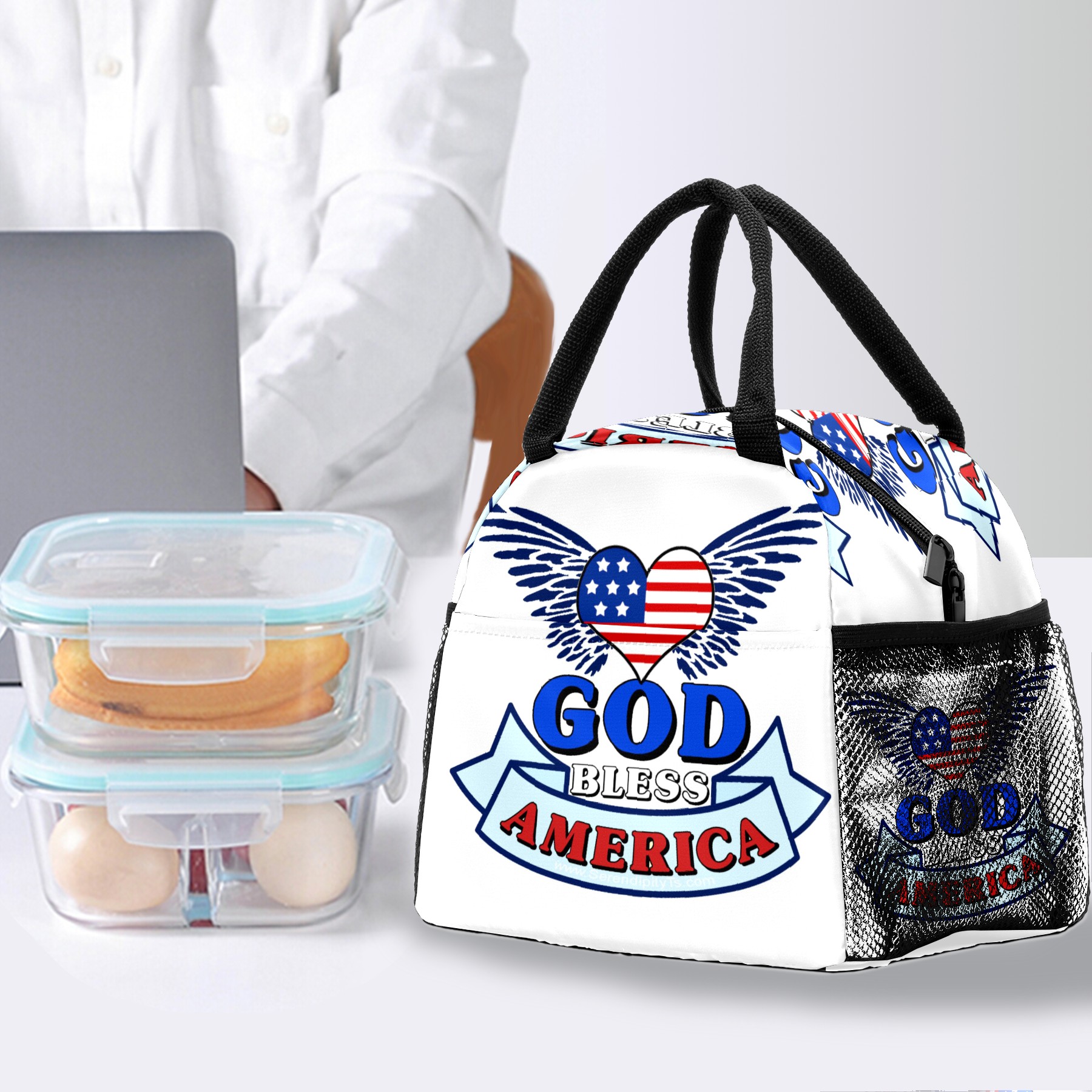 Lunch Bag for Women Men, God Bless American With Heart Flag Insulated Reusable Lunch Box Thermal Cooler Tote Bag for Work Picnic Hiking Travel Beach