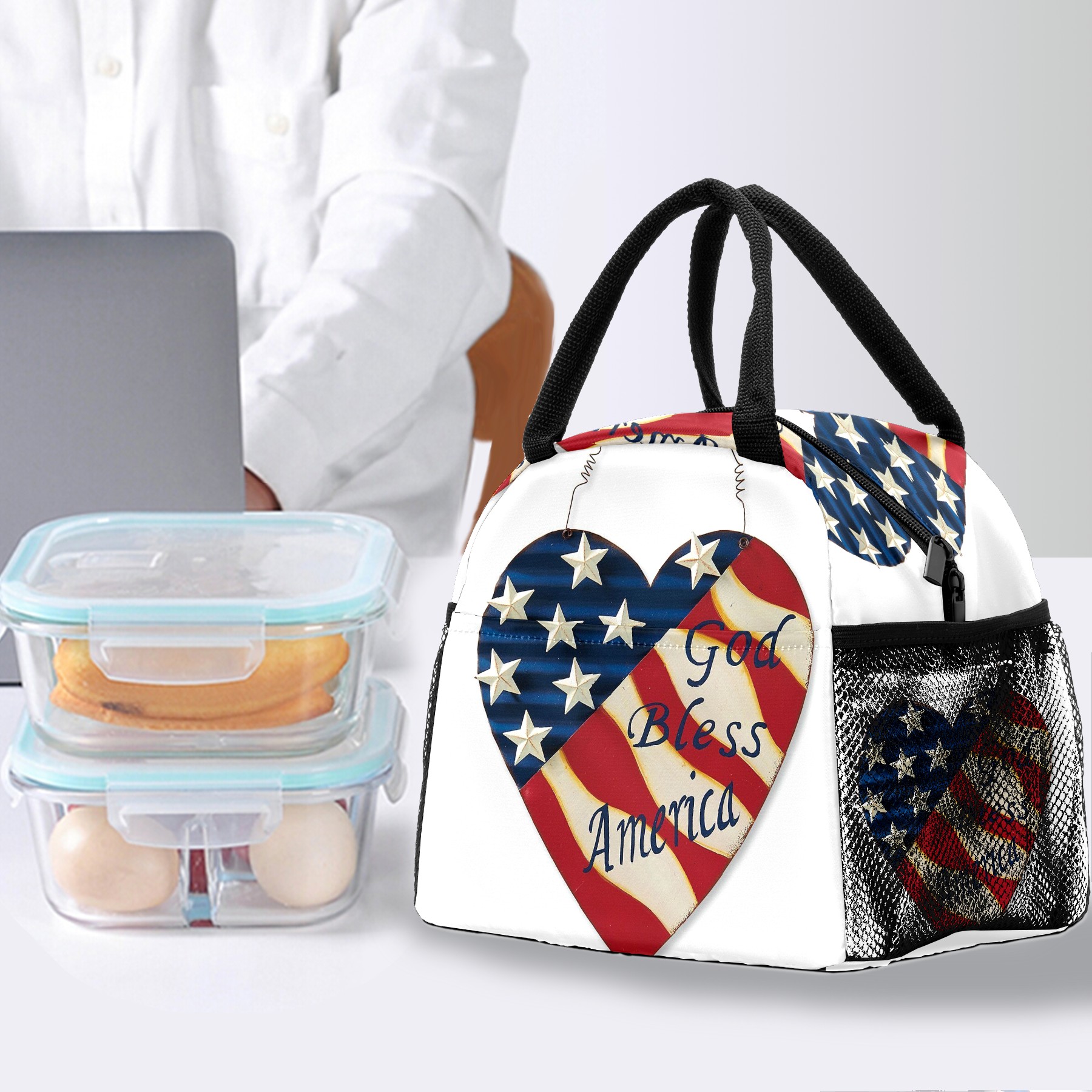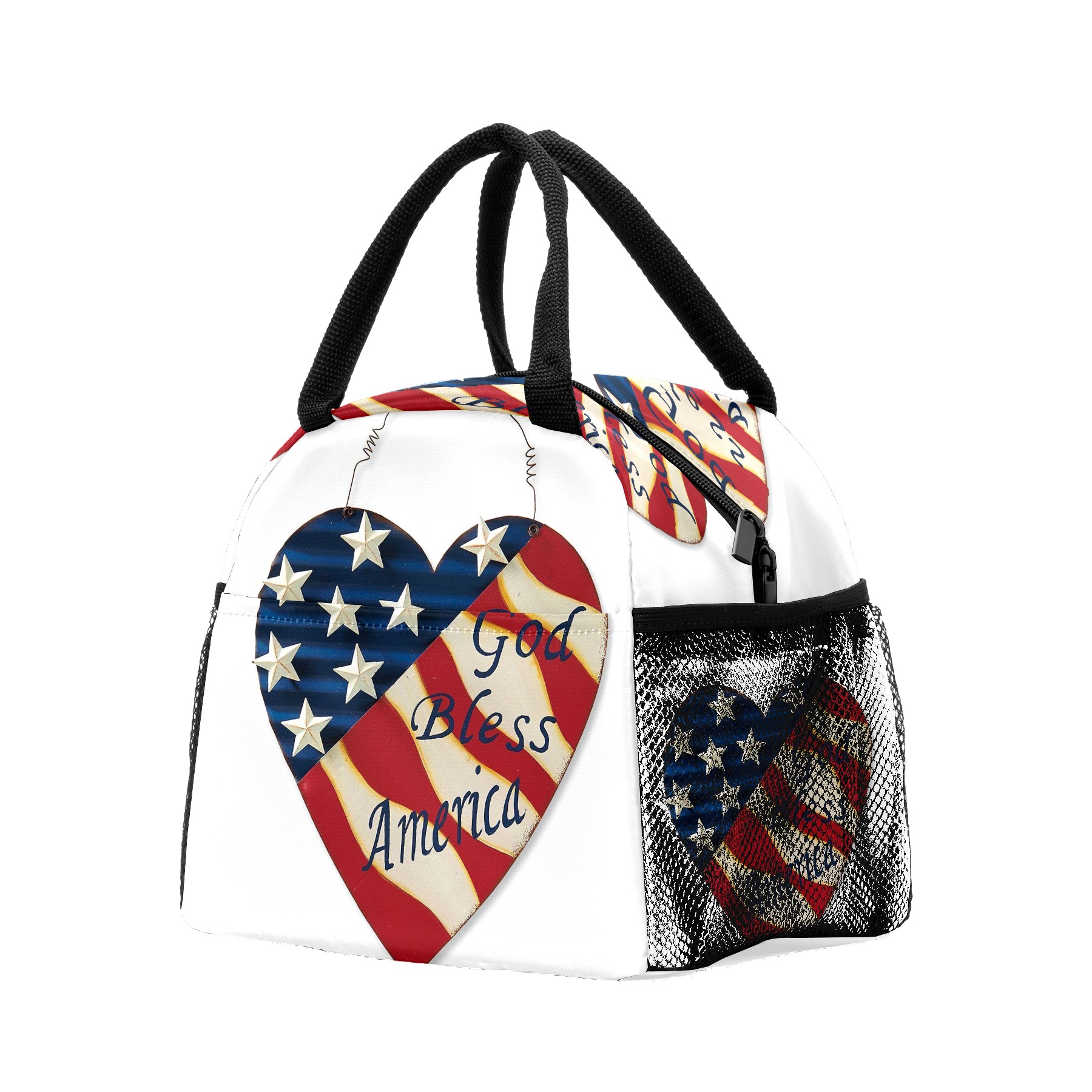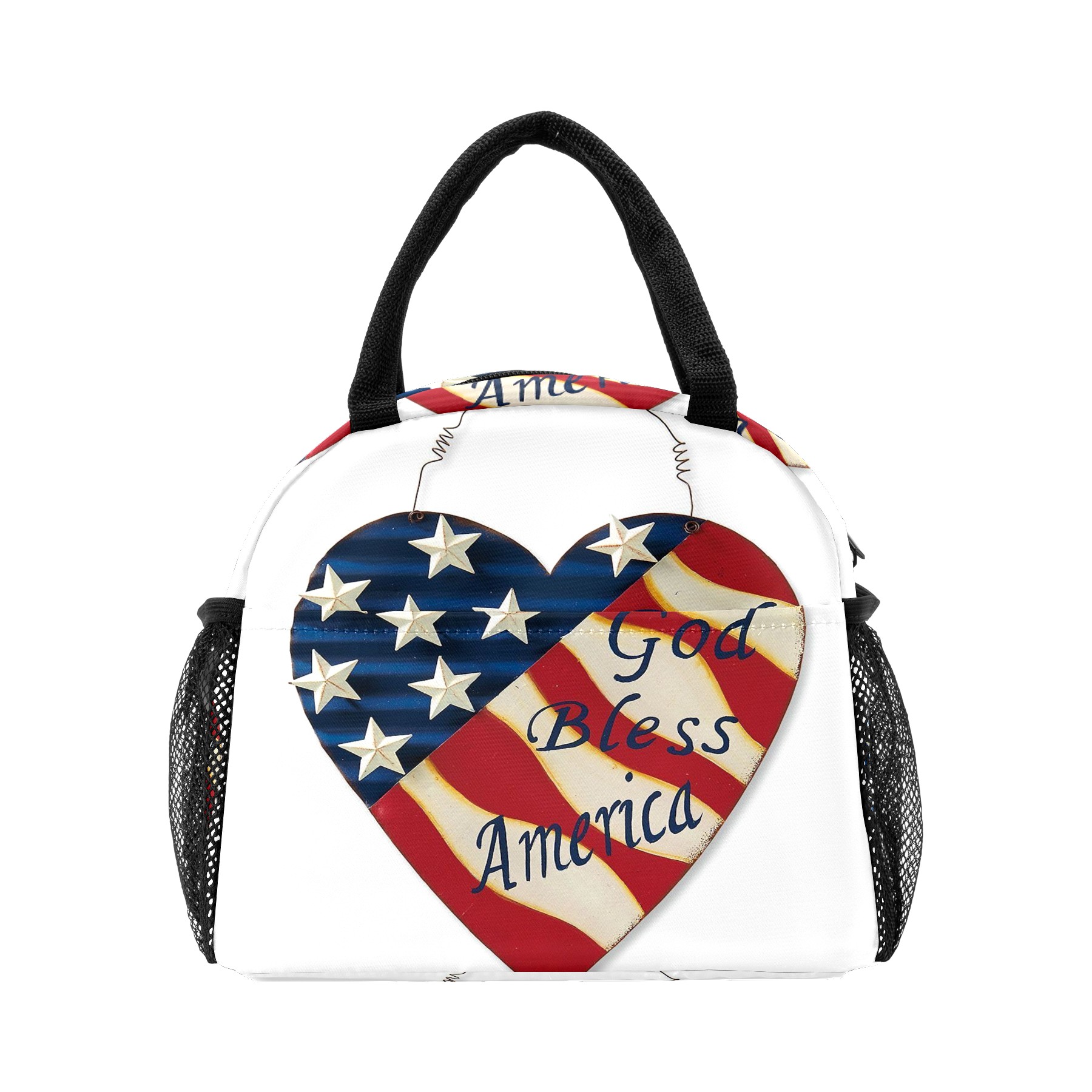 Lunch Bag for Women Men, God Bless American Retro Flag Insulated Reusable Lunch Box Thermal Cooler Tote Bag for Work Picnic Hiking Travel Beach