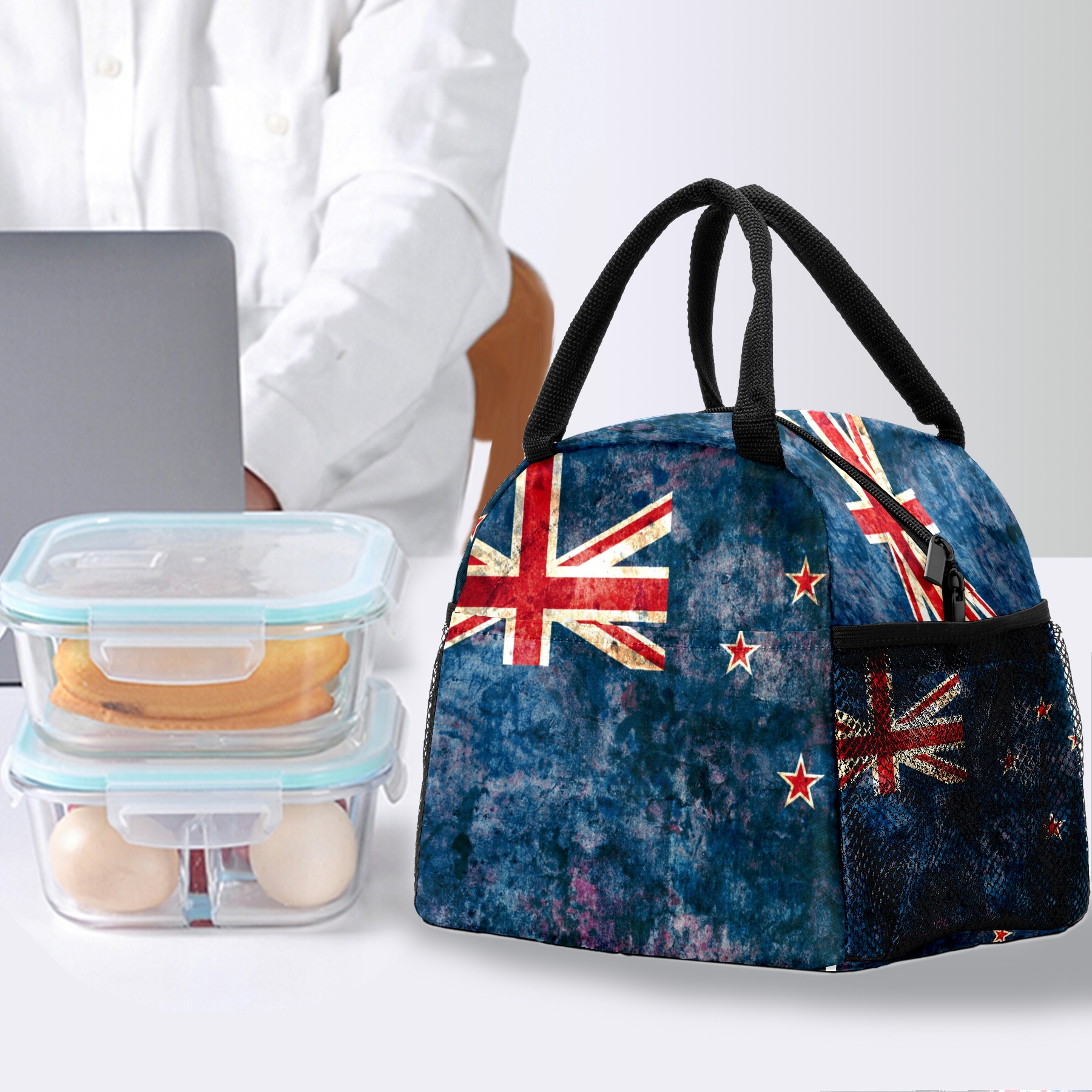 Lunch Bag for Women Men, Flag Of New Zealand Insulated Reusable Lunch Box Thermal Cooler Tote Bag for Work Picnic Hiking Travel Beach
