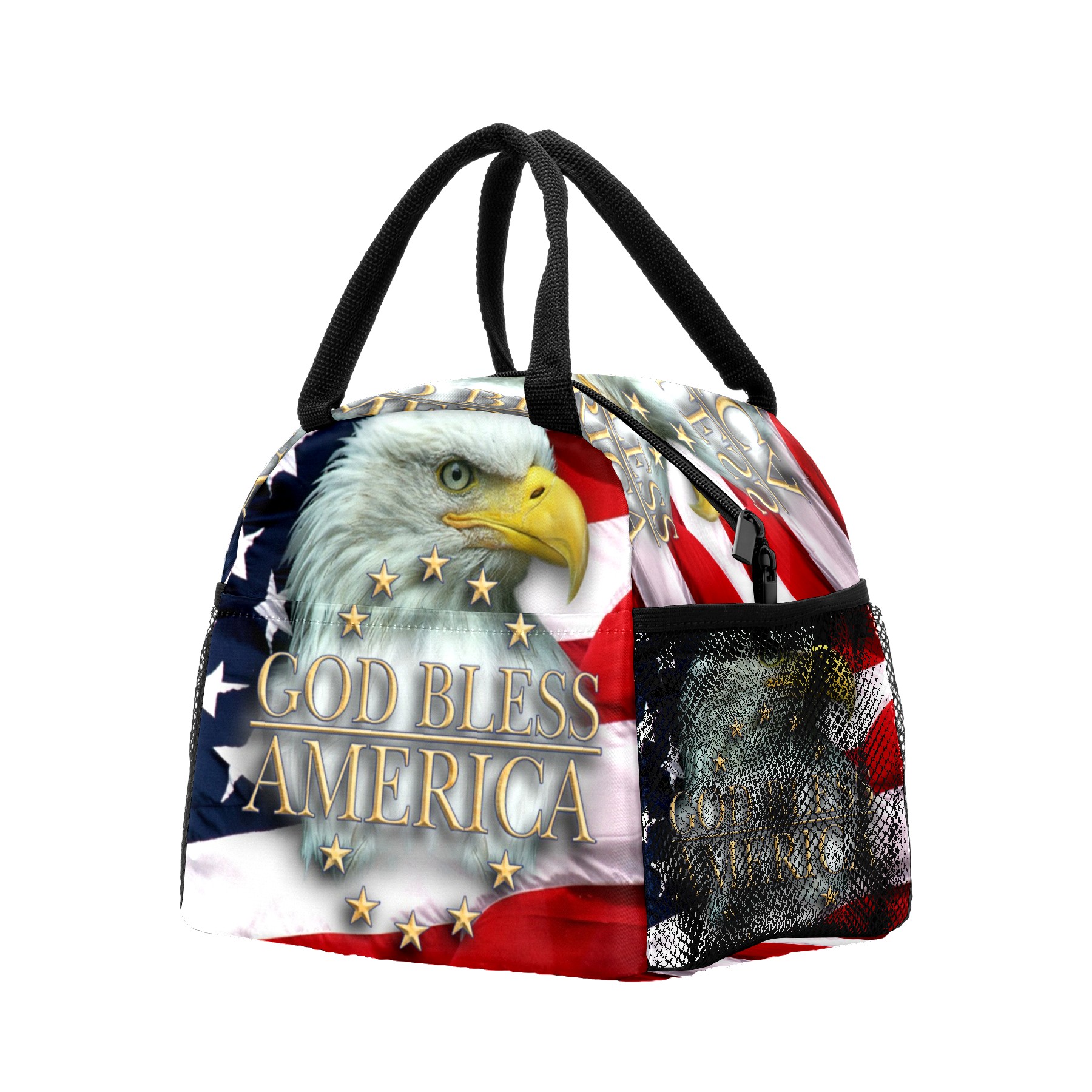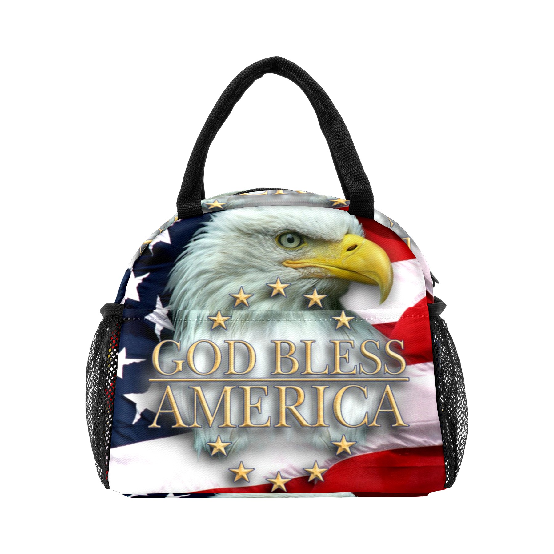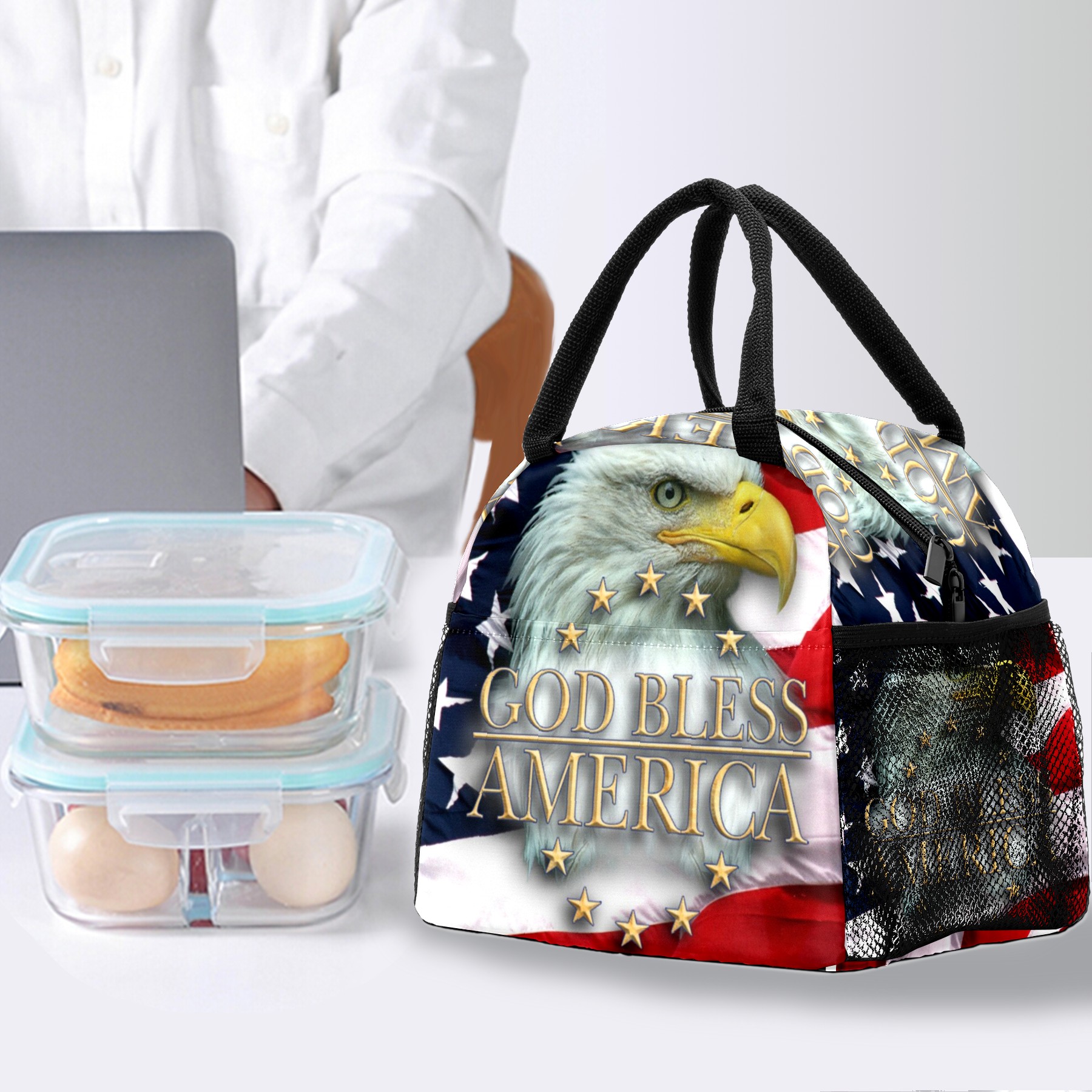 Lunch Bag for Women Men, God Bless American Bald Eagle Insulated Reusable Lunch Box Thermal Cooler Tote Bag for Work Picnic Hiking Travel Beach