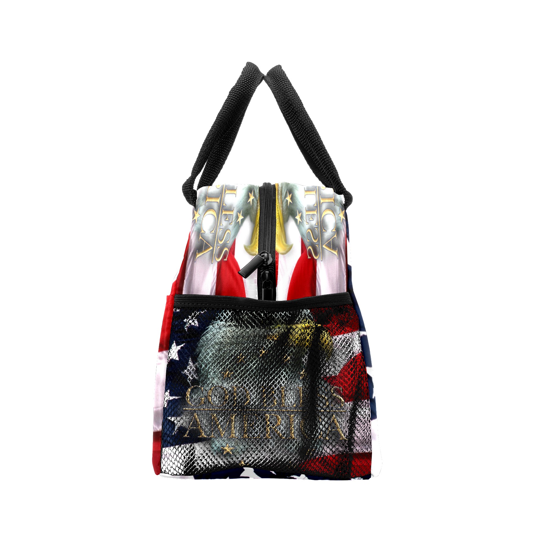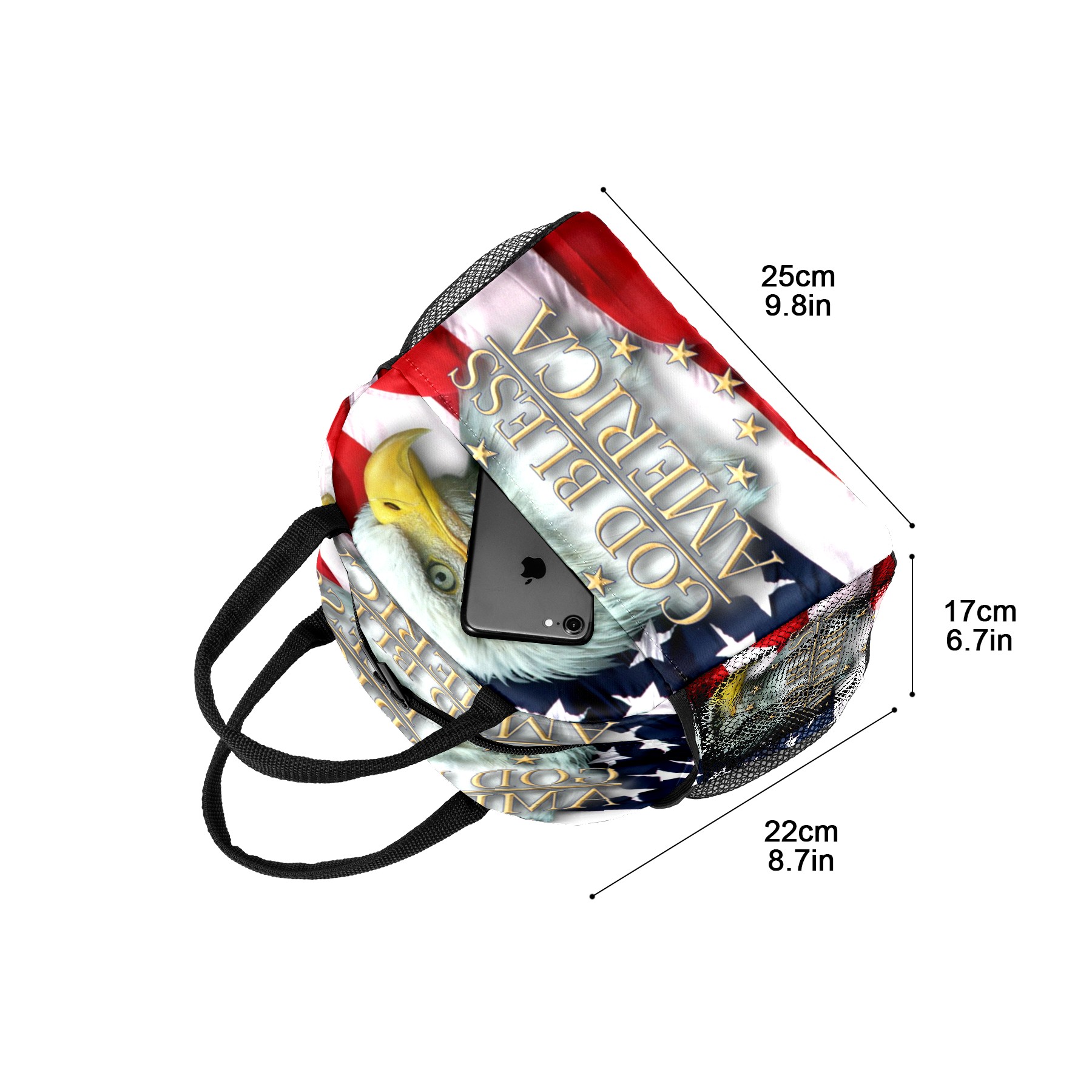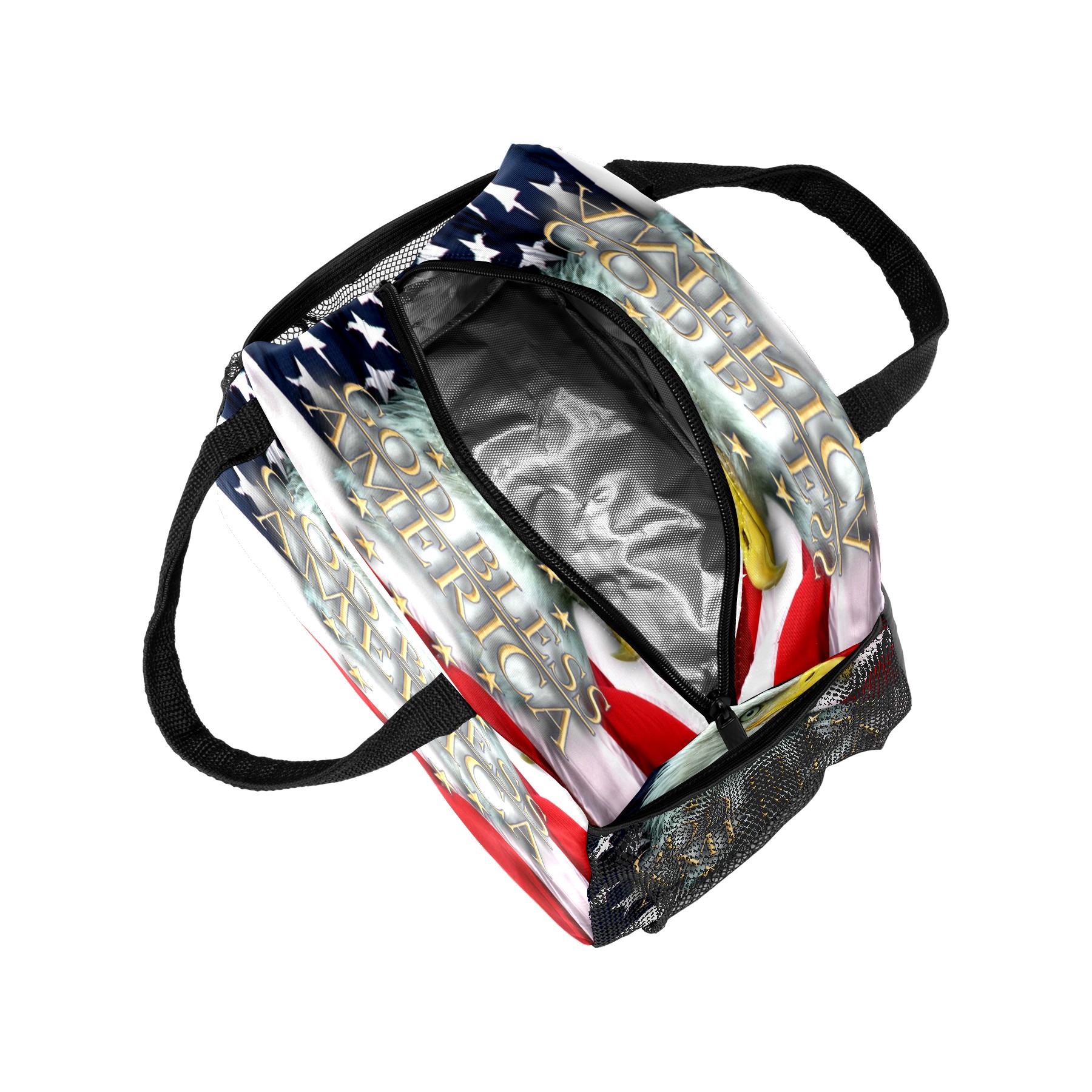 Lunch Bag for Women Men, God Bless American Bald Eagle Insulated Reusable Lunch Box Thermal Cooler Tote Bag for Work Picnic Hiking Travel Beach