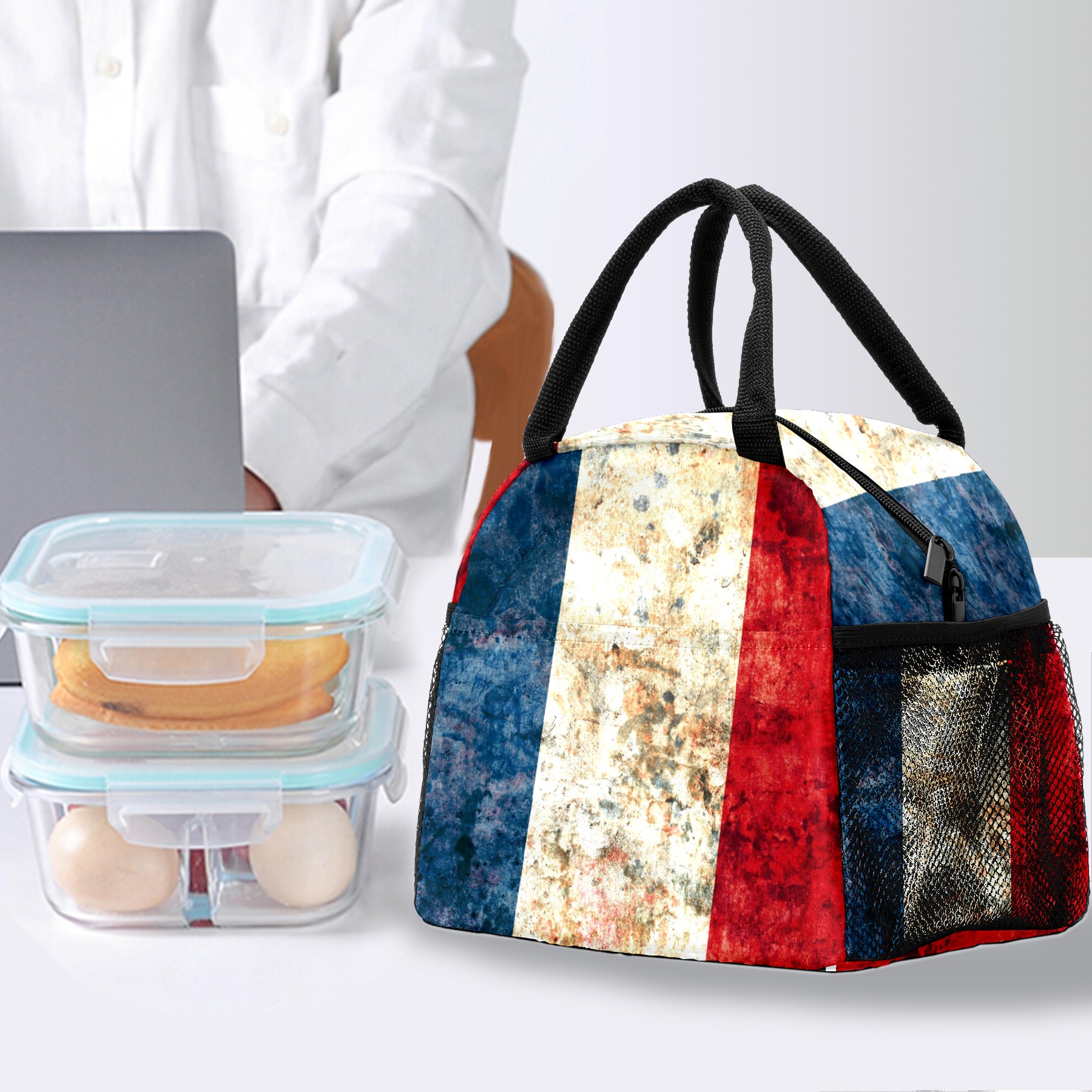 Lunch Bag for Women Men, Flag Of France Insulated Reusable Lunch Box Thermal Cooler Tote Bag for Work Picnic Hiking Travel Beach
