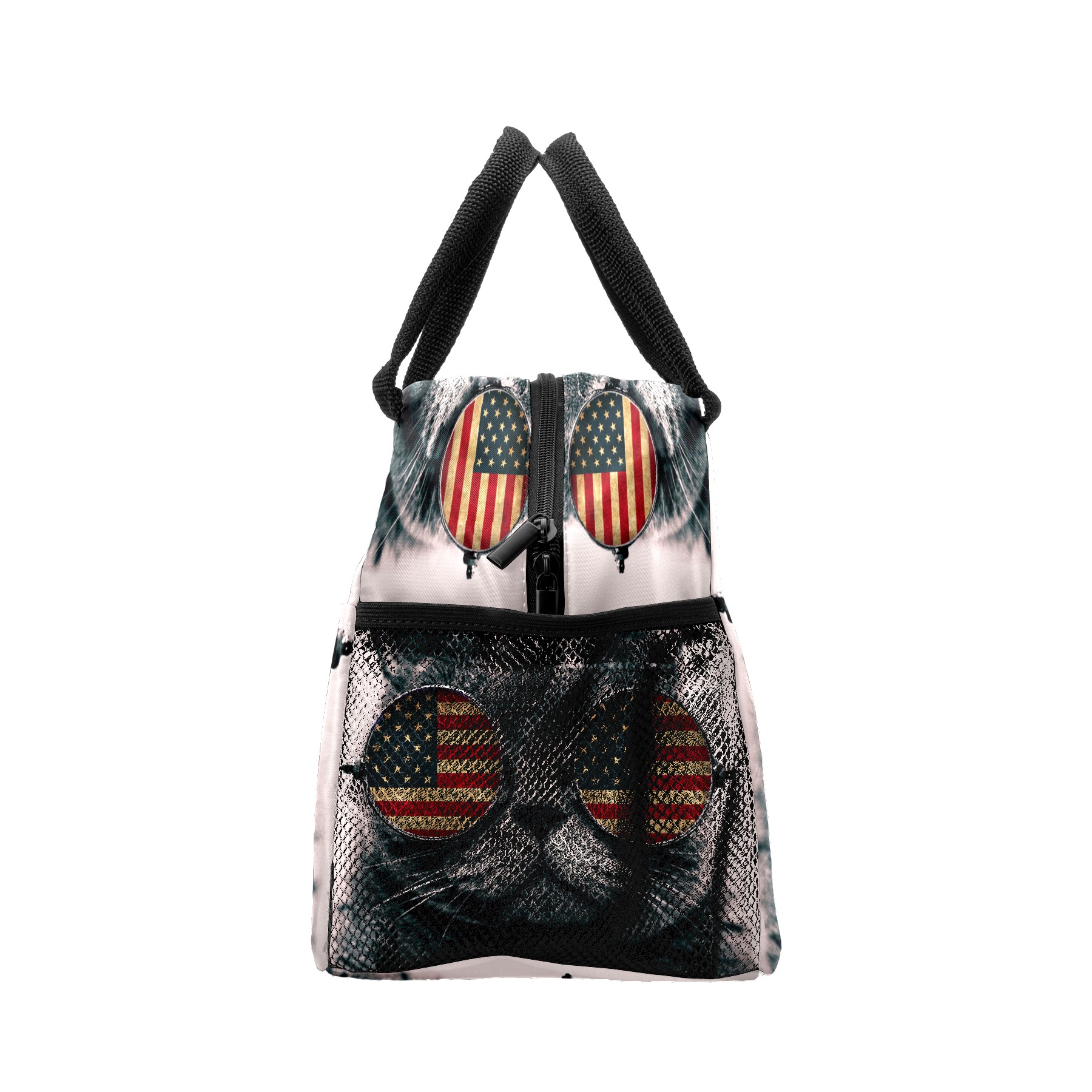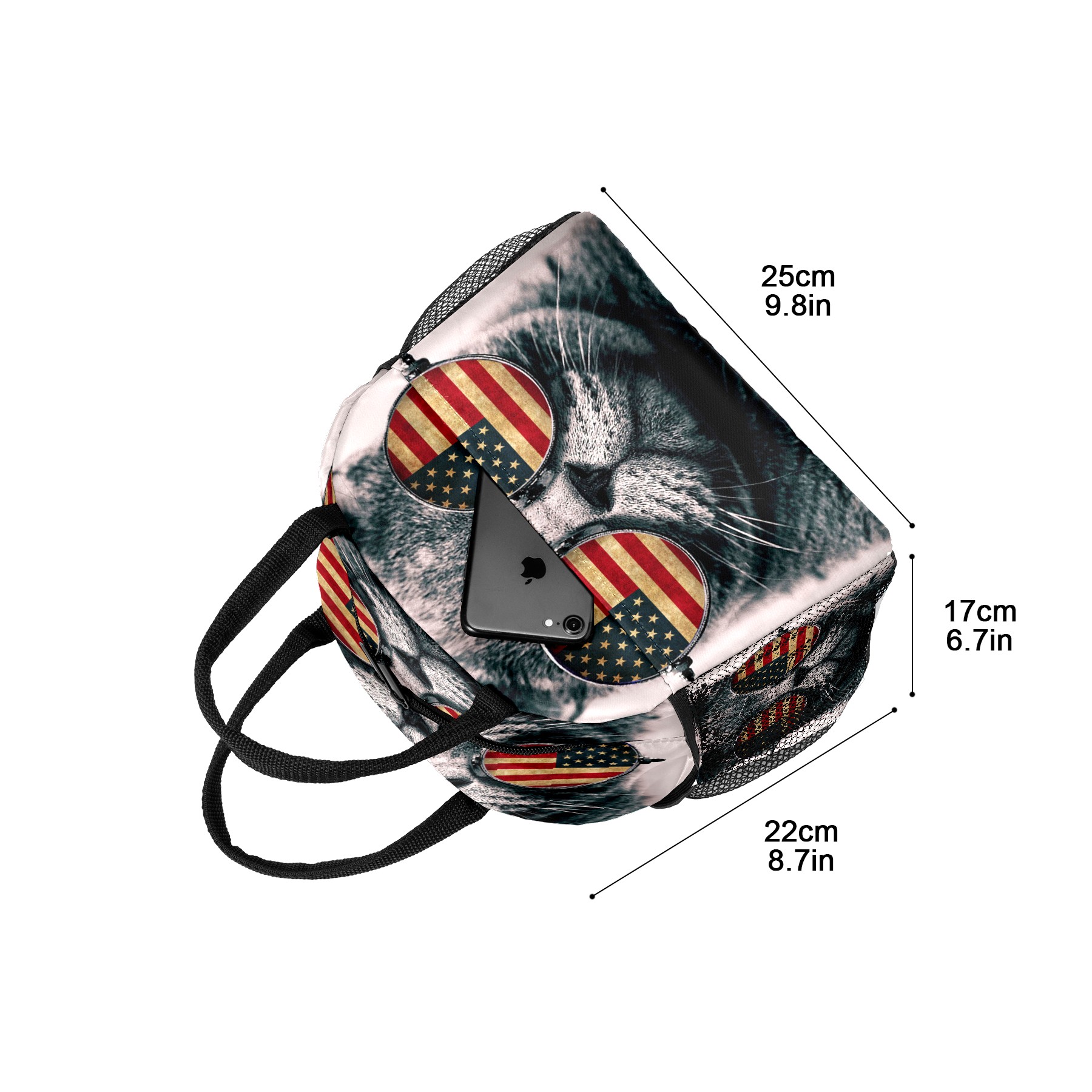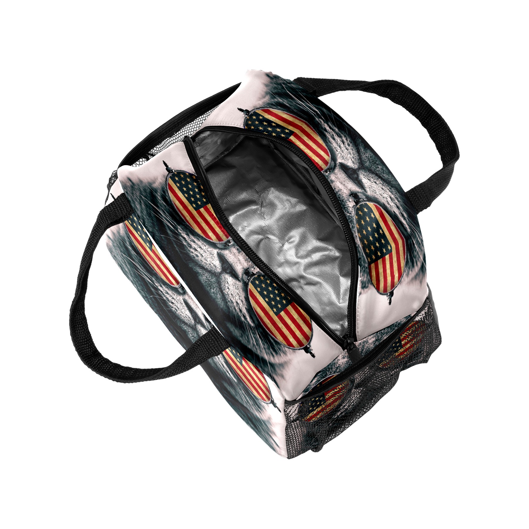 Lunch Bag for Women Men, Funny Cat With American Flag Insulated Reusable Lunch Box Thermal Cooler Tote Bag for Work Picnic Hiking Travel Beach