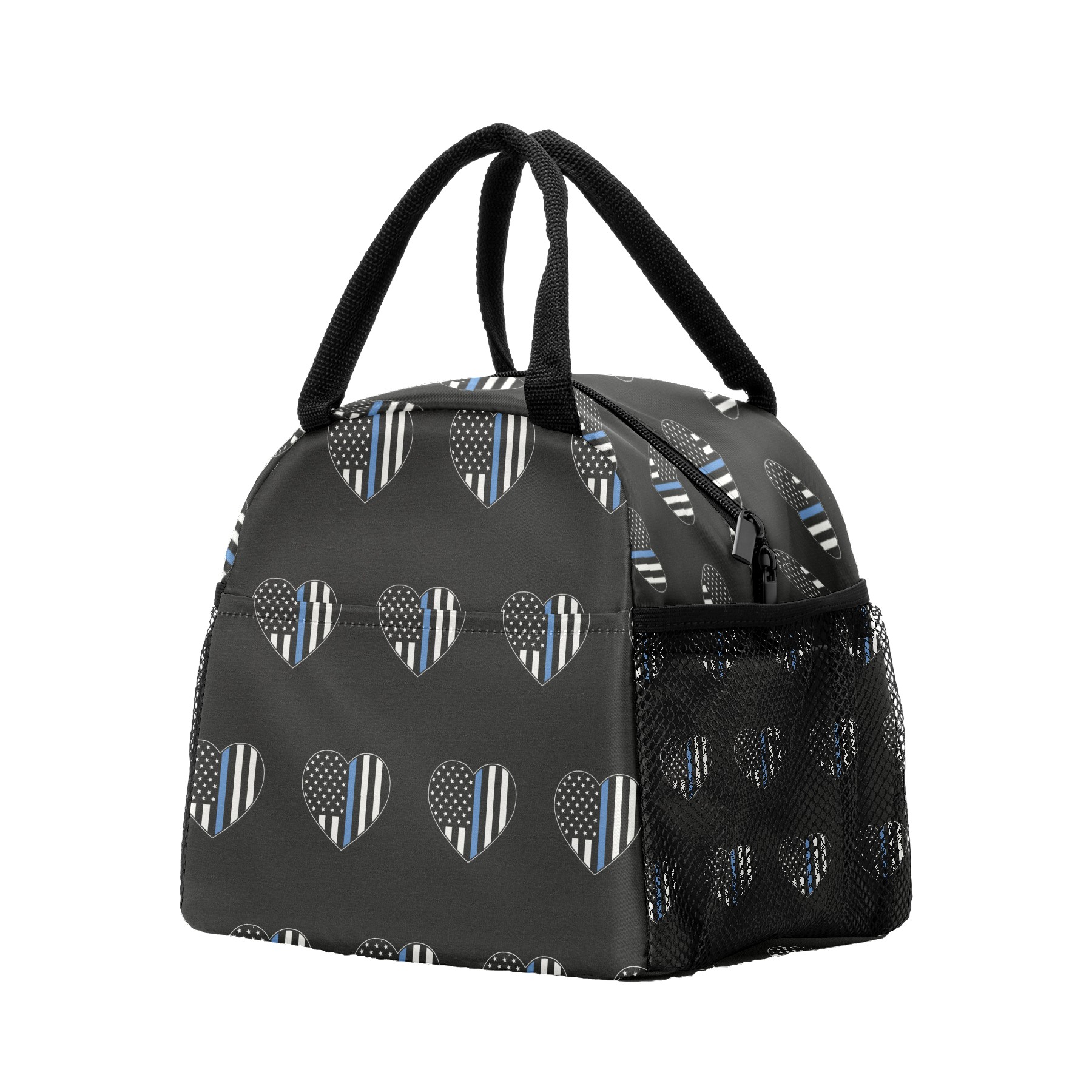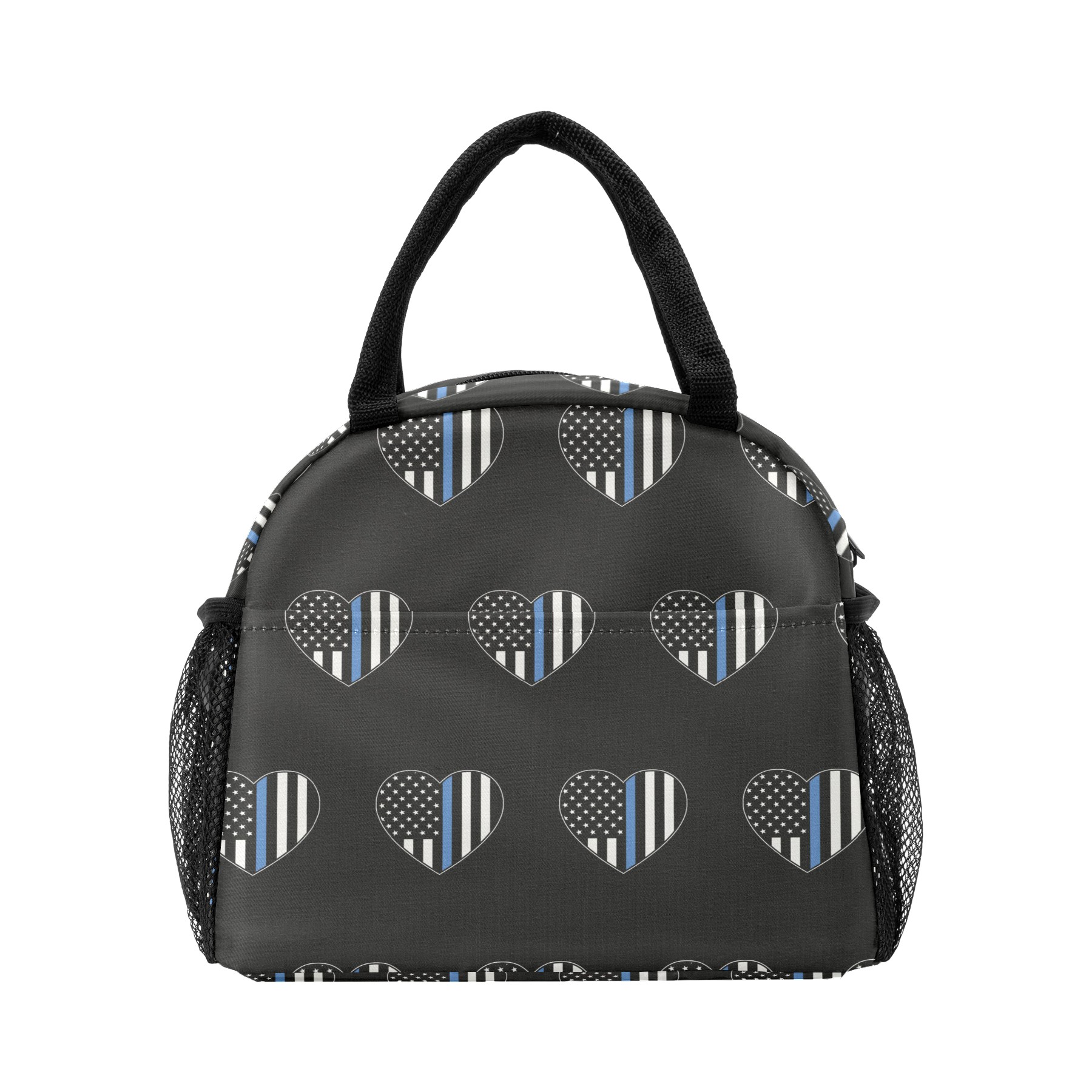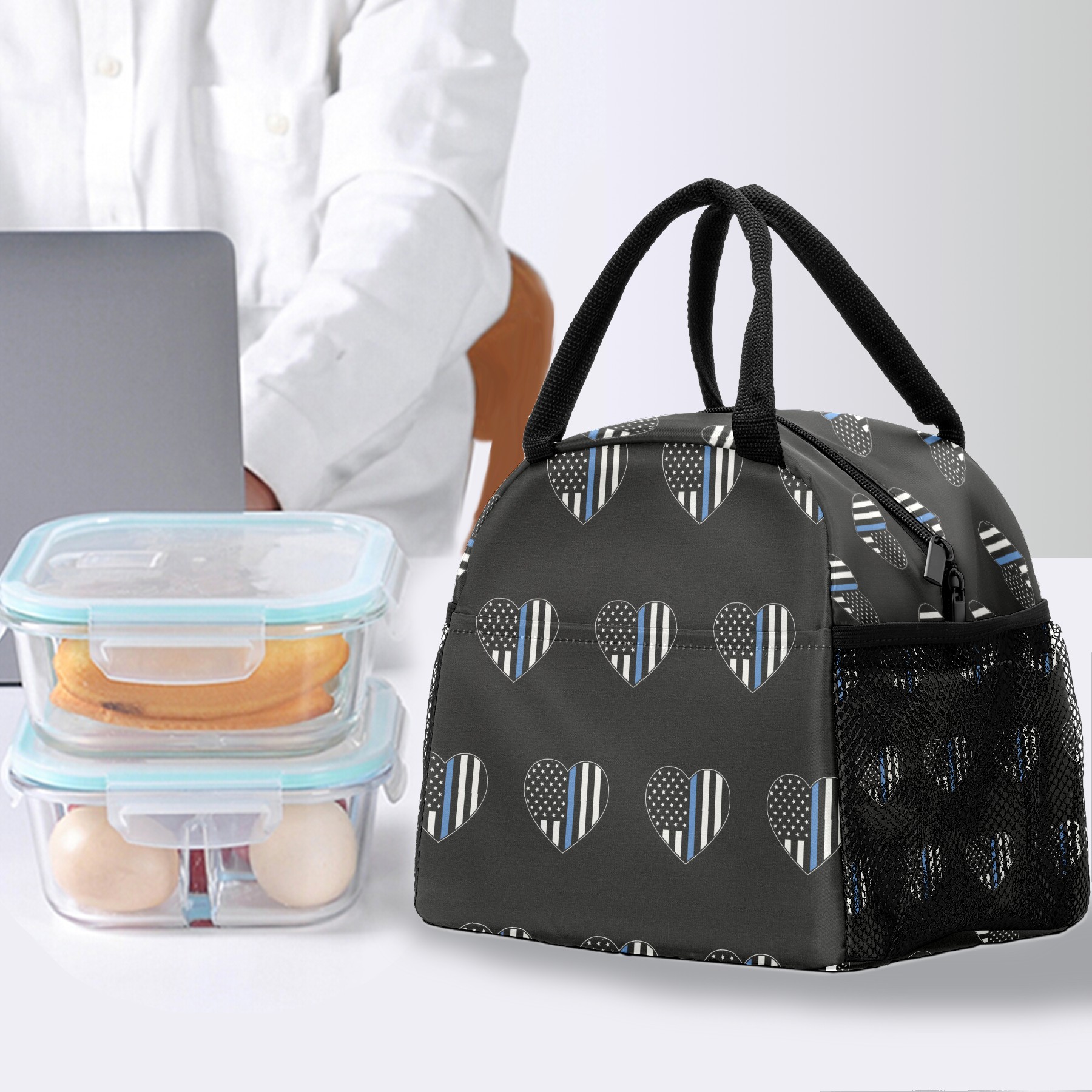 Lunch Bag for Women Men, Blue Thin Line American Flag Heart Insulated Reusable Lunch Box Thermal Cooler Tote Bag for Work Picnic Hiking Travel Beach