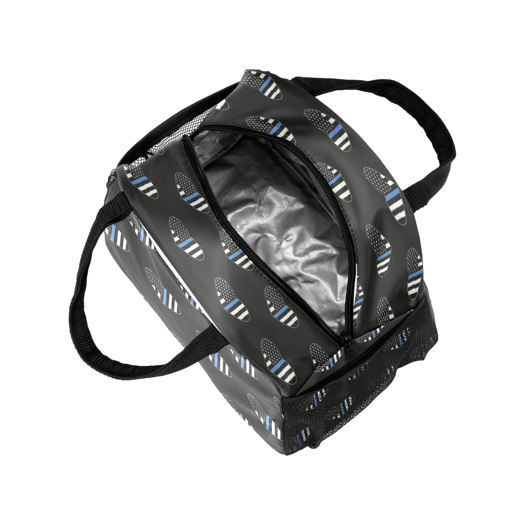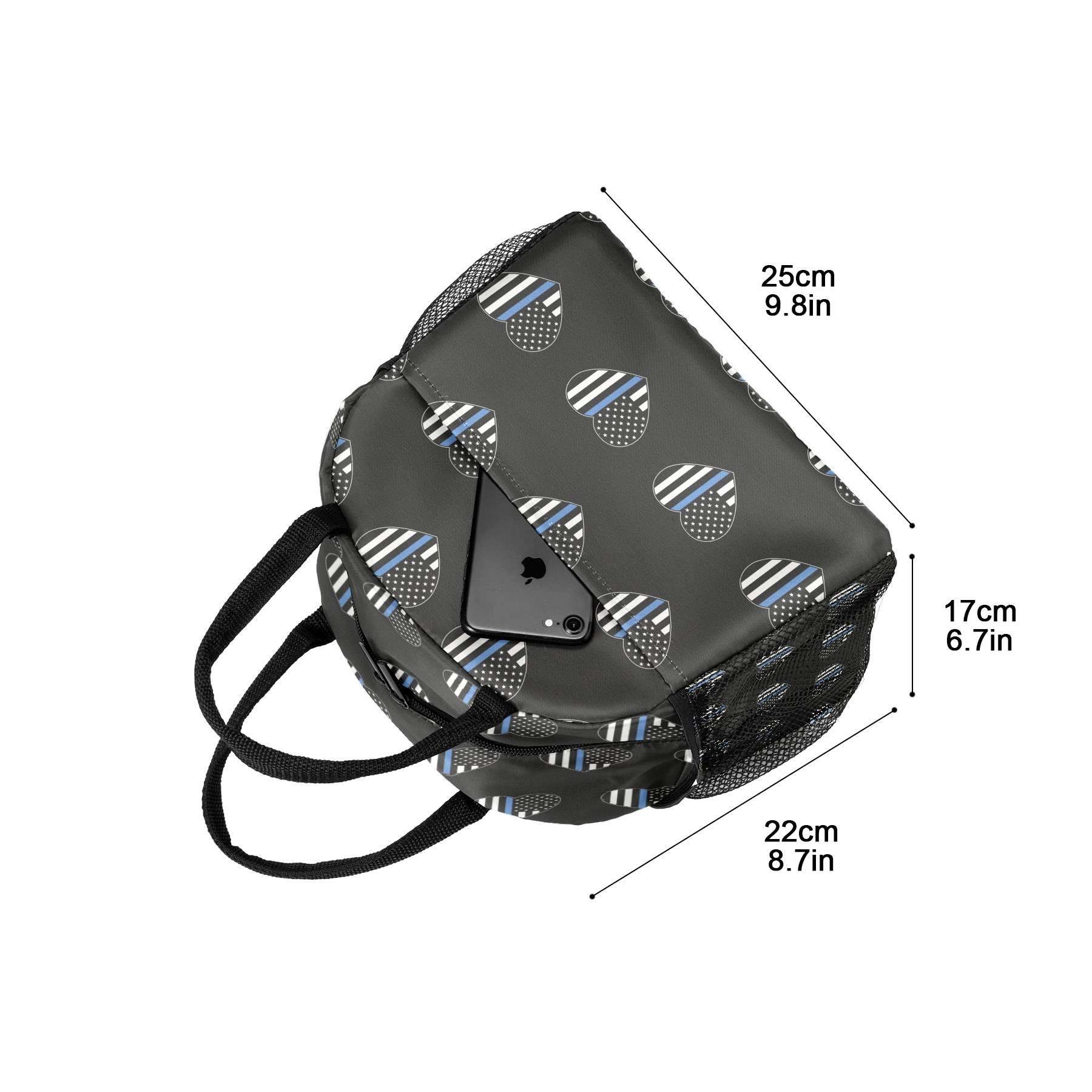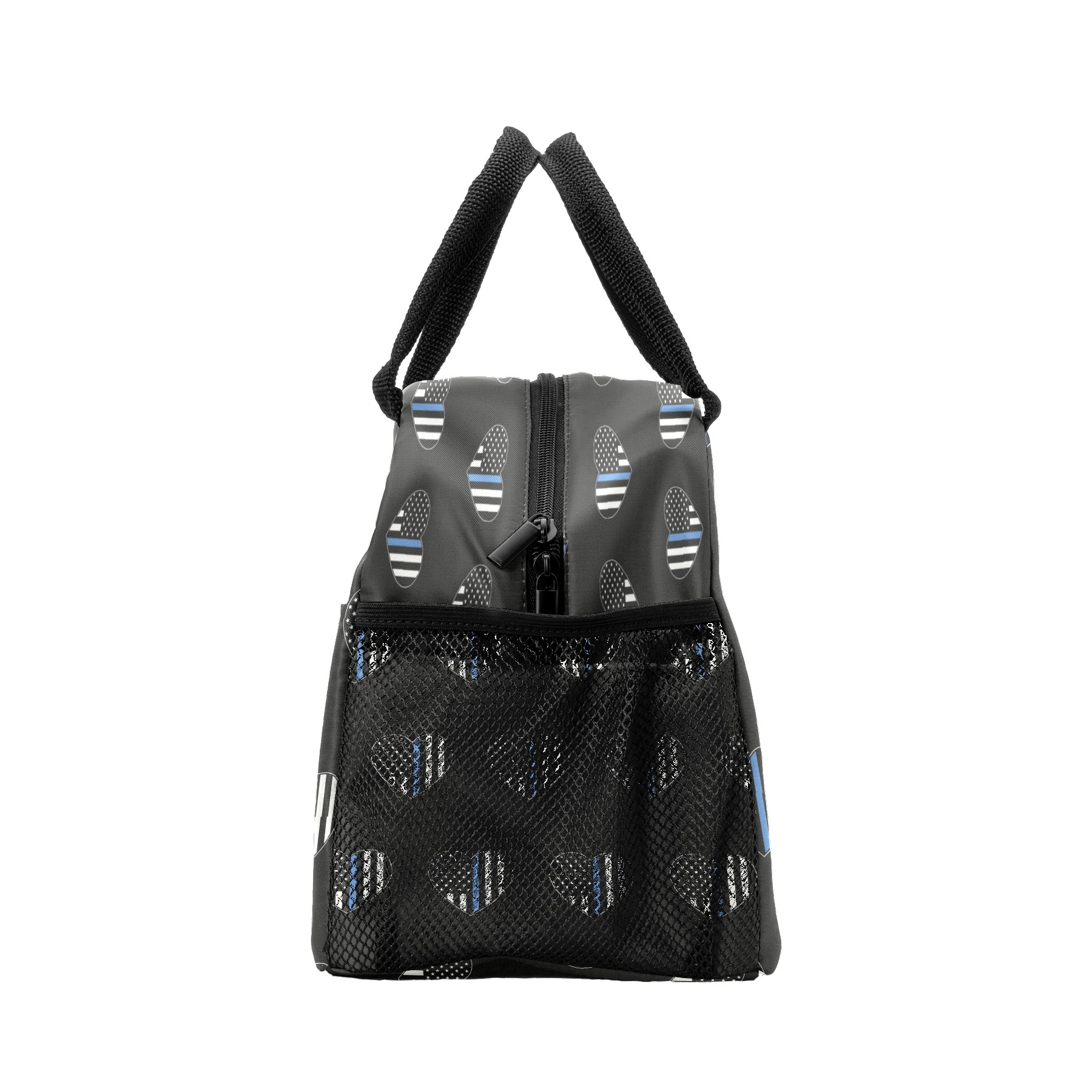 Lunch Bag for Women Men, Blue Thin Line American Flag Heart Insulated Reusable Lunch Box Thermal Cooler Tote Bag for Work Picnic Hiking Travel Beach