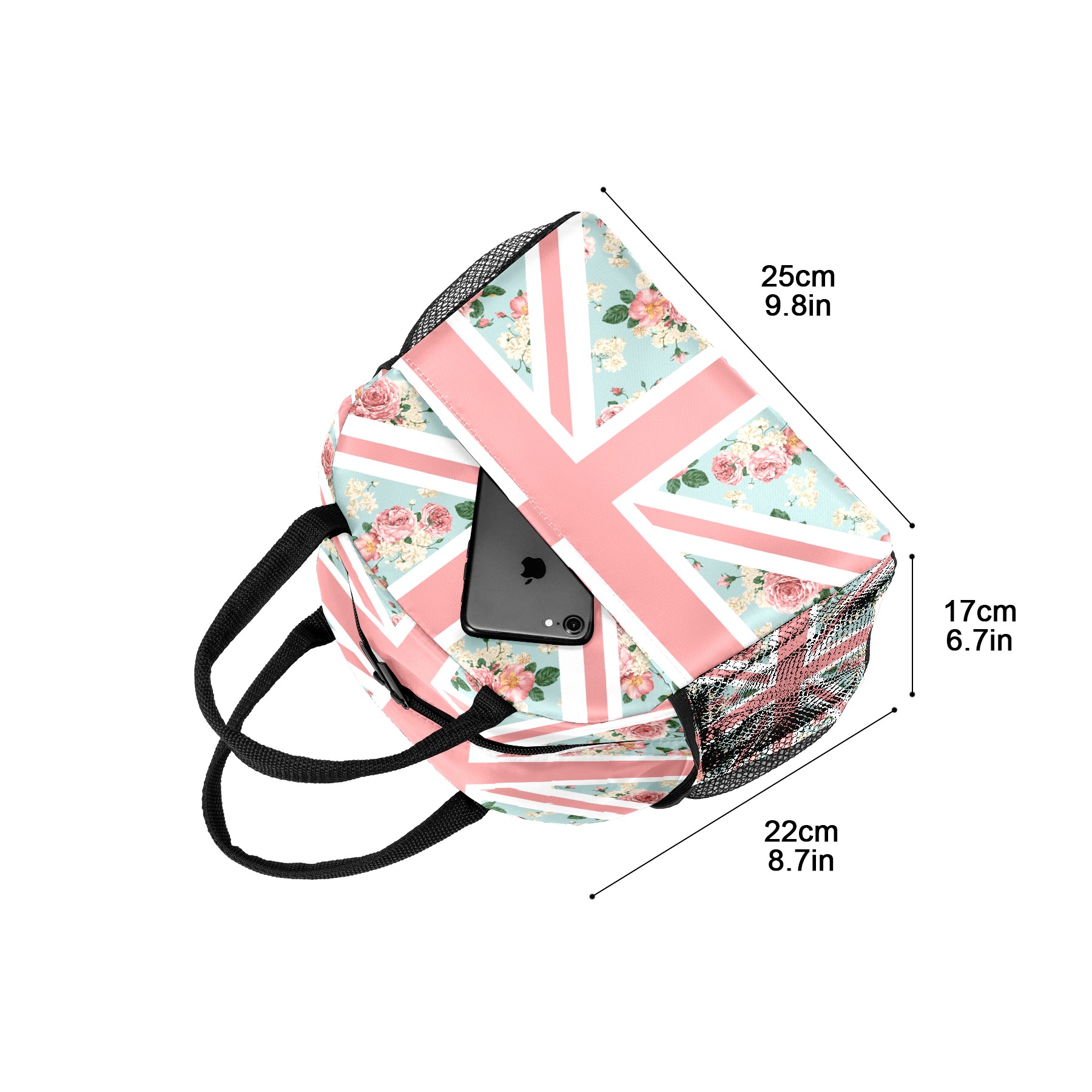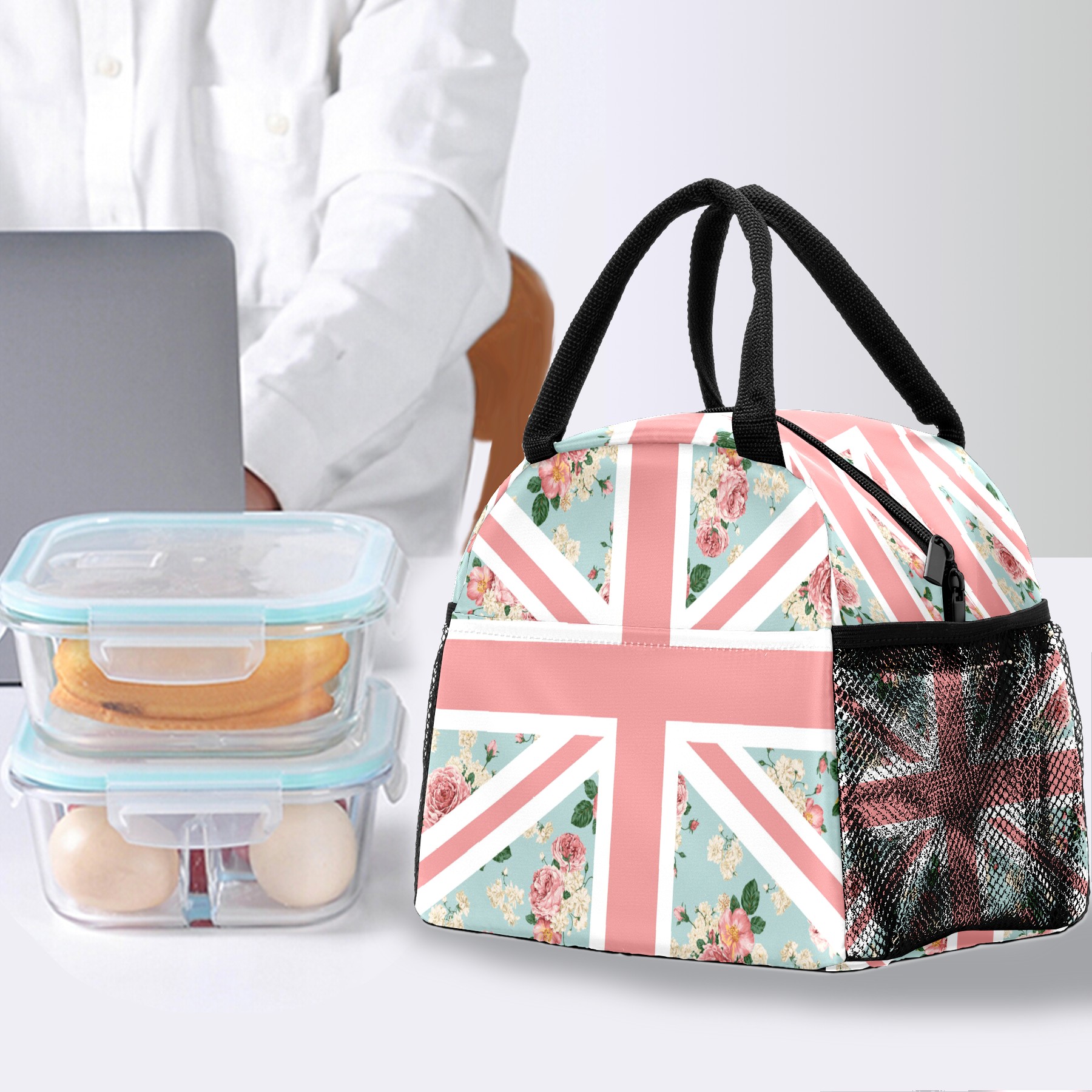 Lunch Bag for Women Men, English Roses Union Jack Flag Insulated Reusable Lunch Box Thermal Cooler Tote Bag for Work Picnic Hiking Travel Beach