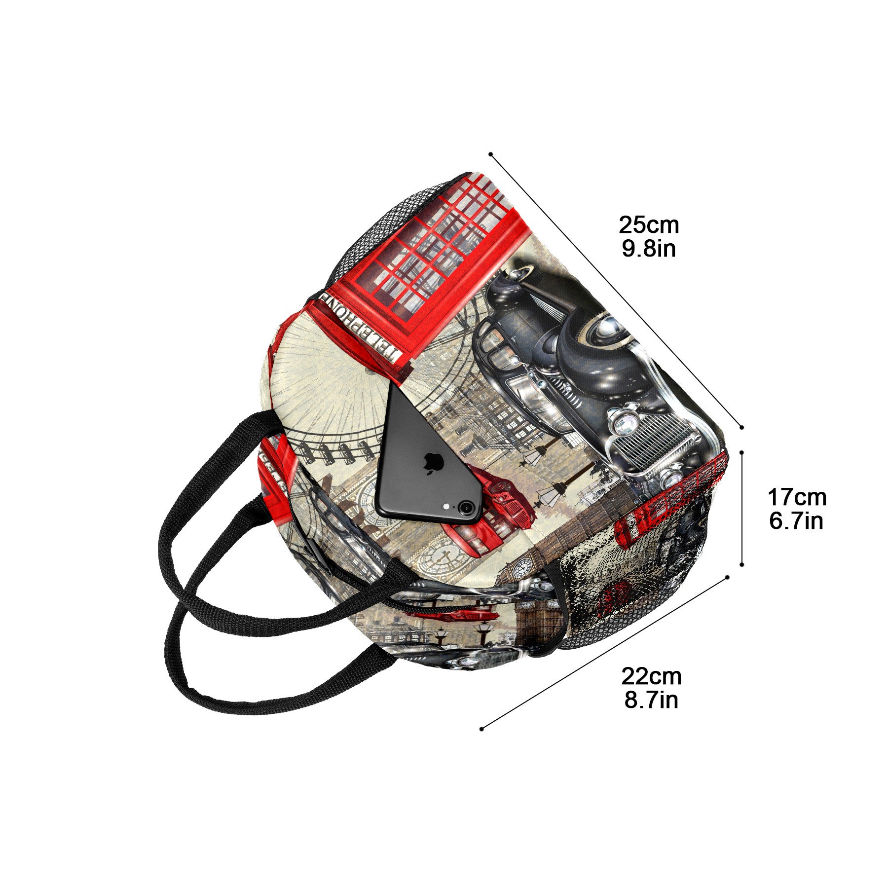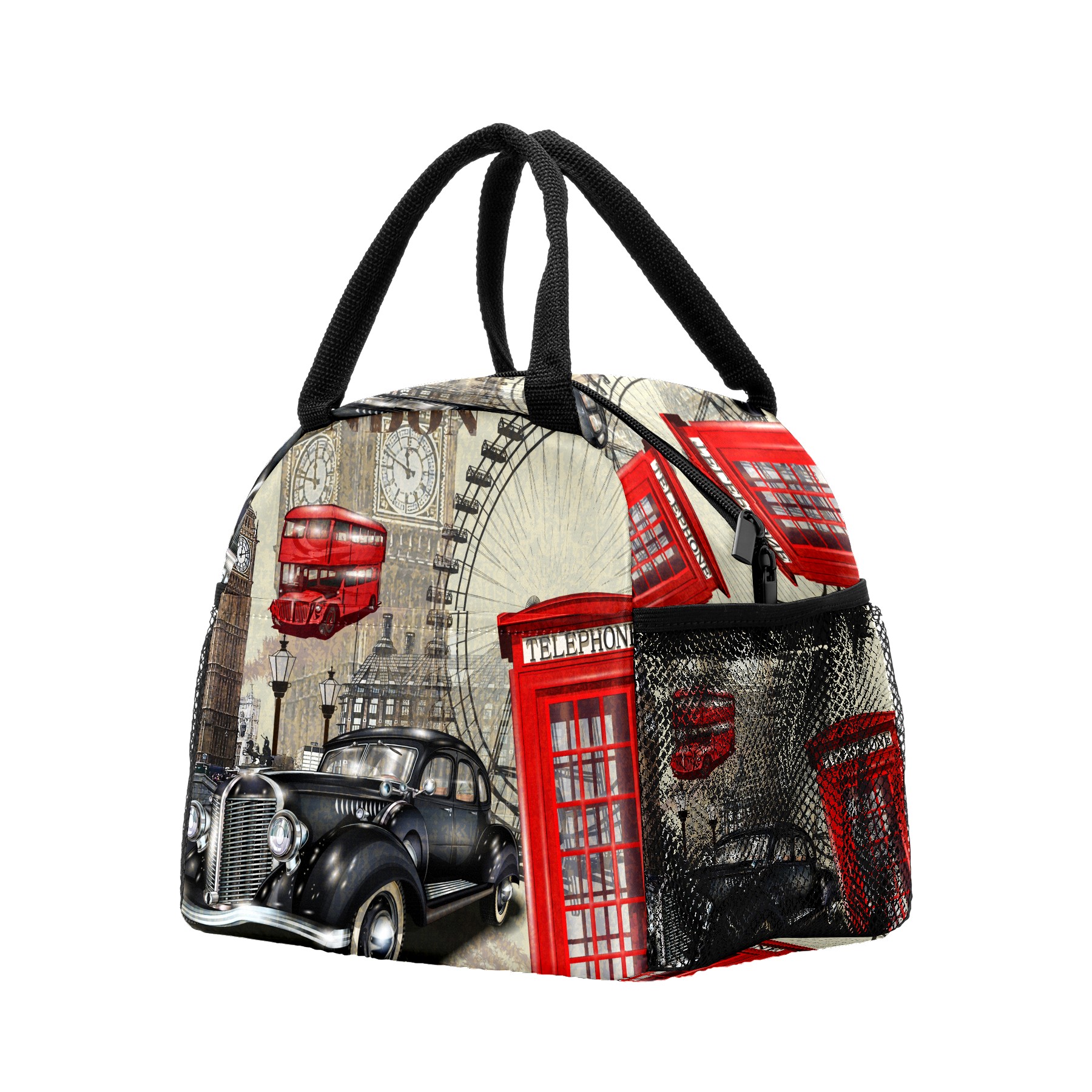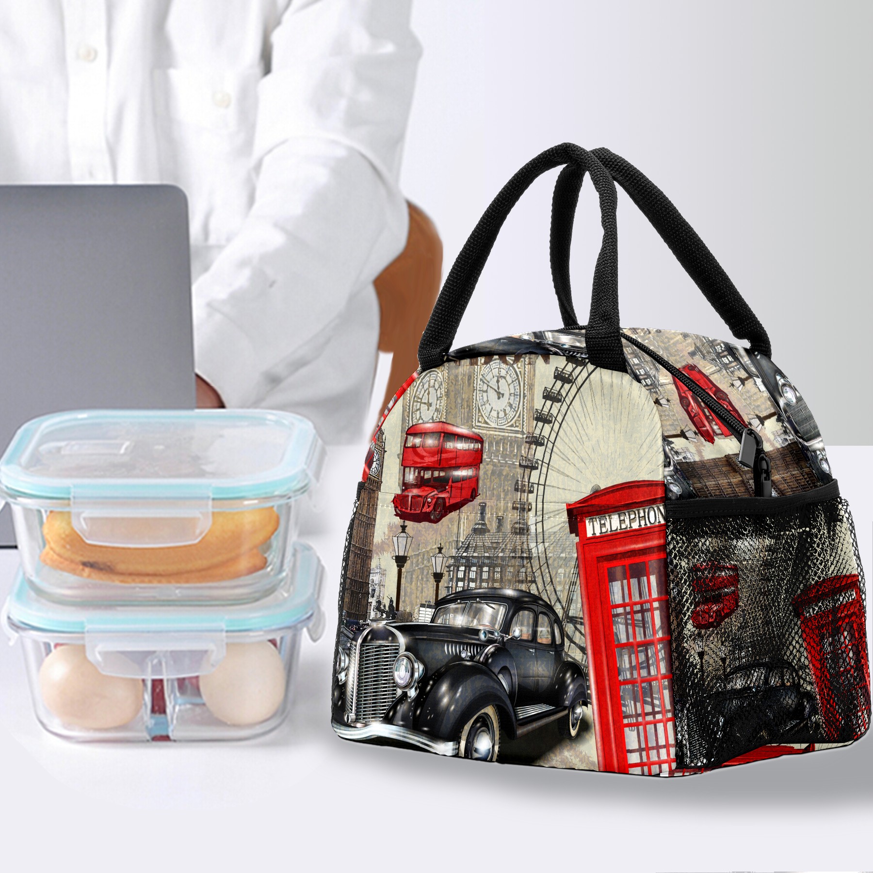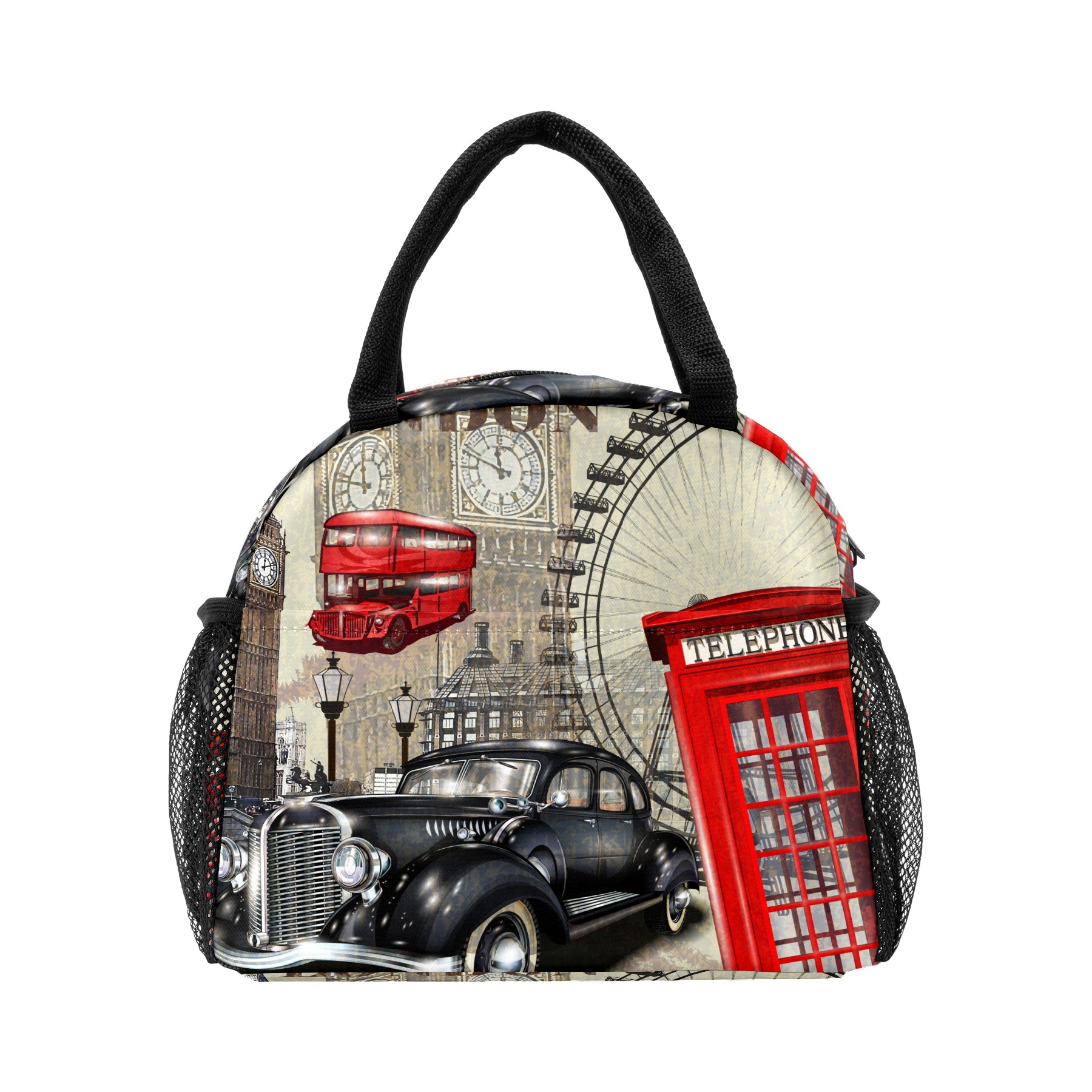 Lunch Bag for Women Men, Vintage Retro London Symbols Insulated Reusable Lunch Box Thermal Cooler Tote Bag for Work Picnic Hiking Travel Beach