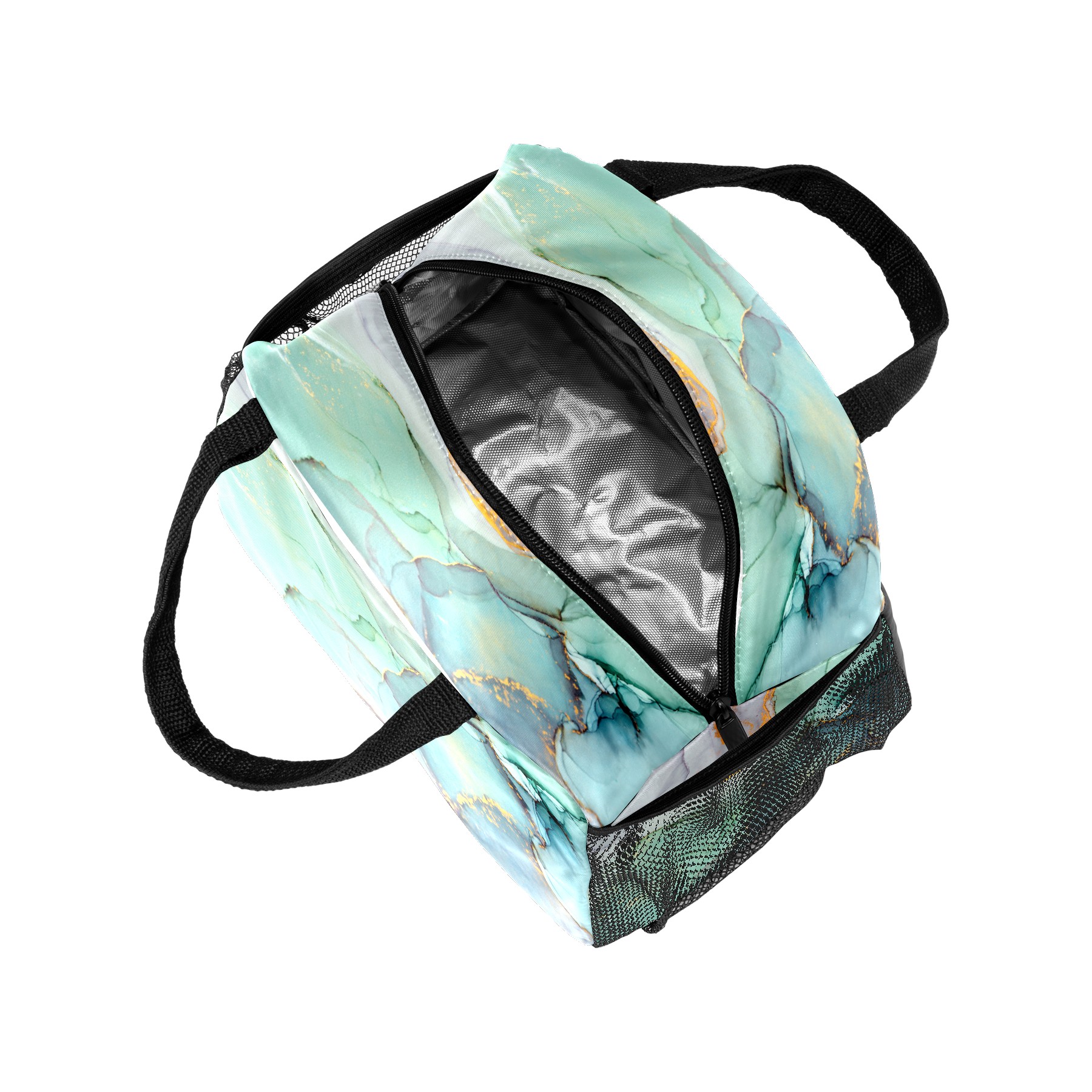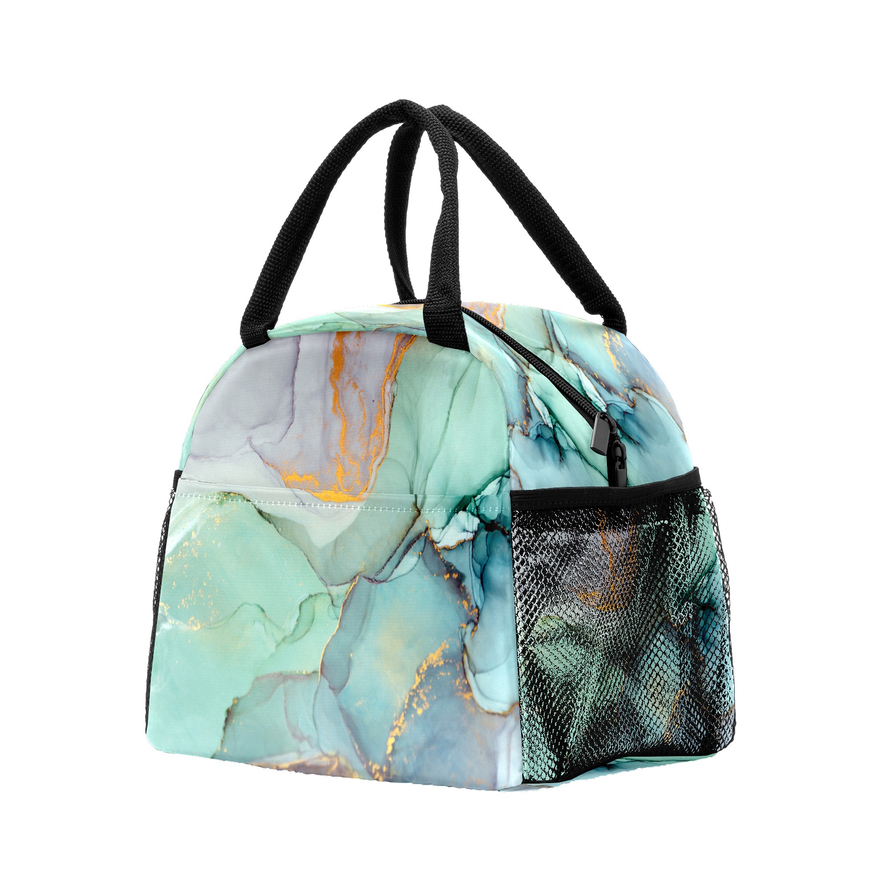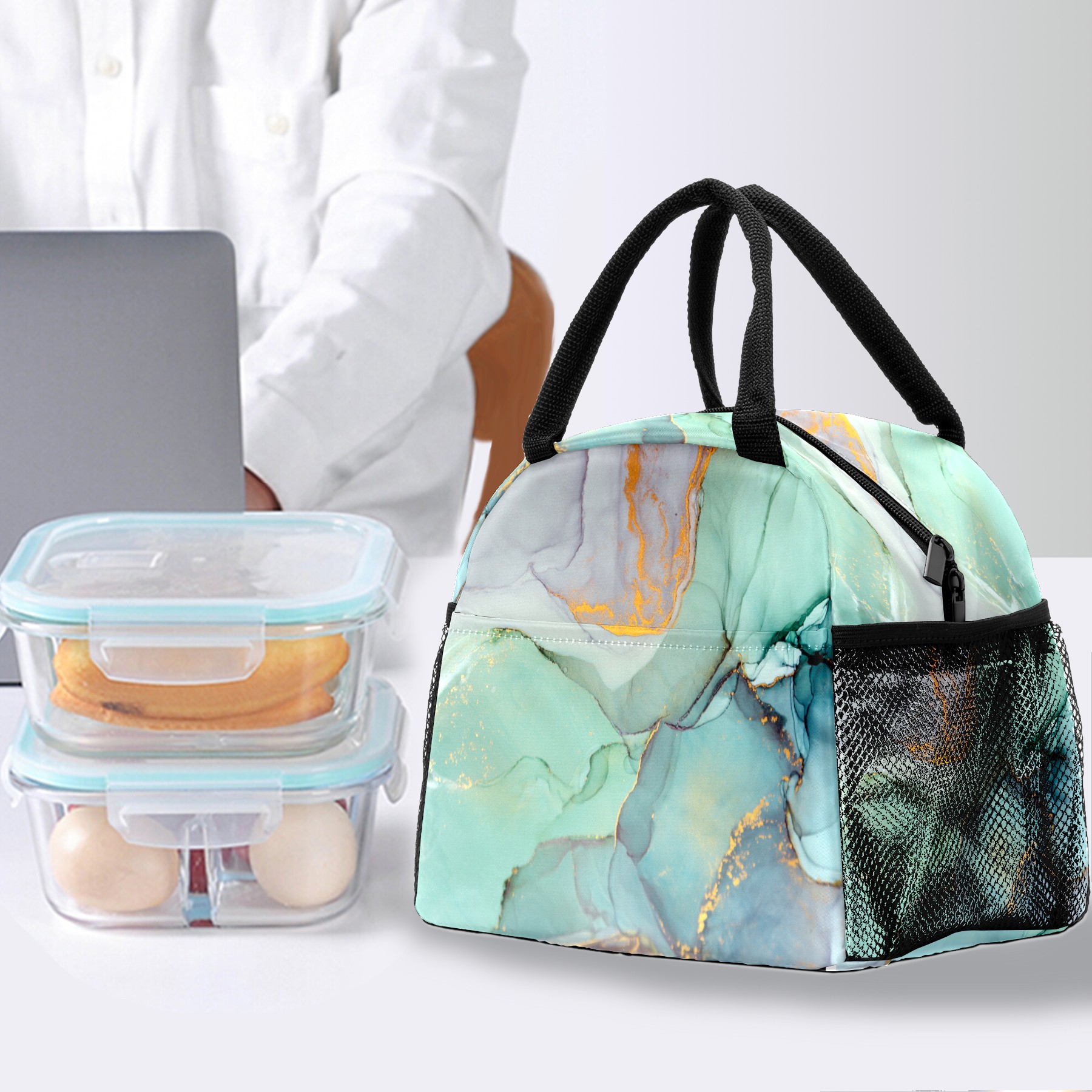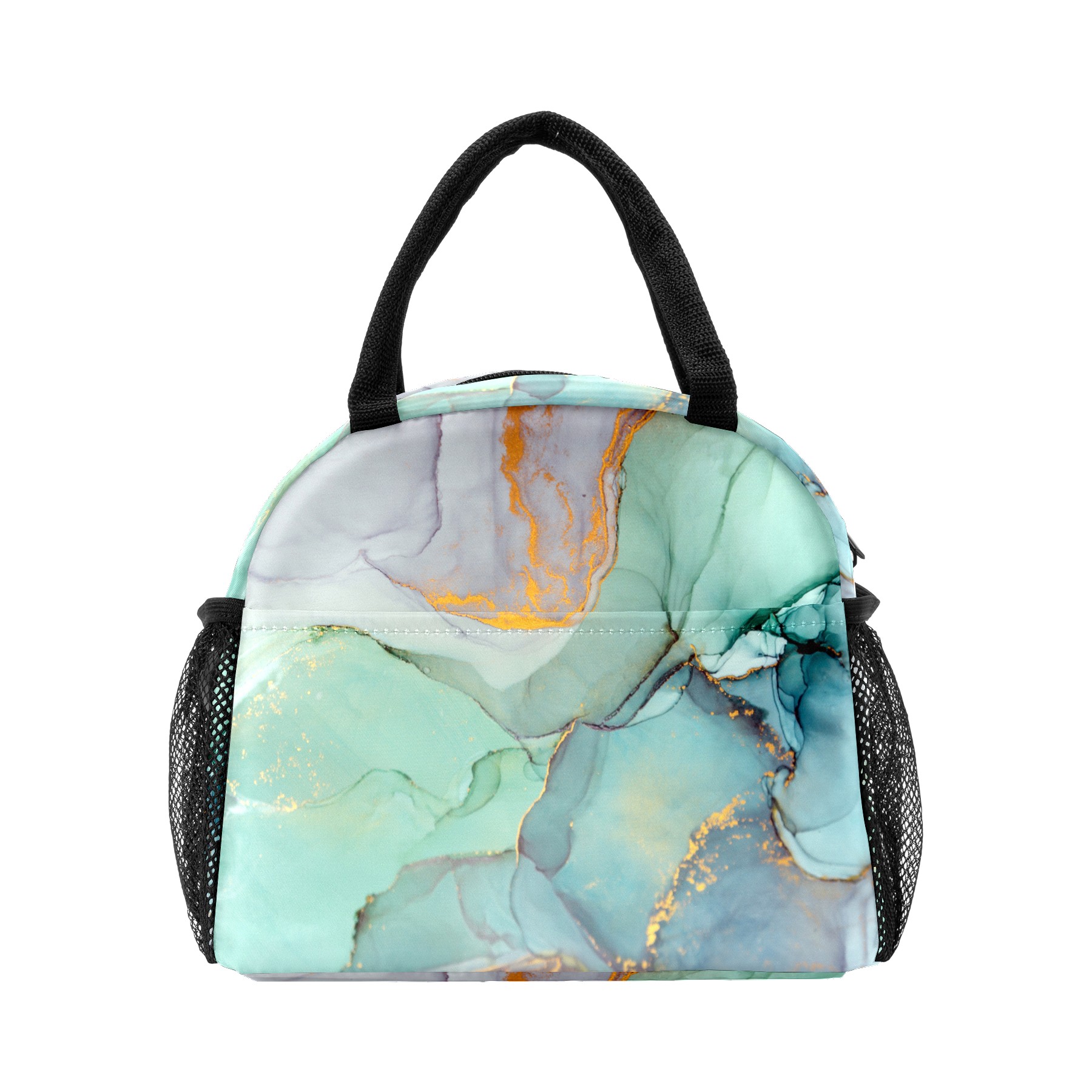 Lunch Bag for Women Men, Abstract Green Marble Insulated Reusable Lunch Box Thermal Cooler Tote Bag for Work Picnic Hiking Travel Beach