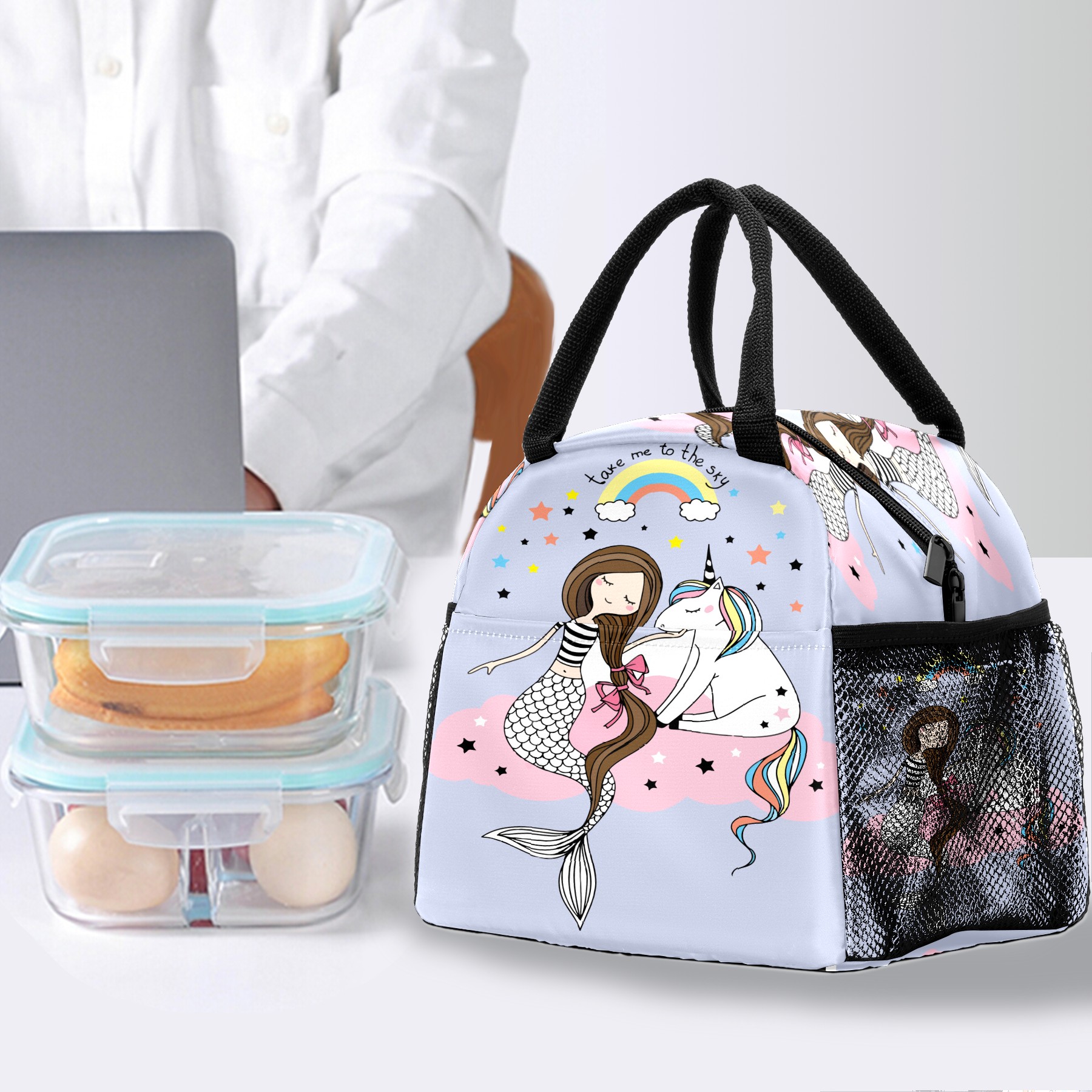 Lunch Bag for Women Men, Mermaid Unicorn Rainbow Insulated Reusable Lunch Box Thermal Cooler Tote Bag for Work Picnic Hiking Travel Beach
