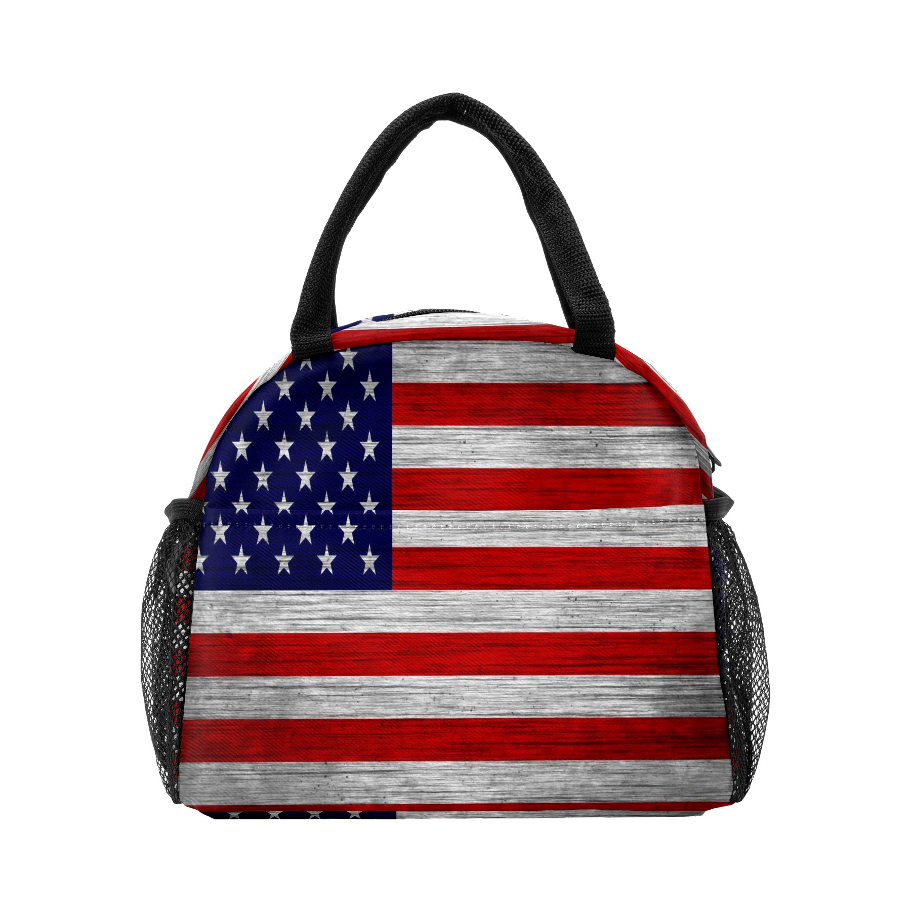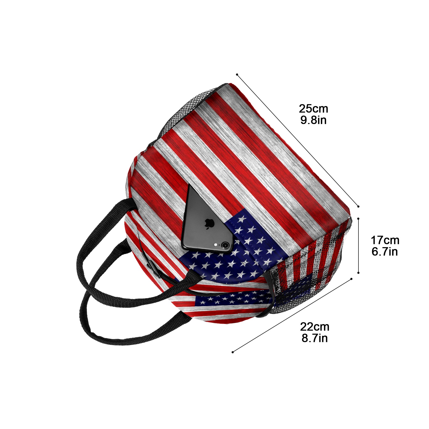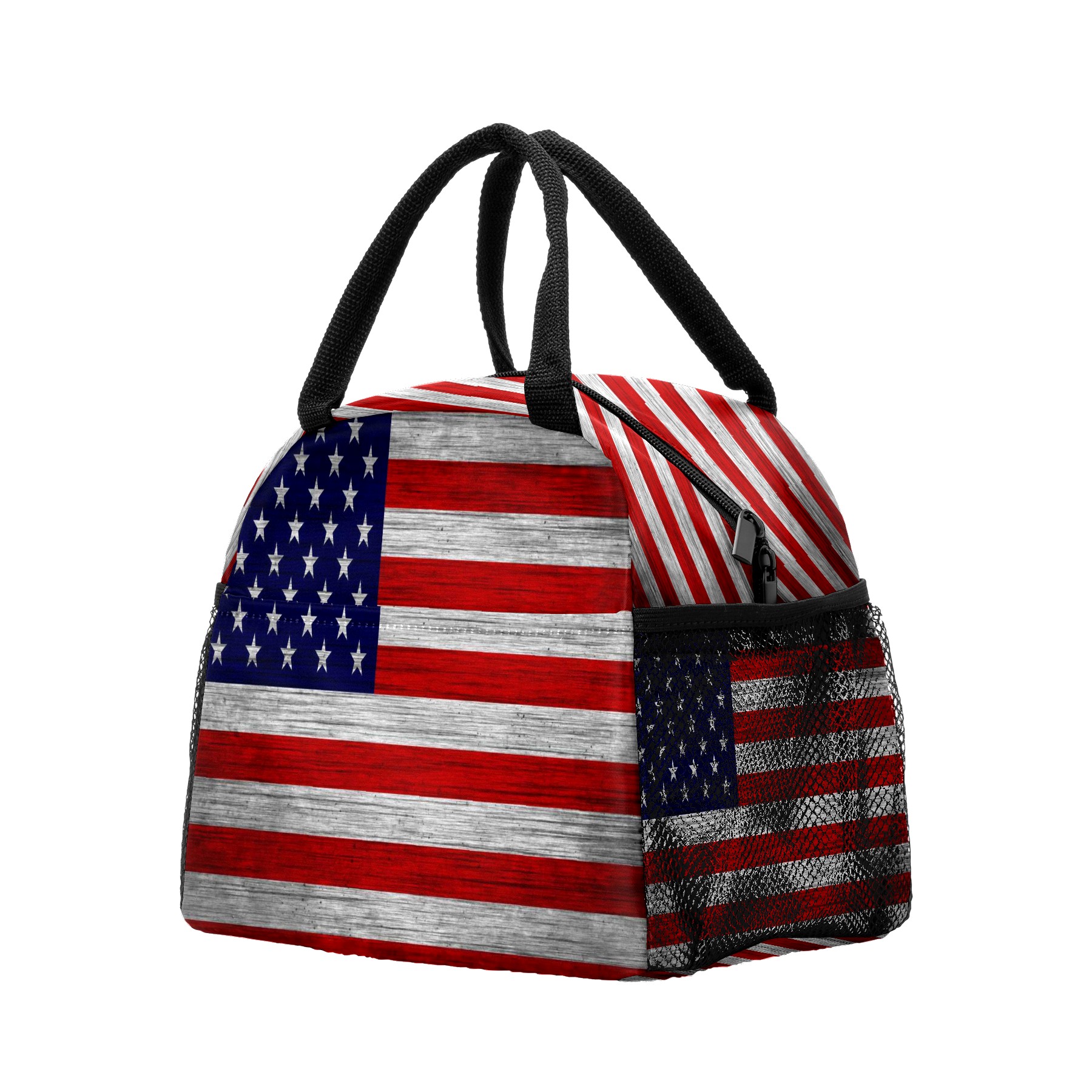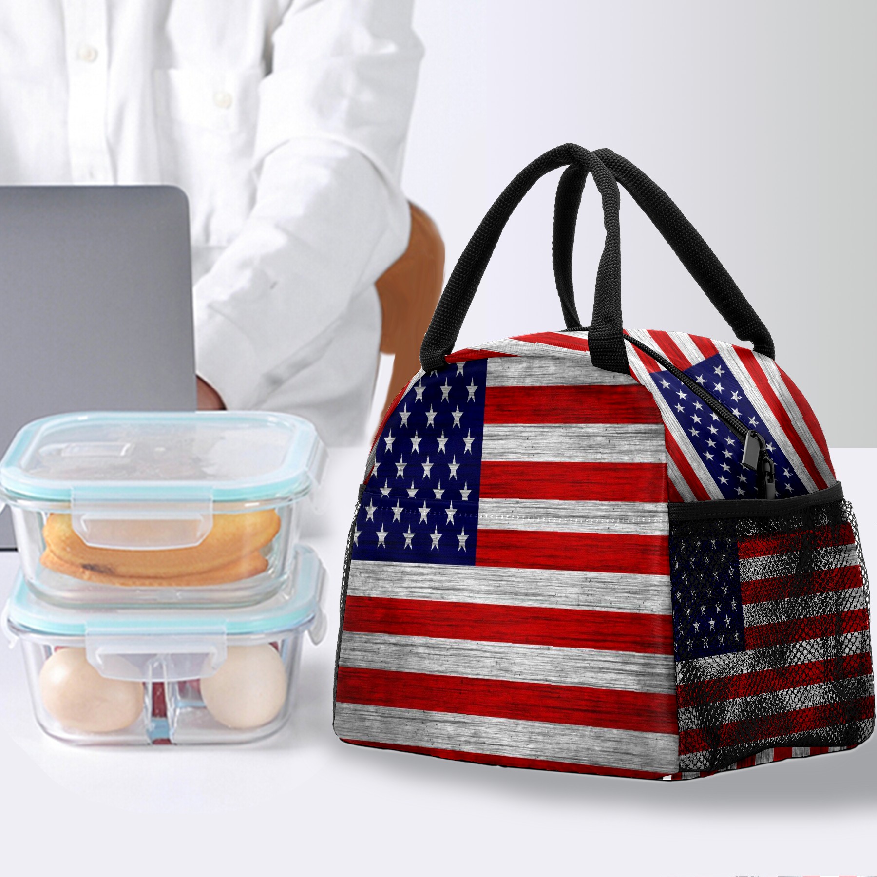 Lunch Bag for Women Men, Usa American Flag Insulated Reusable Lunch Box Thermal Cooler Tote Bag for Work Picnic Hiking Travel Beach