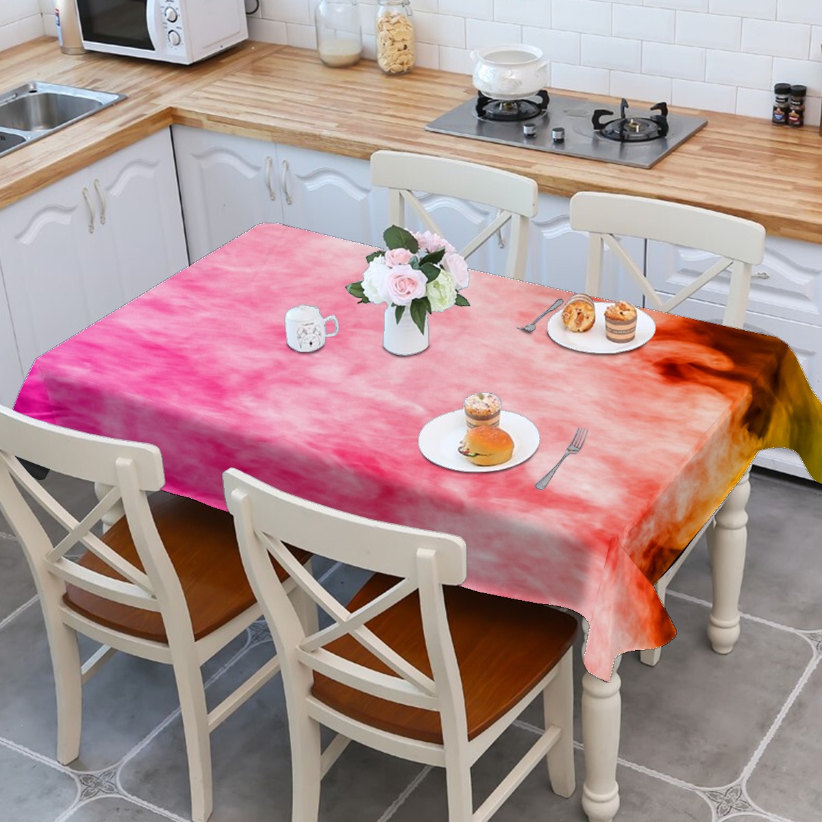 • <p>Our tablecloth can create a fun and festive atmosphere while protecting your table. Featured pattern easily brings a sophisticated style to any table setting. Great for indoor or outdoor use</p> <p>Features</p> <p> Made of durable polyester fabric</p> <p> The water resistant coating can withstand water to a certain extent.</p> <p> All those liquids can be quickly wiped clean with a napkin or towel.</p> <p> Tear resistant and color fade resistant.</p> <p> Featuring fine sewing and neat edges.Easy Care</p> <p> 1.Machine washable</p> <p> 2.No bleach</p> <p> 3. Tumble dry on low</p>