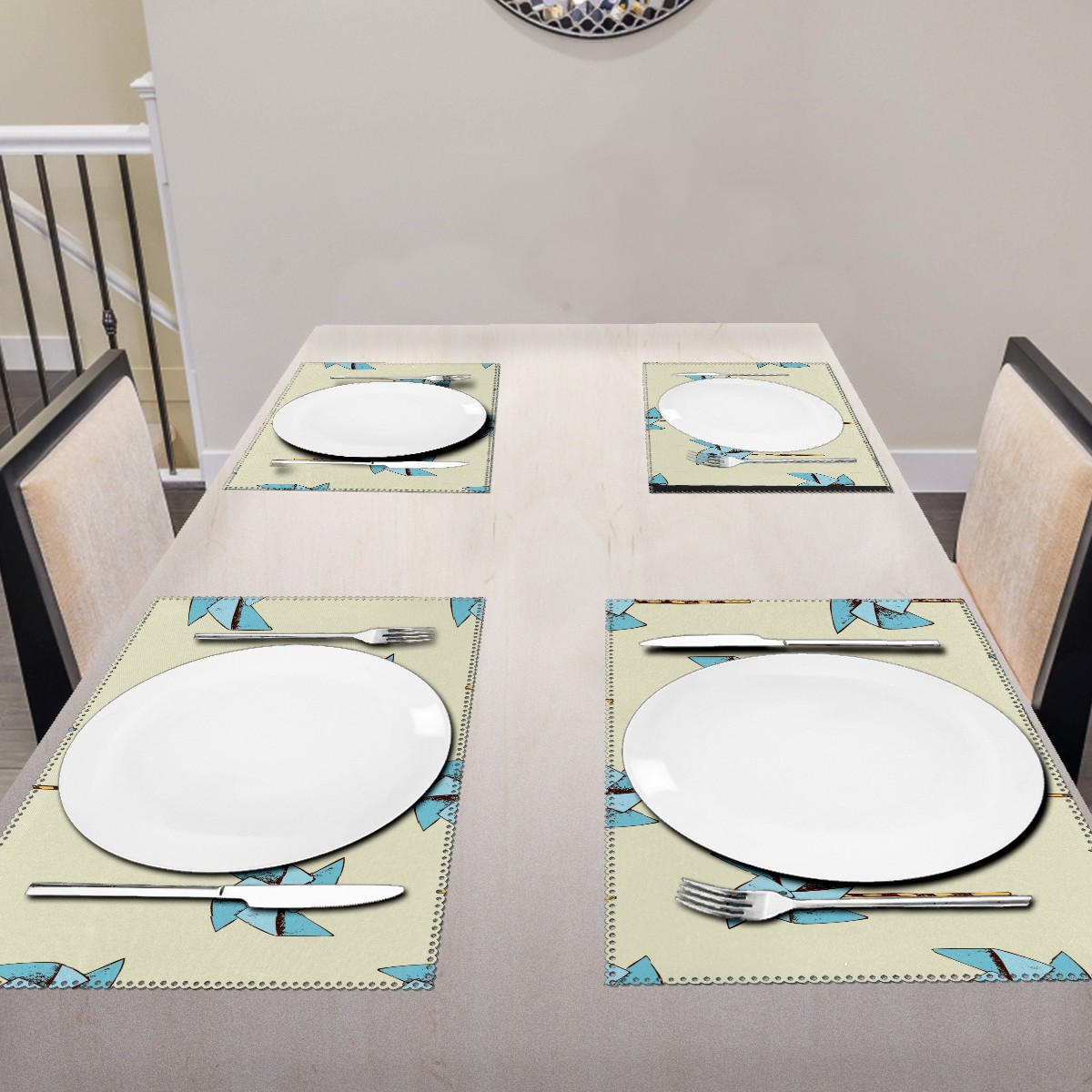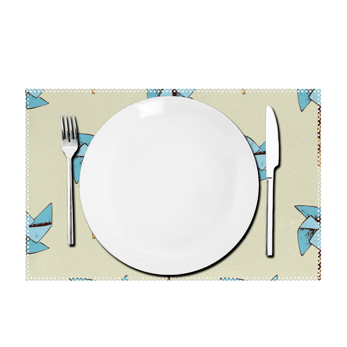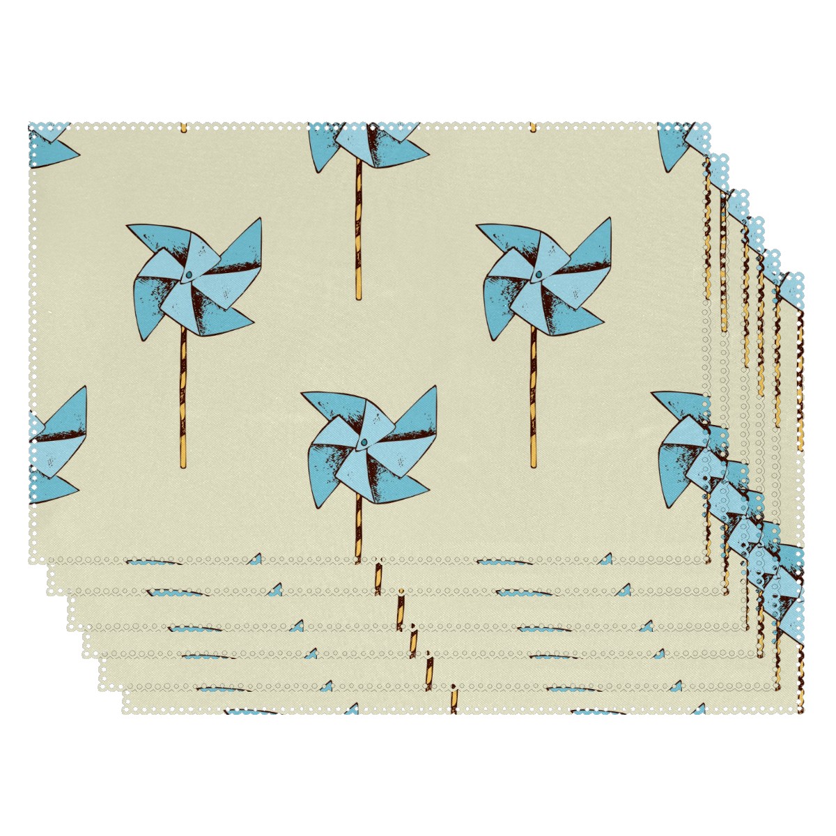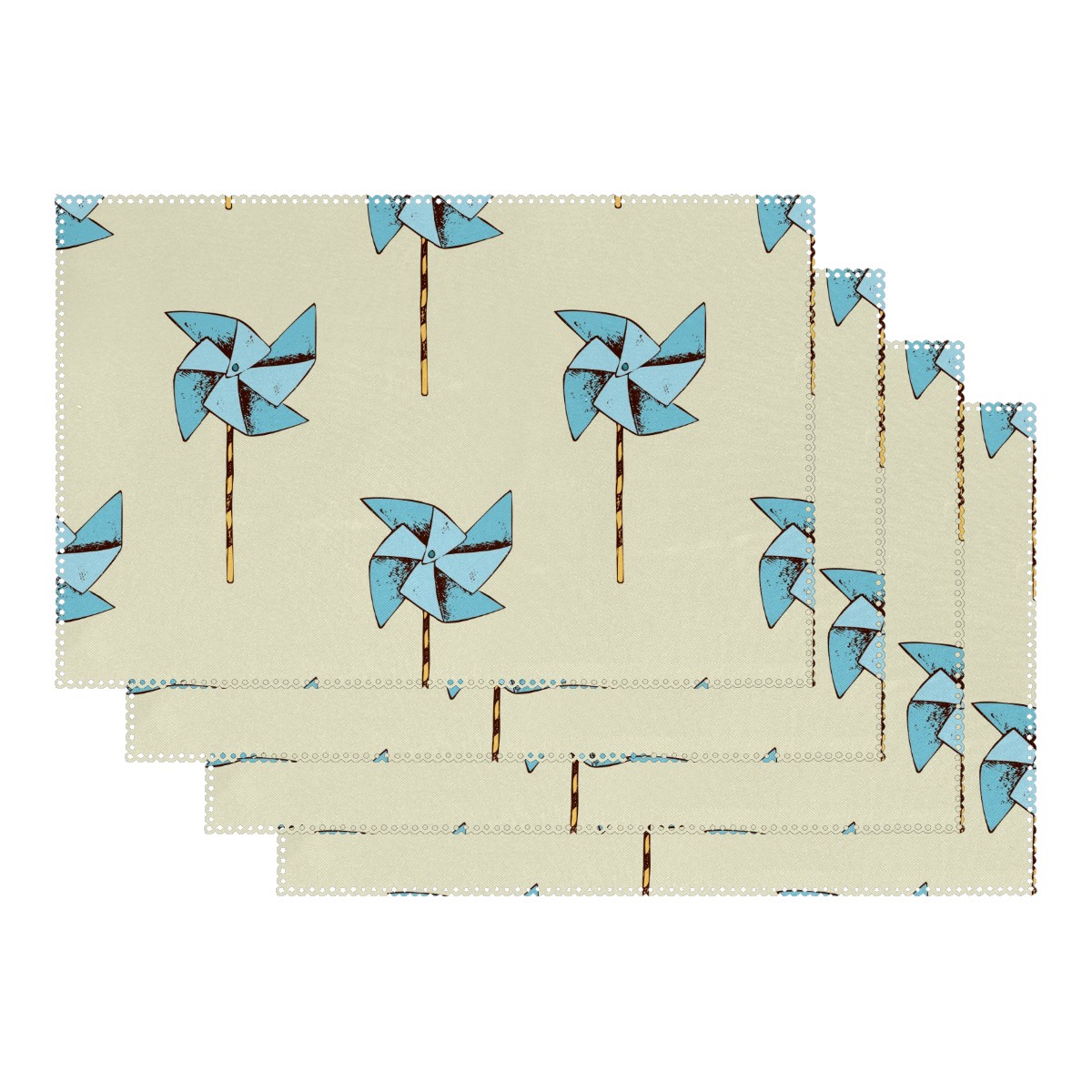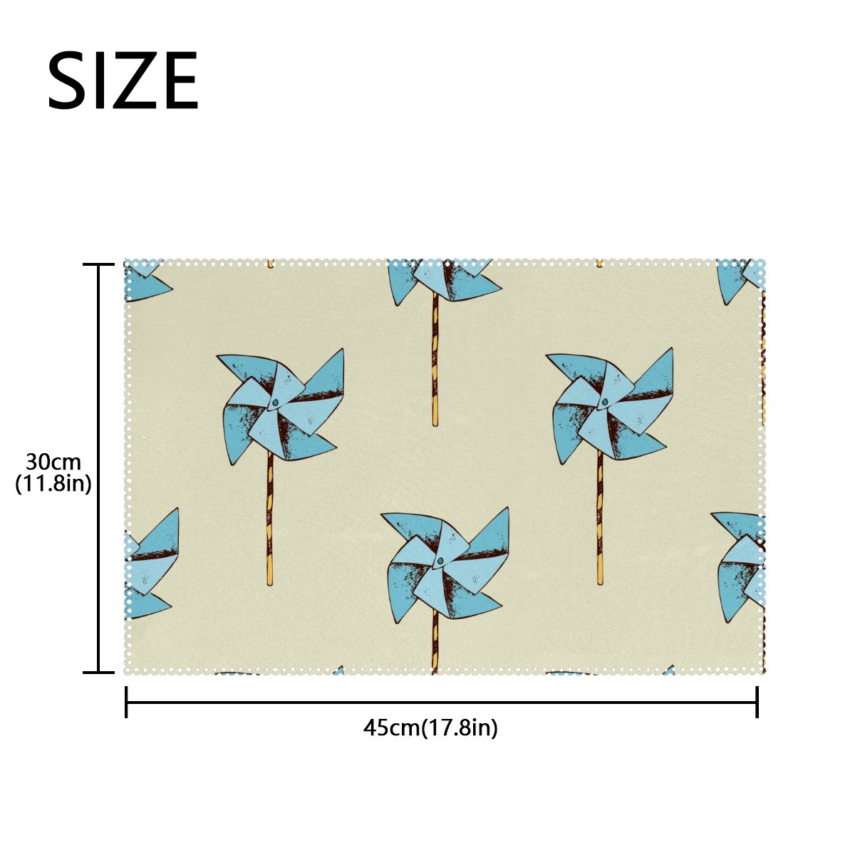 Dining Mat Blue Paper Windmill Pinwheel Table Mat Washable Heat Resistant Polyester Print Place mats for Kitchen Dining Table 11.8"x17.8"