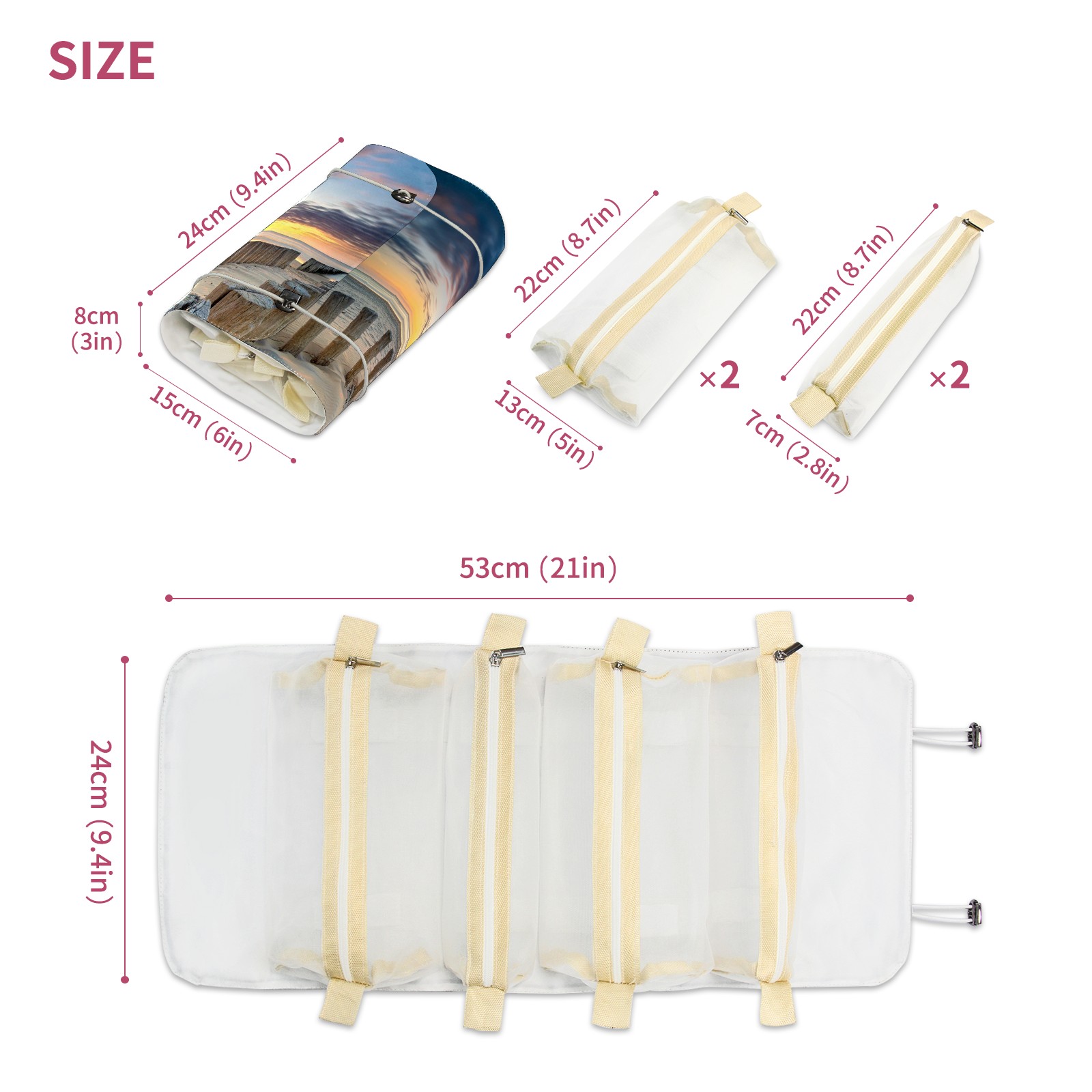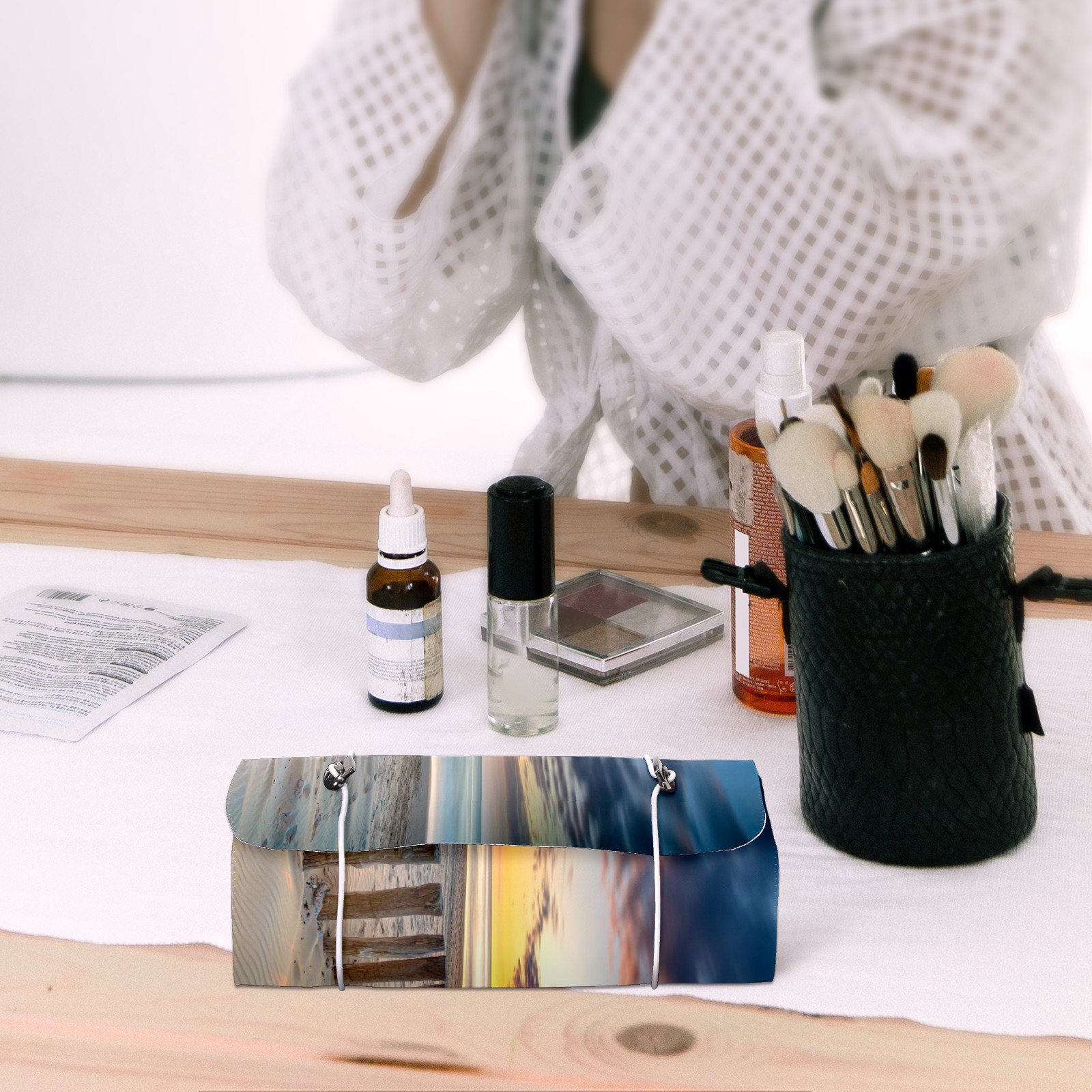 Makeup Bag Organizer Toiletry Bags for Traveling Travel Makeup Organizer Make Up Case Roll Up Toiletry Bag Makeup Bag Wooden Deck Seashore Travel Cosmetic Bag
