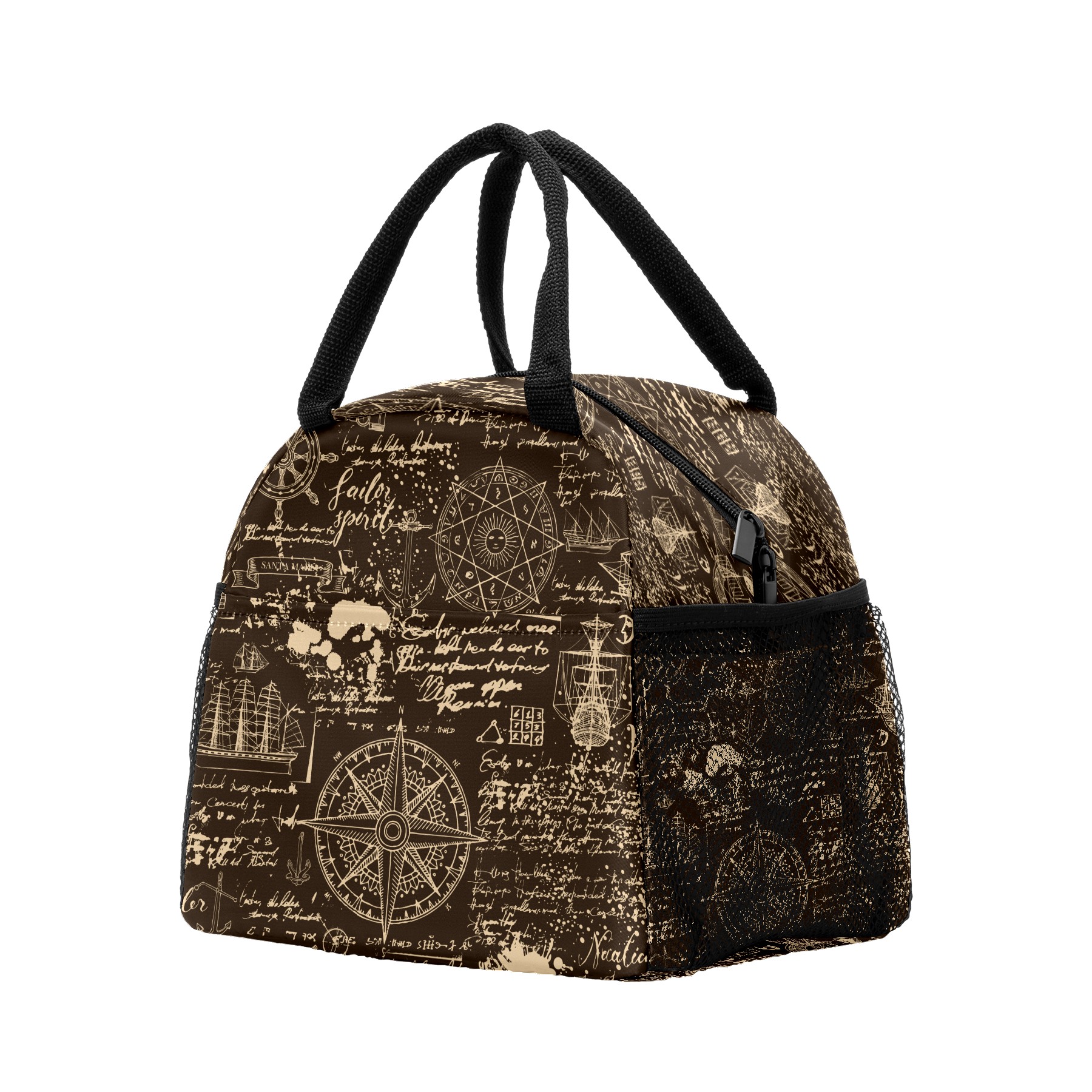 Lunch Bag for Women Men, Vintage Old World Nautical Anchor Compass Insulated Reusable Lunch Box Thermal Cooler Tote Bag for Work Picnic Hiking Travel Beach