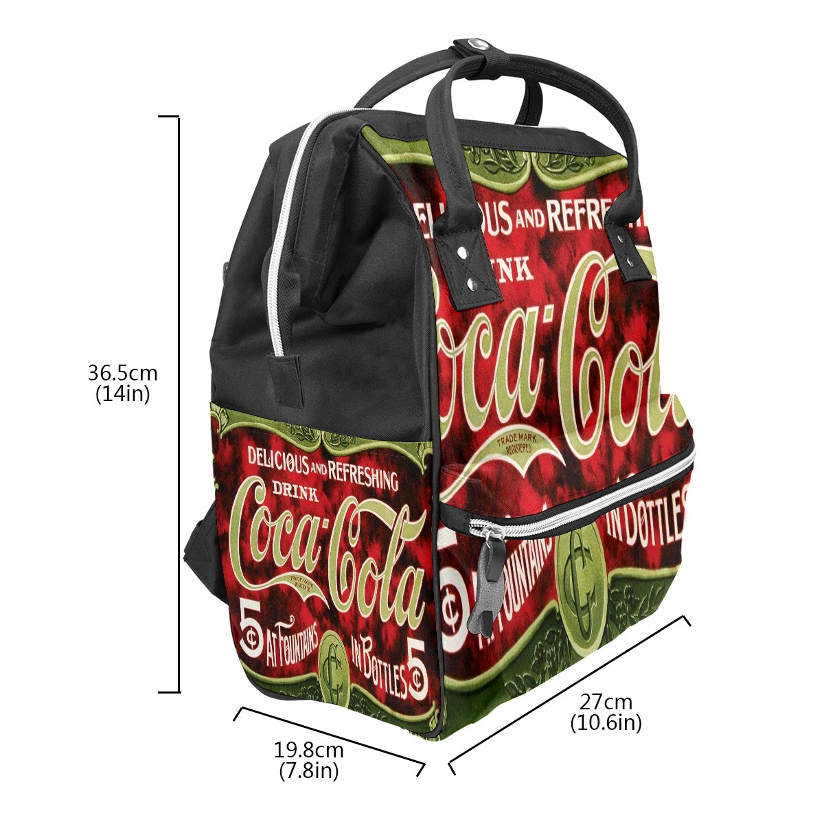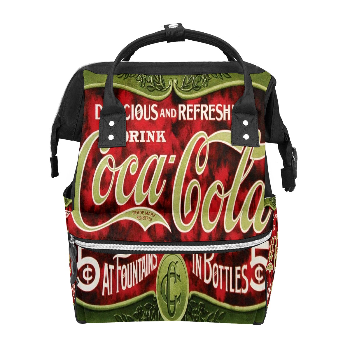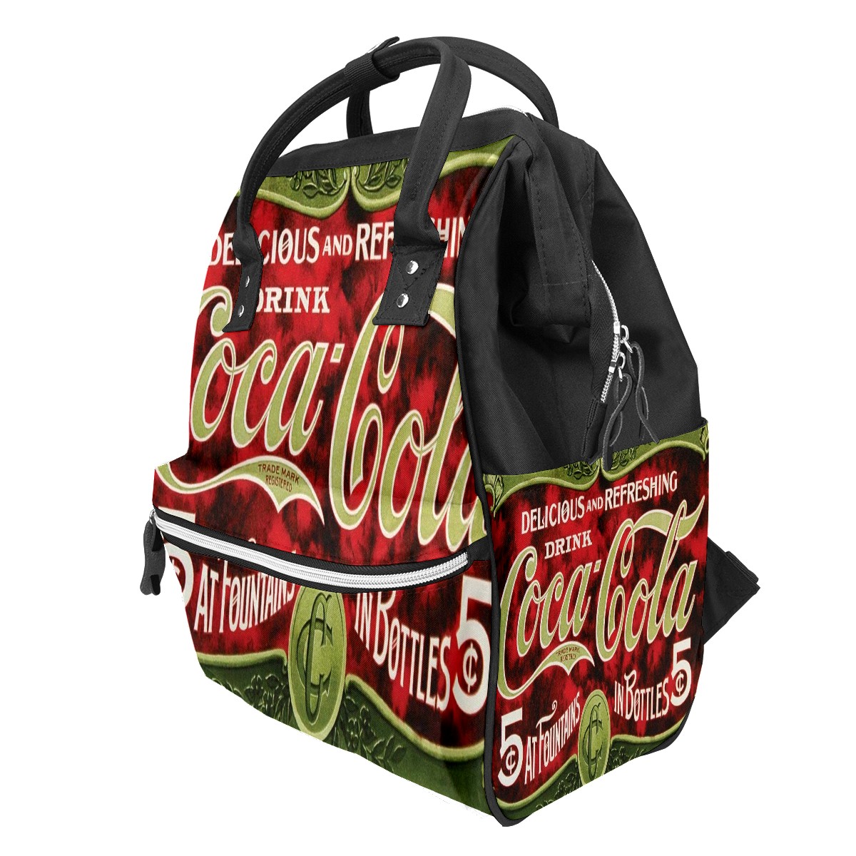Backpack Diaper Bag Retro Coca-Cola Vintage Green Waterproof Baby Bag Mom and Dad's Diaper Backpack Lightweight Large Capacity Diaper Bag Travel Daypack