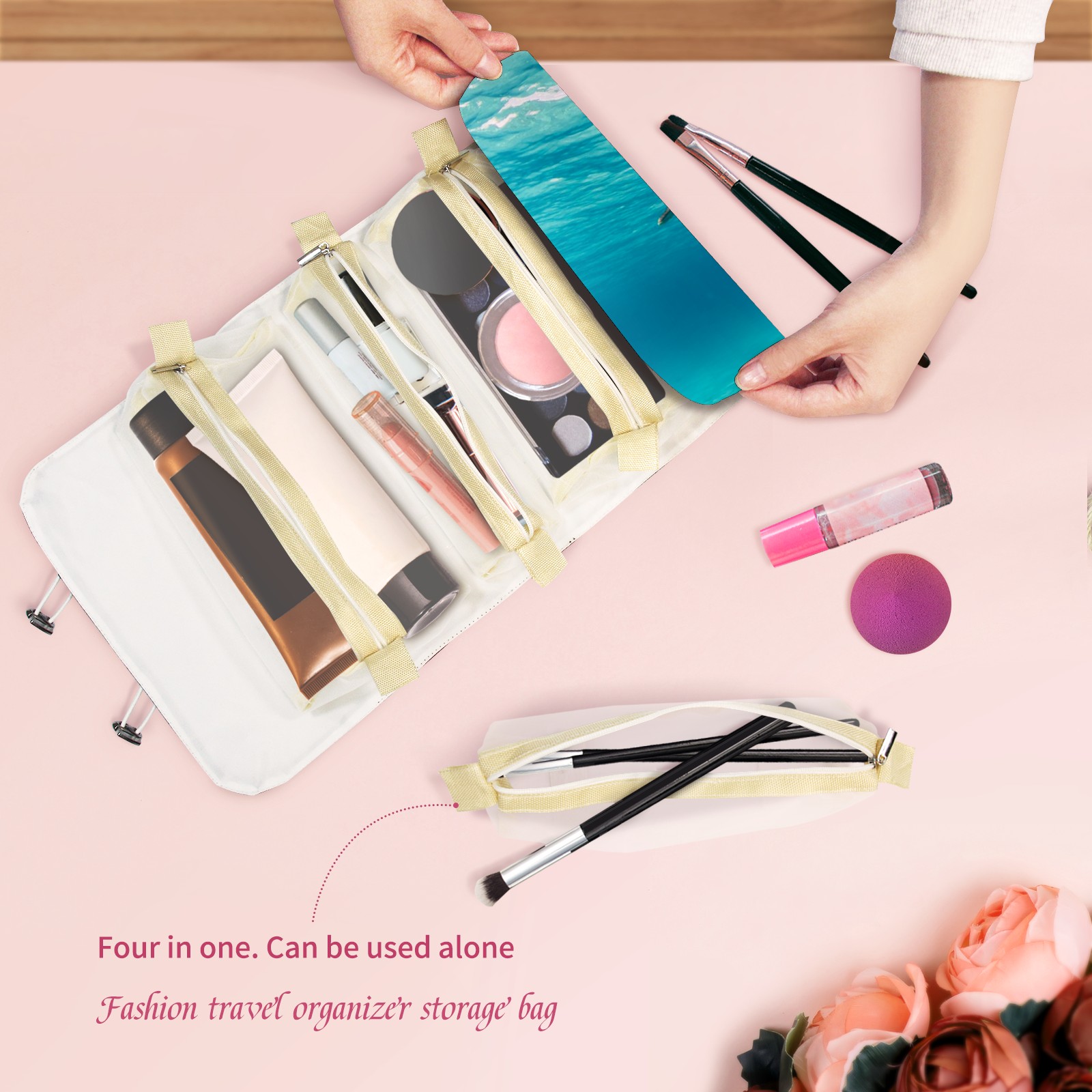 Makeup Bag Organizer Toiletry Bags for Traveling Travel Makeup Organizer Make Up Case Roll Up Toiletry Bag Makeup Bag Underwater Dolphins Travel Cosmetic Bag