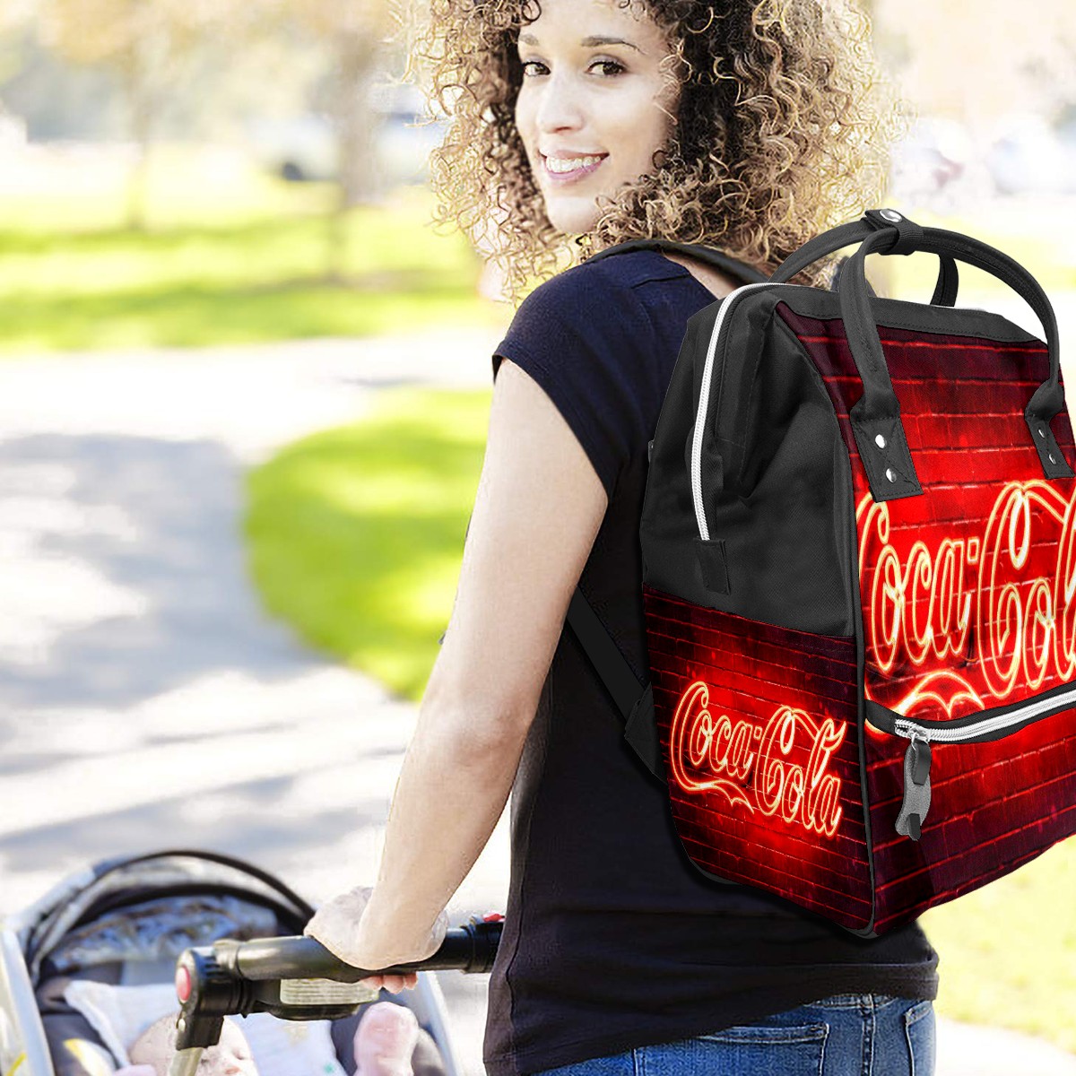 Backpack Diaper Bag Neon Coca-Cola Sign Waterproof Baby Bag Mom and Dad's Diaper Backpack Lightweight Large Capacity Diaper Bag Travel Daypack
