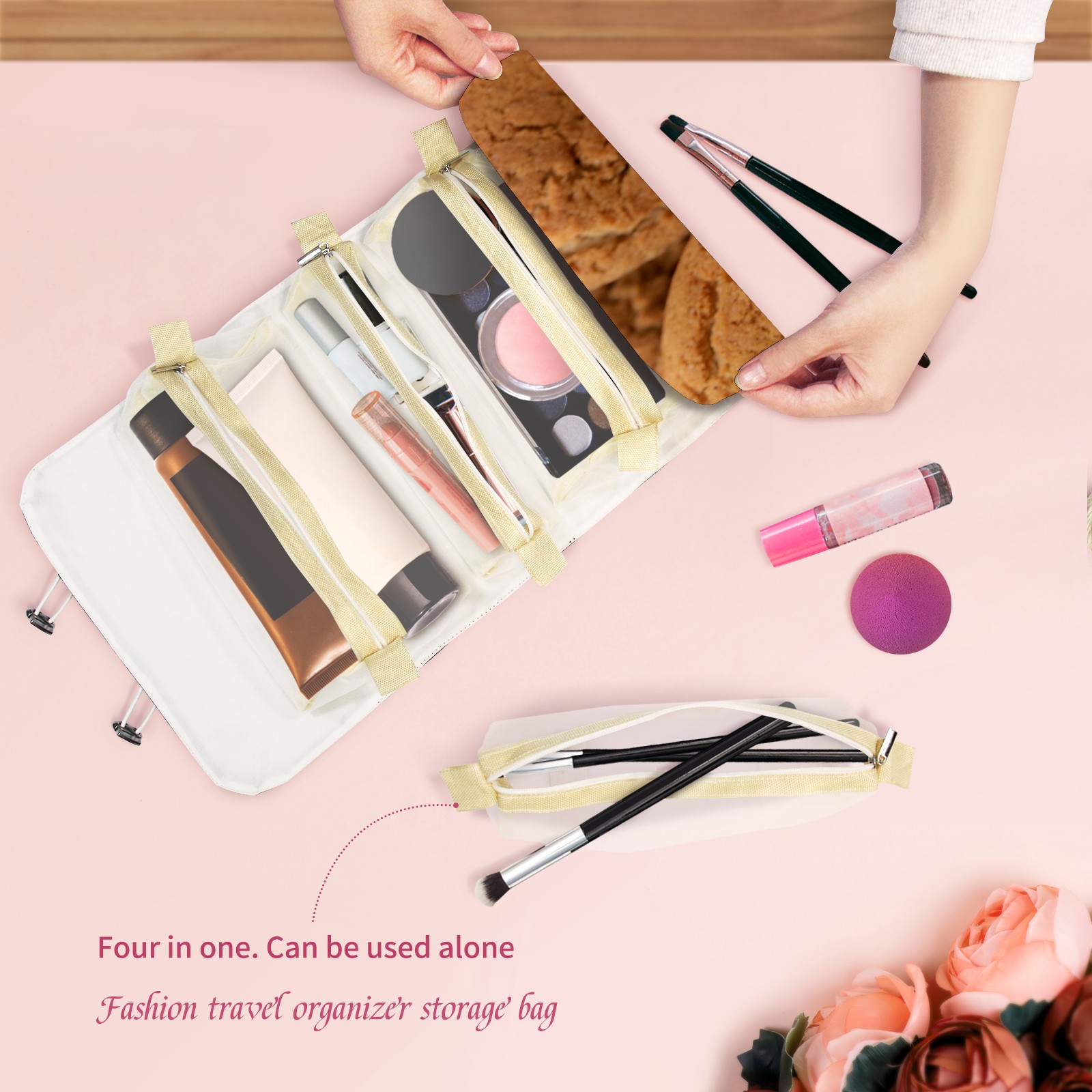 Makeup Bag Organizer Toiletry Bags for Traveling Travel Makeup Organizer Make Up Case Roll Up Toiletry Bag Makeup Bag Sweet Cookies Travel Cosmetic Bag
