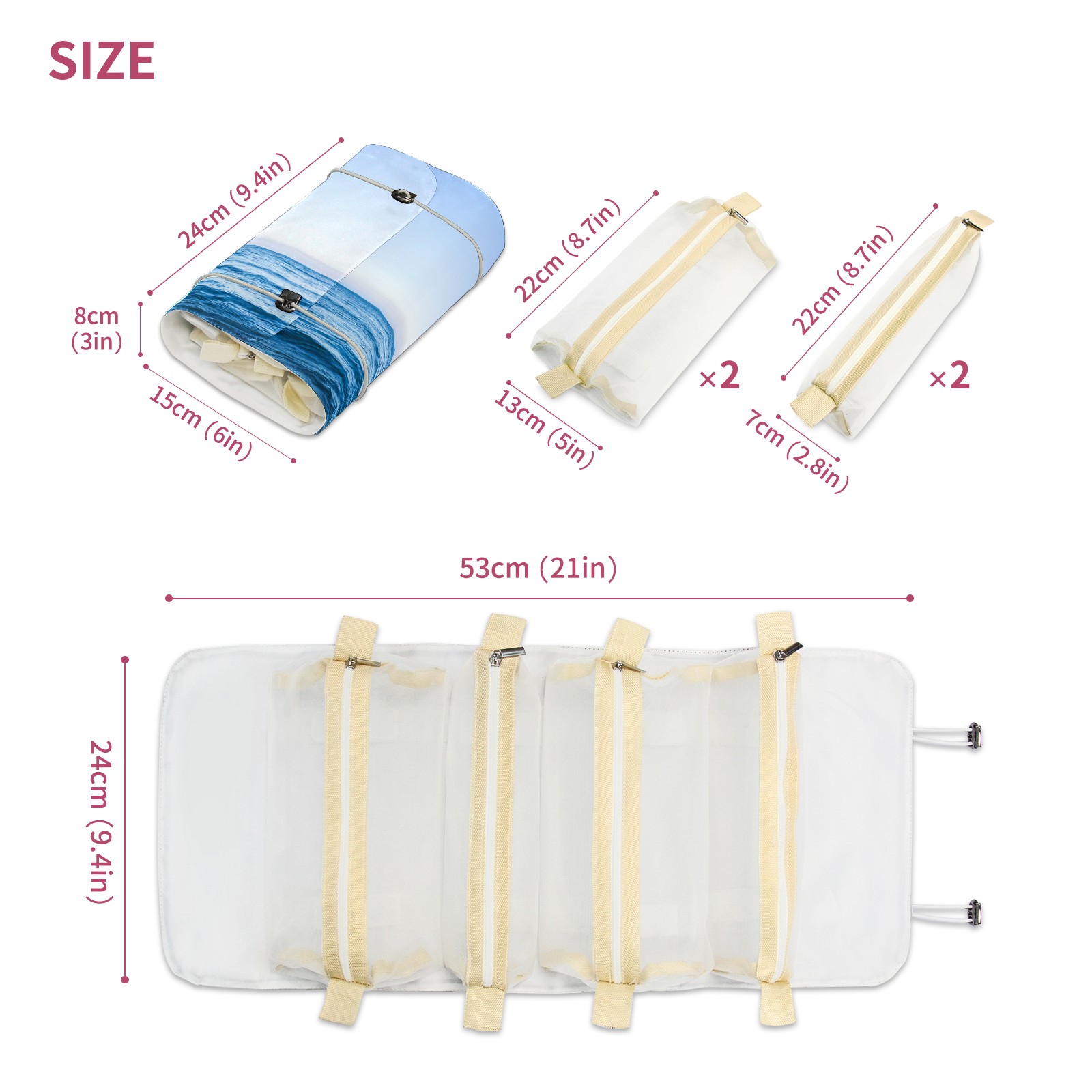 <p> This is a nice and compact travel/ organizer bag. All the pouches are removable. This makes it very easy to use or pull out what you need in the moment, and not get stuck rummaging through a bag and not being able to find your items. It folds up nicely, and has 2 bungee straps that you can sinch tight to hold. It works great for traveling. </p> <p> </p> <p><b> Notes:&nbsp; </b></p> <p> 1.Due to the difference between different monitors,the picture may not reflect the actual color of the item. We guarantee the style is the same as shown in the pictures.&nbsp; </p> <p> 2.Due to the manual measurement and different measurement methods, please allow 1-3cm deviation.Thanks! </p>