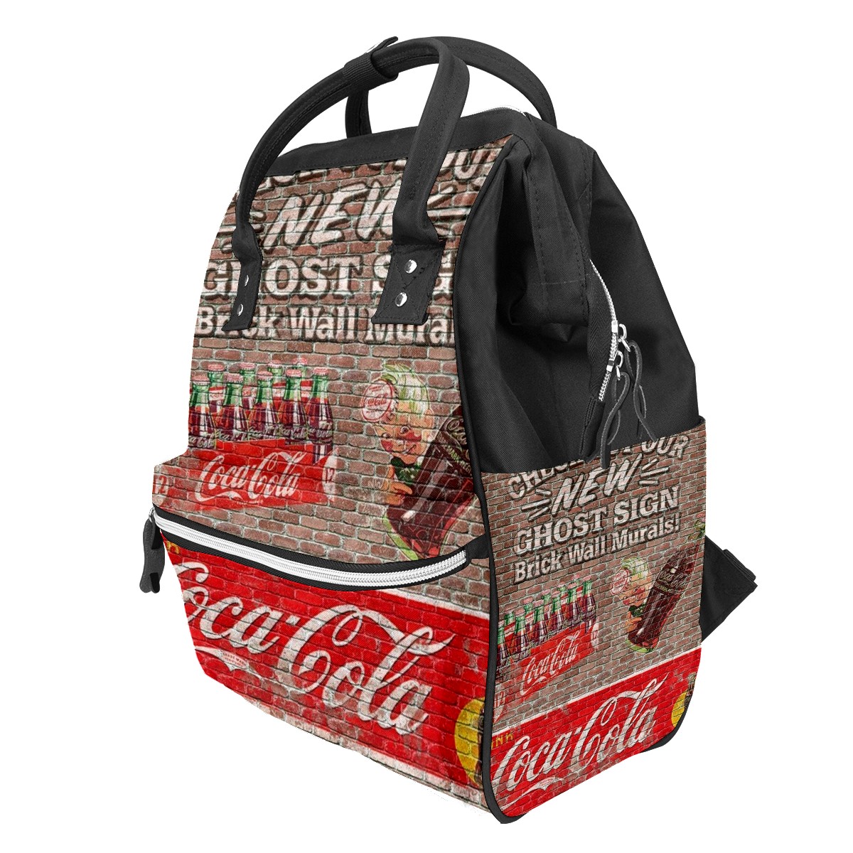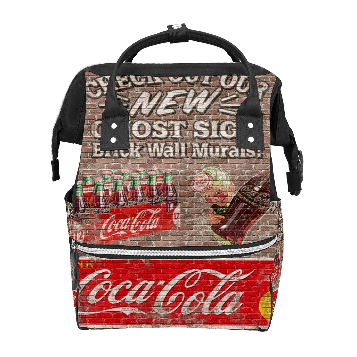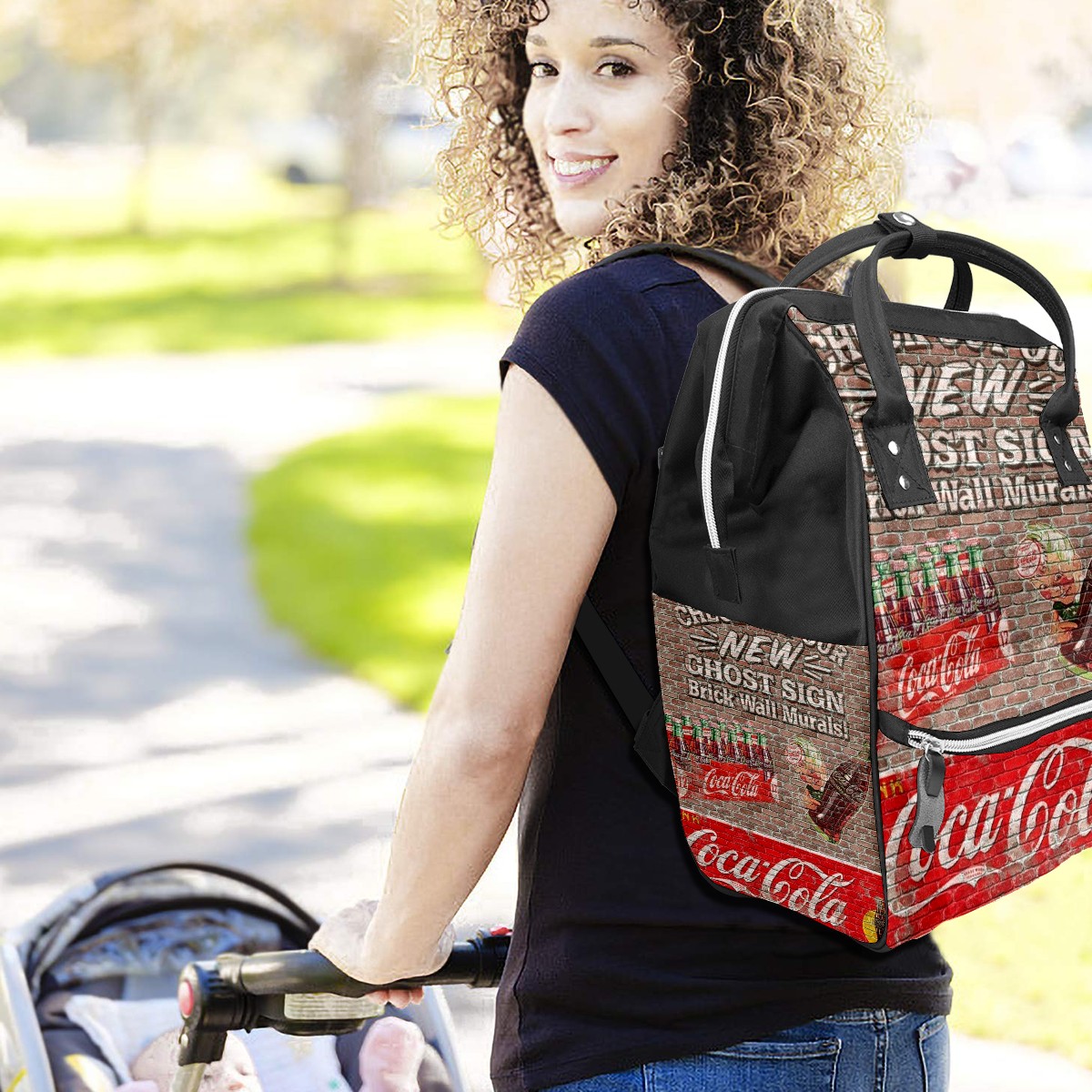 Backpack Diaper Bag Coca Cola Wall Retro Waterproof Baby Bag Mom and Dad's Diaper Backpack Lightweight Large Capacity Diaper Bag Travel Daypack