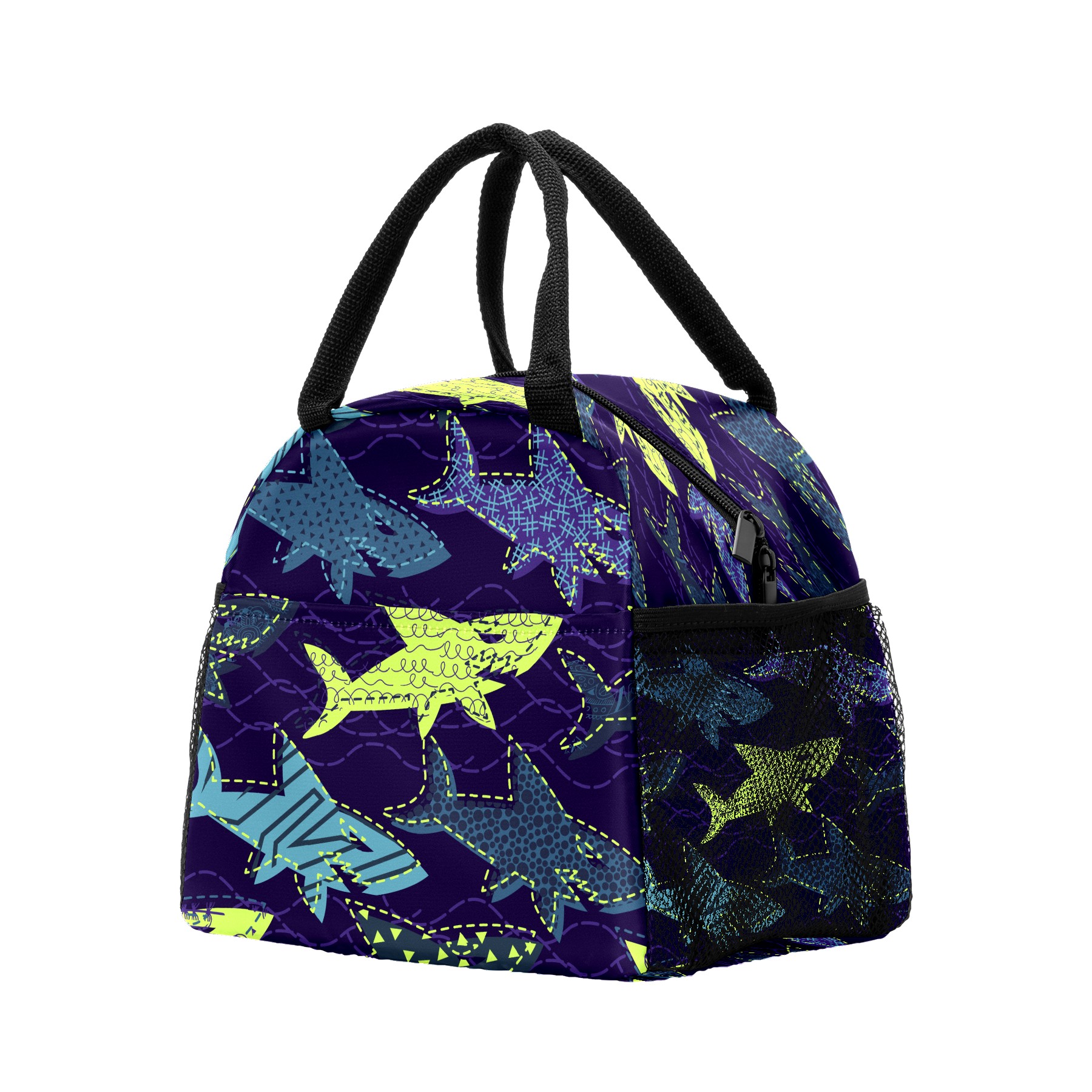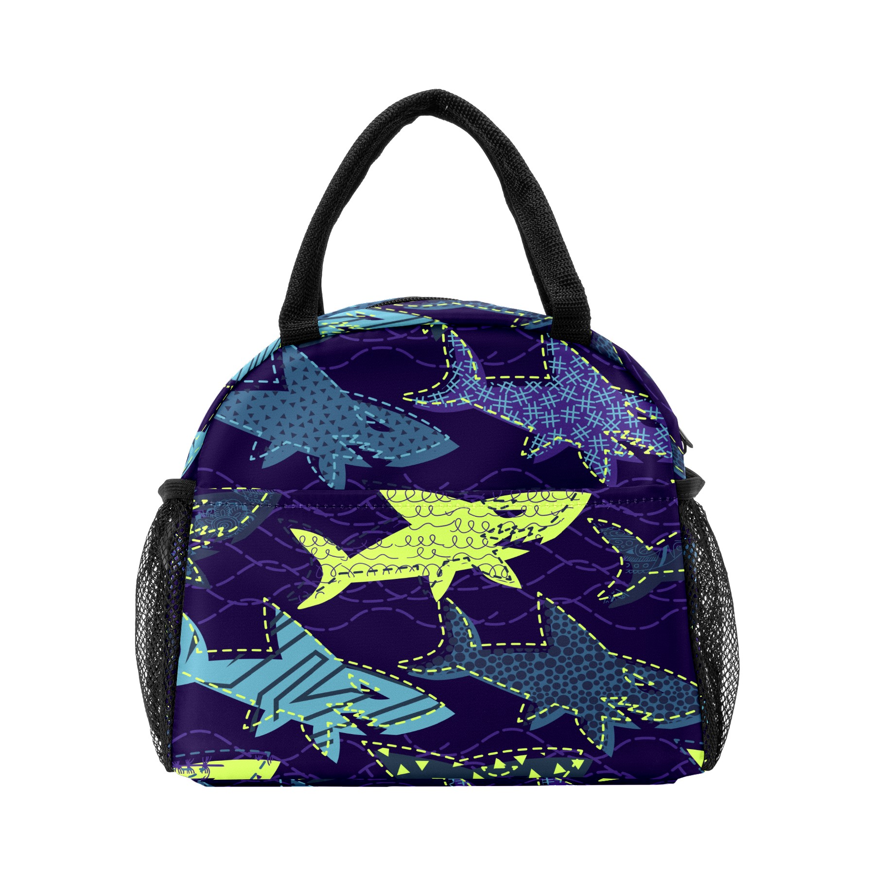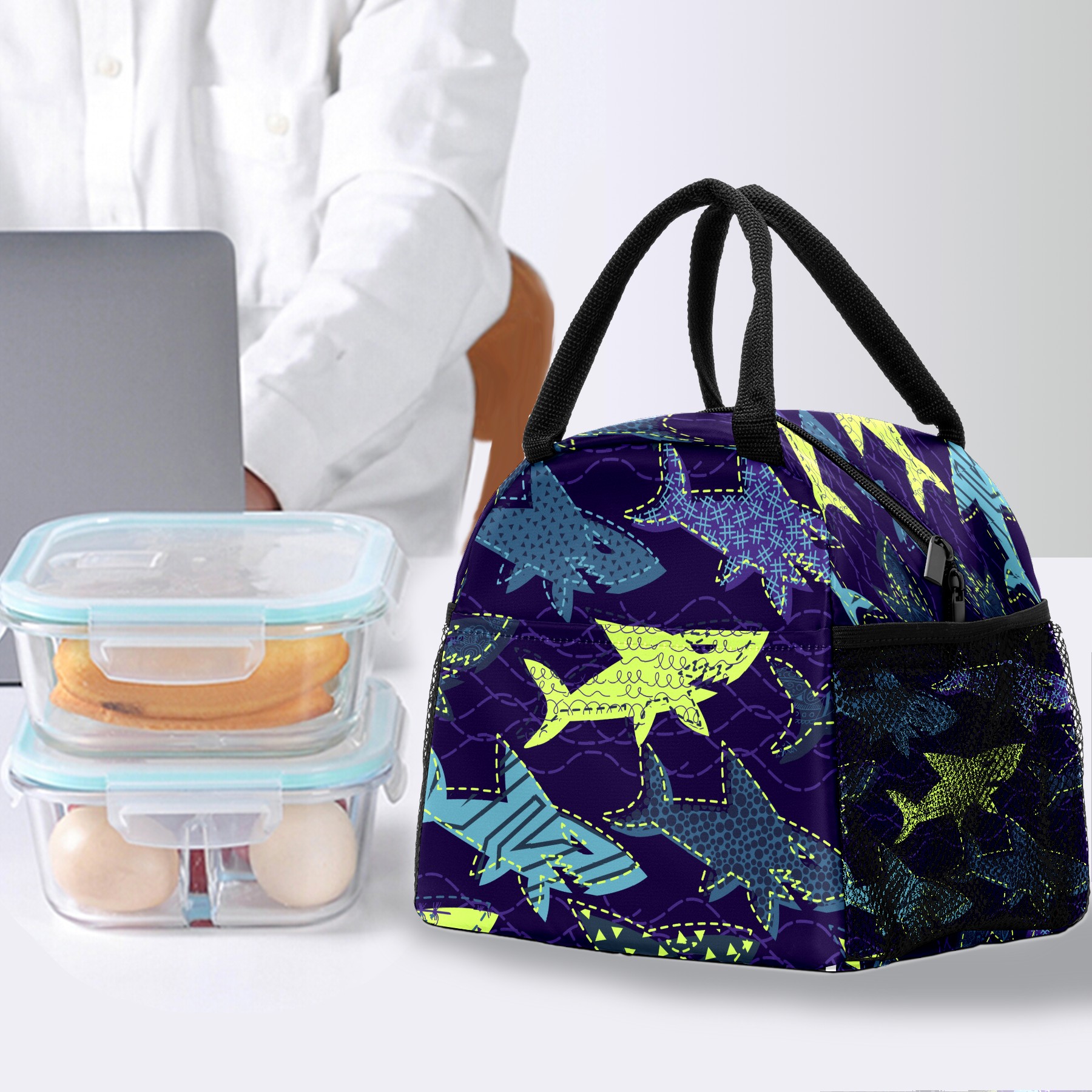 Lunch Bag for Women Men, Ocean Sea Shark Pattern Insulated Reusable Lunch Box Thermal Cooler Tote Bag for Work Picnic Hiking Travel Beach