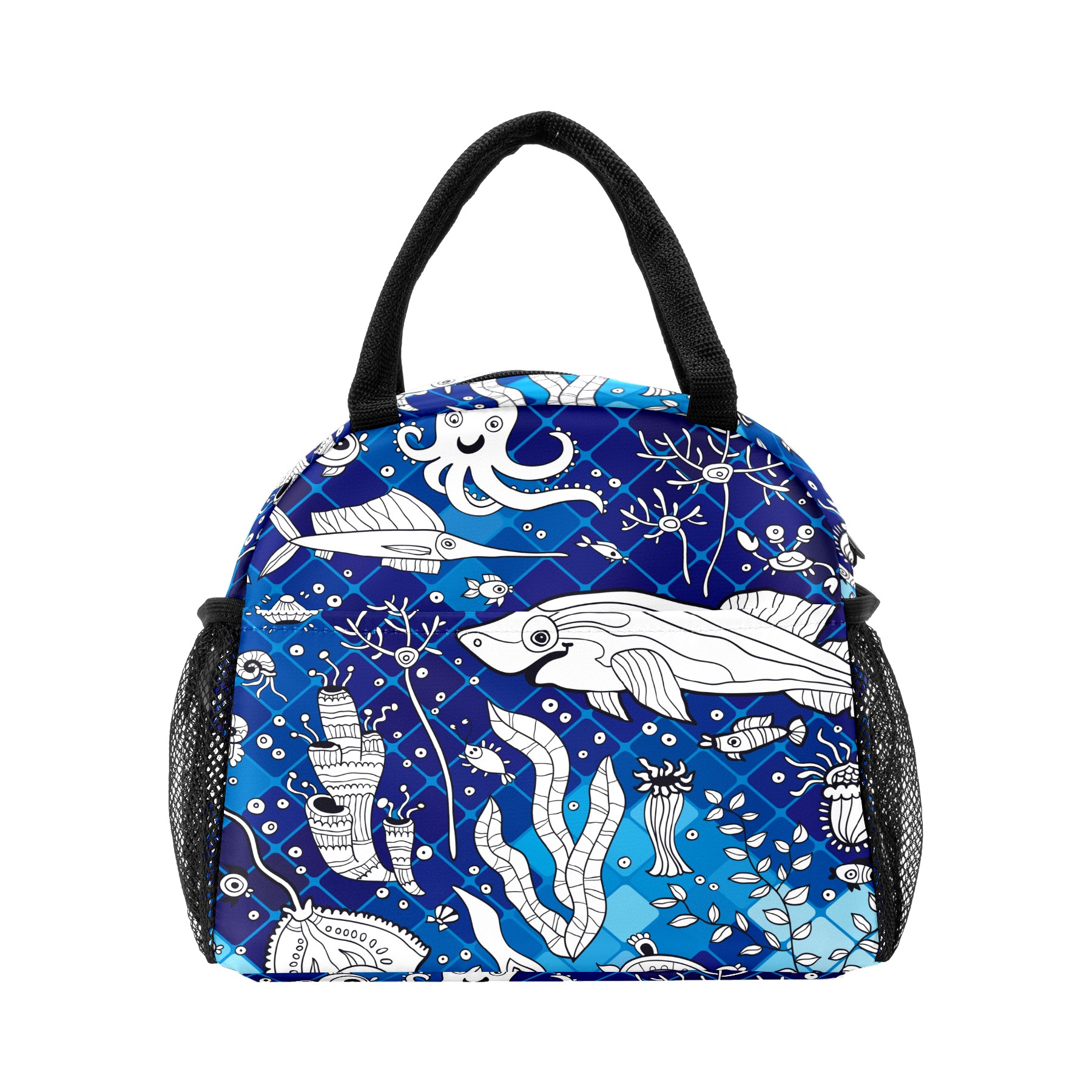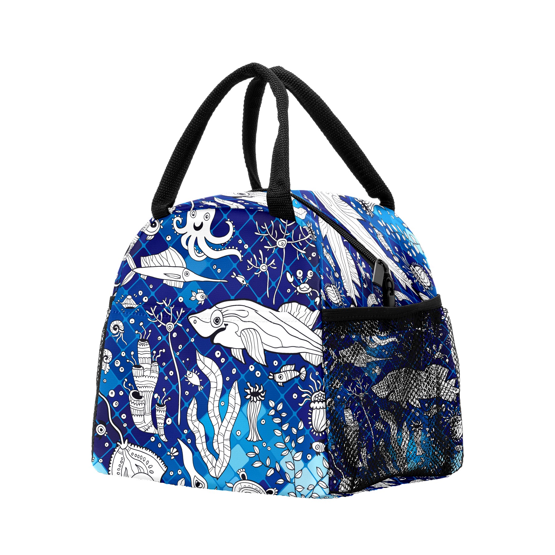 Lunch Bag for Women Men, Ocean Sea Fish Snail Octopus Insulated Reusable Lunch Box Thermal Cooler Tote Bag for Work Picnic Hiking Travel Beach