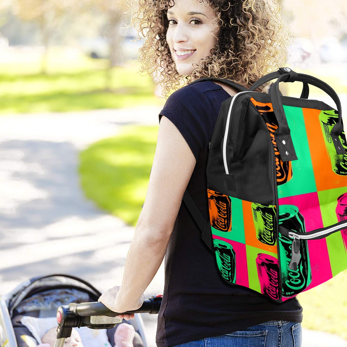 Backpack Diaper Bag Coca Cola Can Four Square Grid Waterproof Baby Bag Mom and Dad's Diaper Backpack Lightweight Large Capacity Diaper Bag Travel Daypack