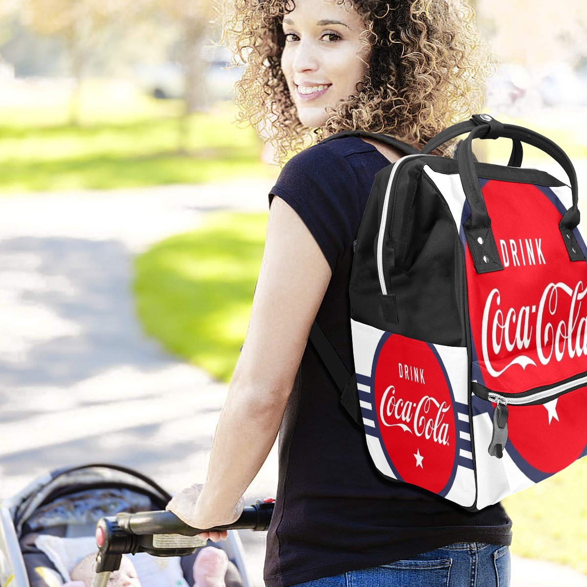 Backpack Diaper Bag Coca Cola Red Navy Blue Waterproof Baby Bag Mom and Dad's Diaper Backpack Lightweight Large Capacity Diaper Bag Travel Daypack