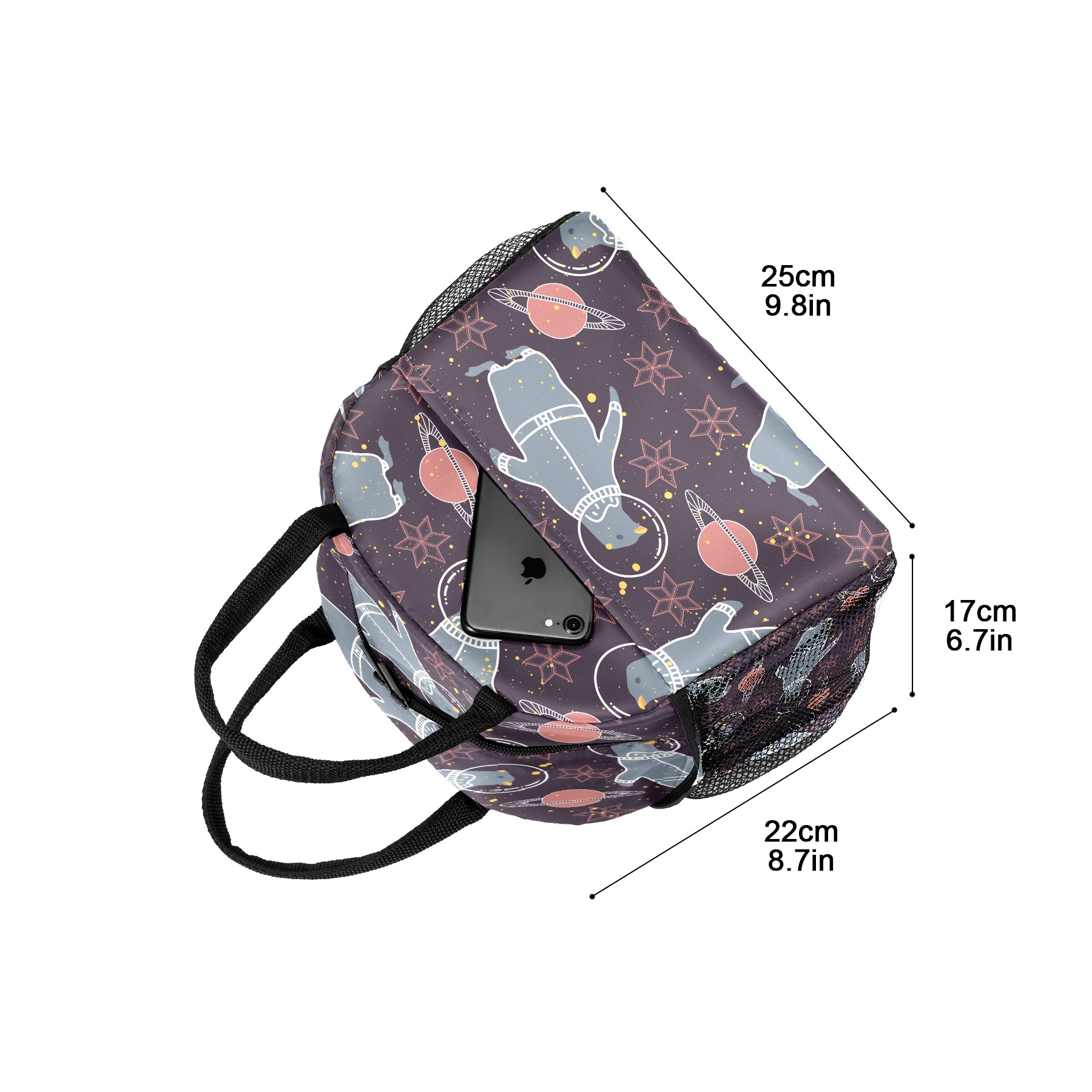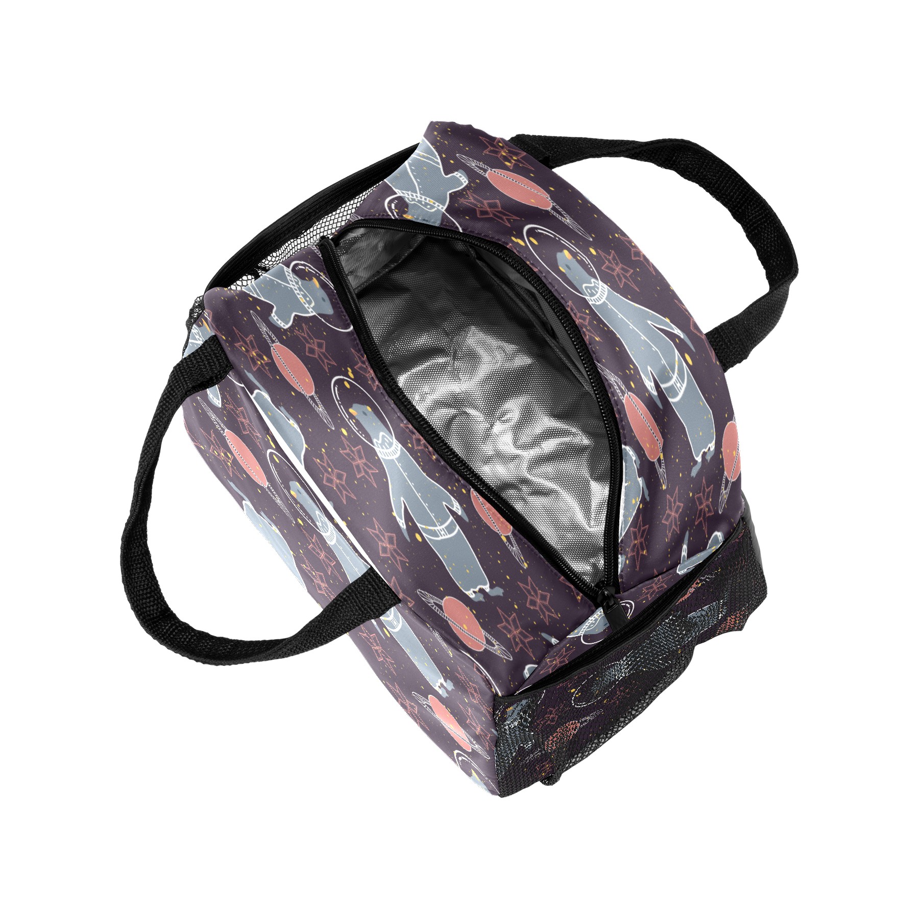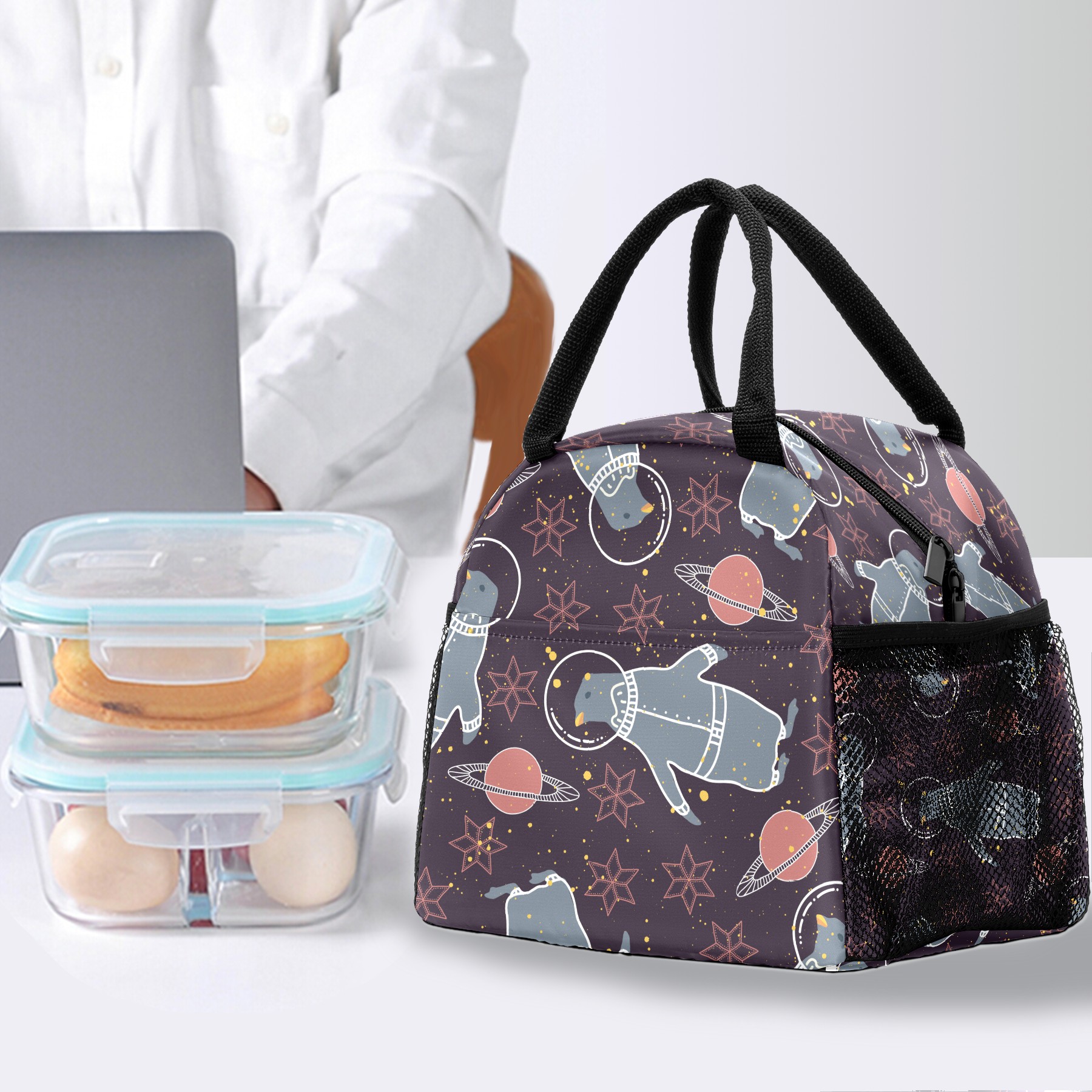 Lunch Bag for Women Men, Galaxy Planet Spaceship Polar Bear Astronaut Insulated Reusable Lunch Box Thermal Cooler Tote Bag for Work Picnic Hiking Travel Beach