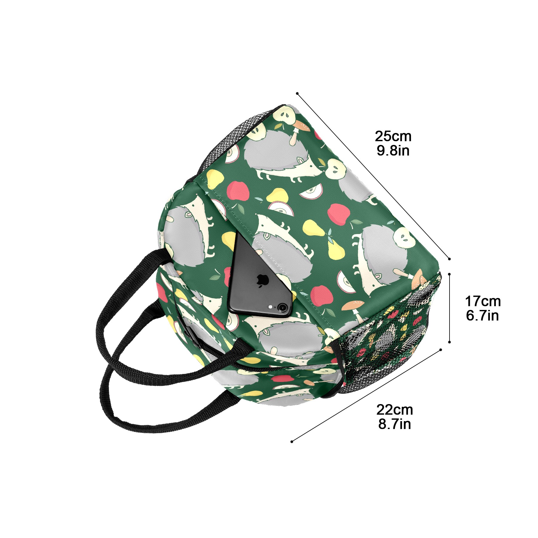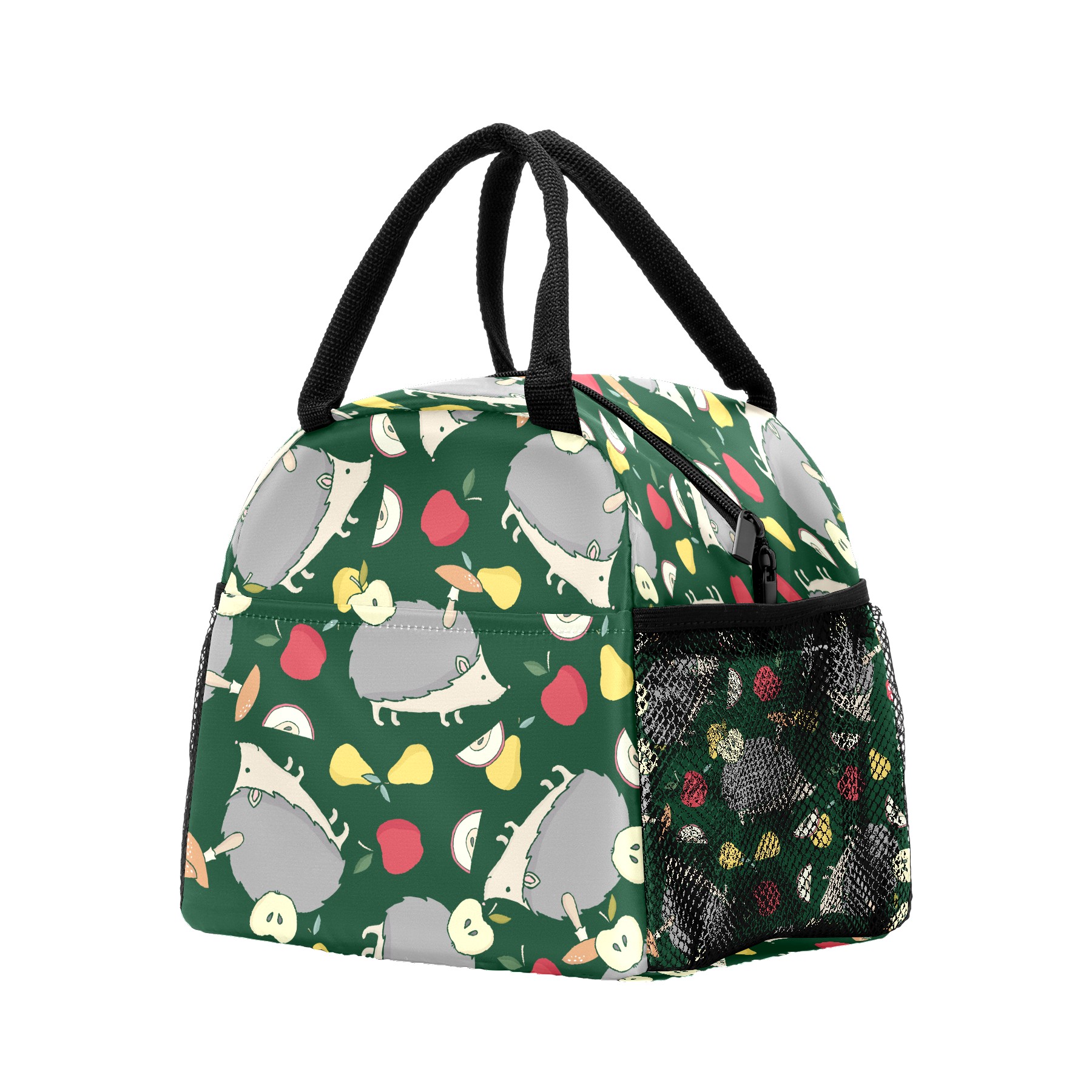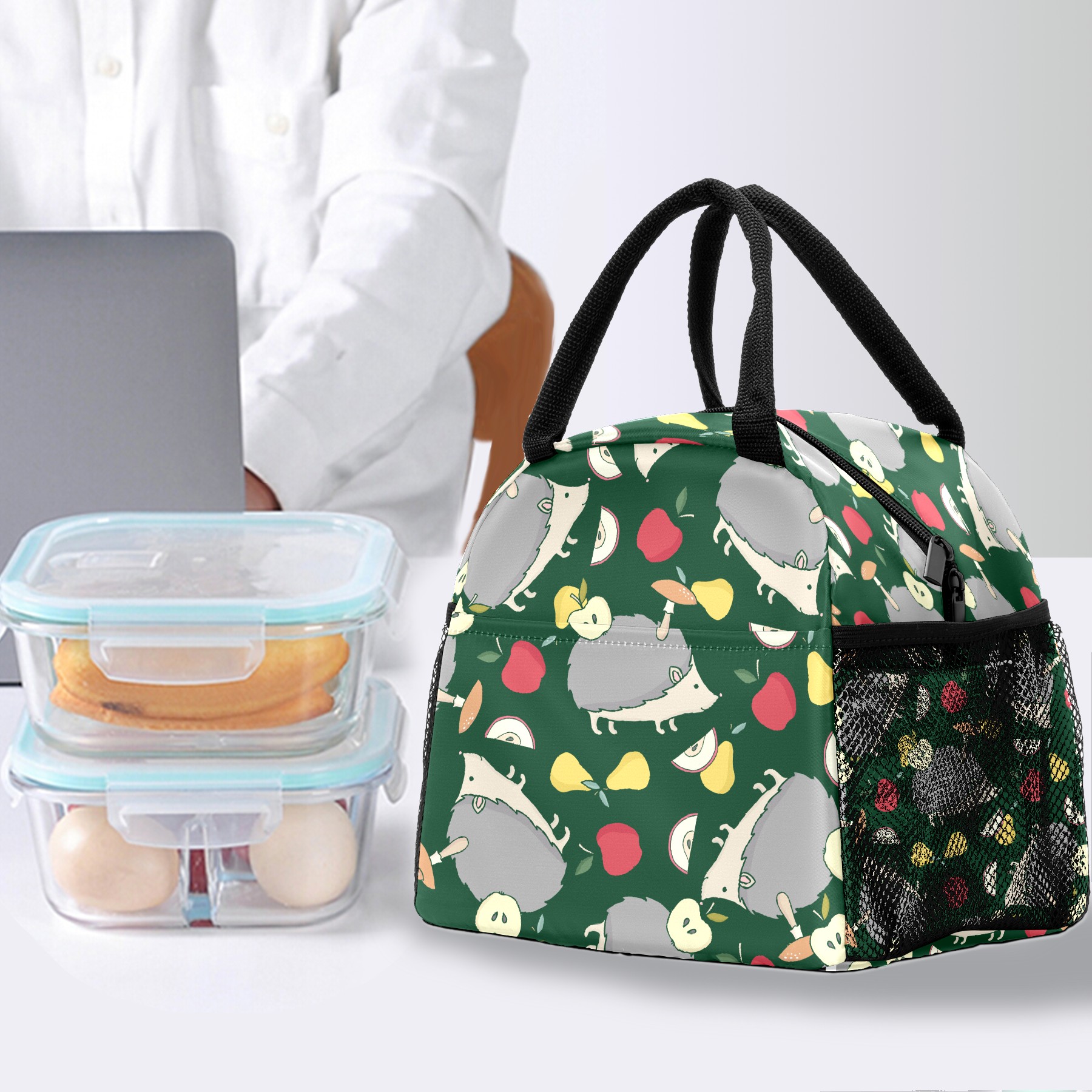 Lunch Bag for Women Men, Hedgehog Apple Pattern Insulated Reusable Lunch Box Thermal Cooler Tote Bag for Work Picnic Hiking Travel Beach