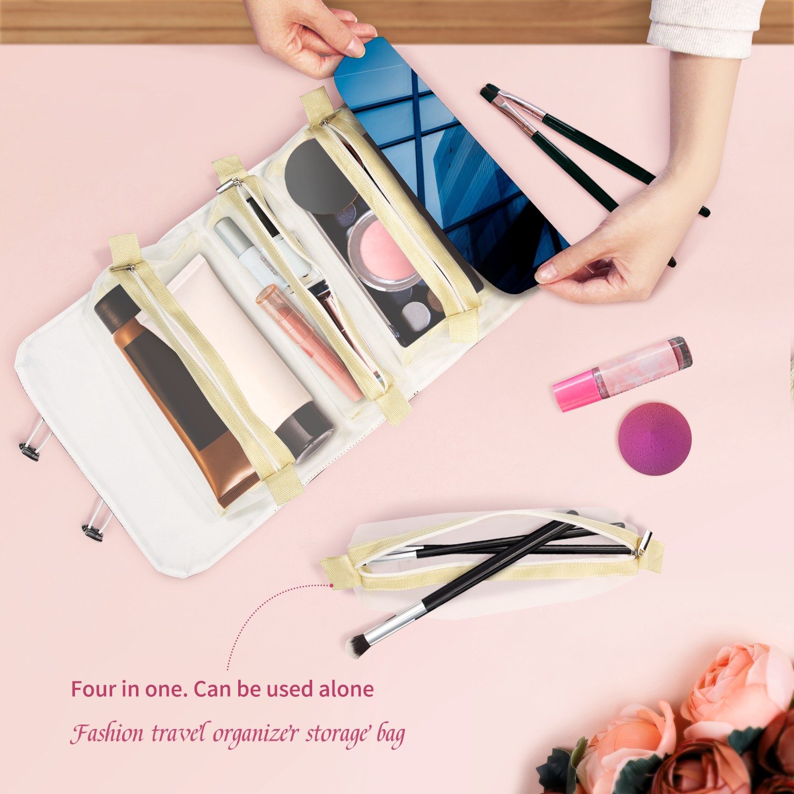 Makeup Bag Organizer Toiletry Bags for Traveling Travel Makeup Organizer Make Up Case Roll Up Toiletry Bag Makeup Bag Modern City Travel Cosmetic Bag