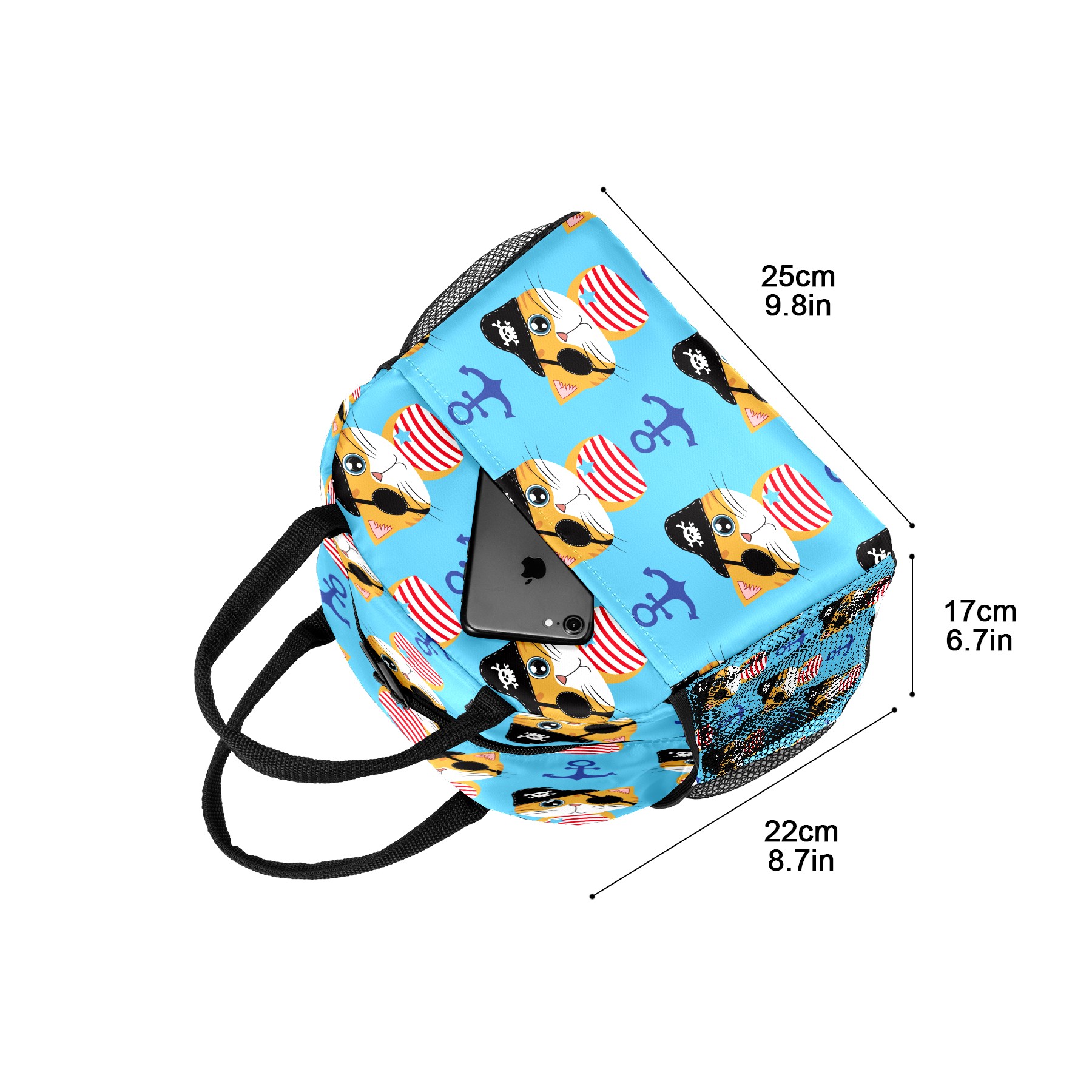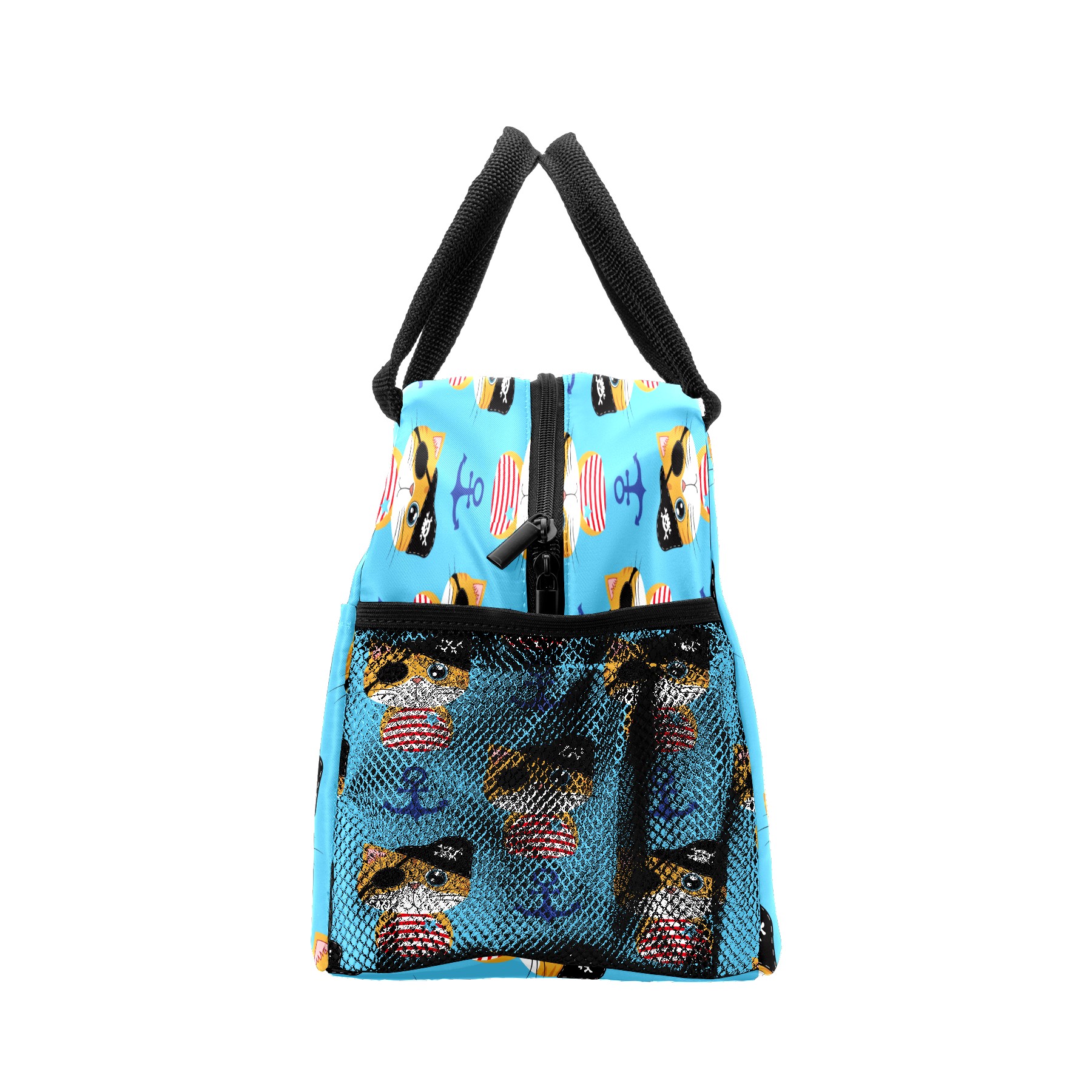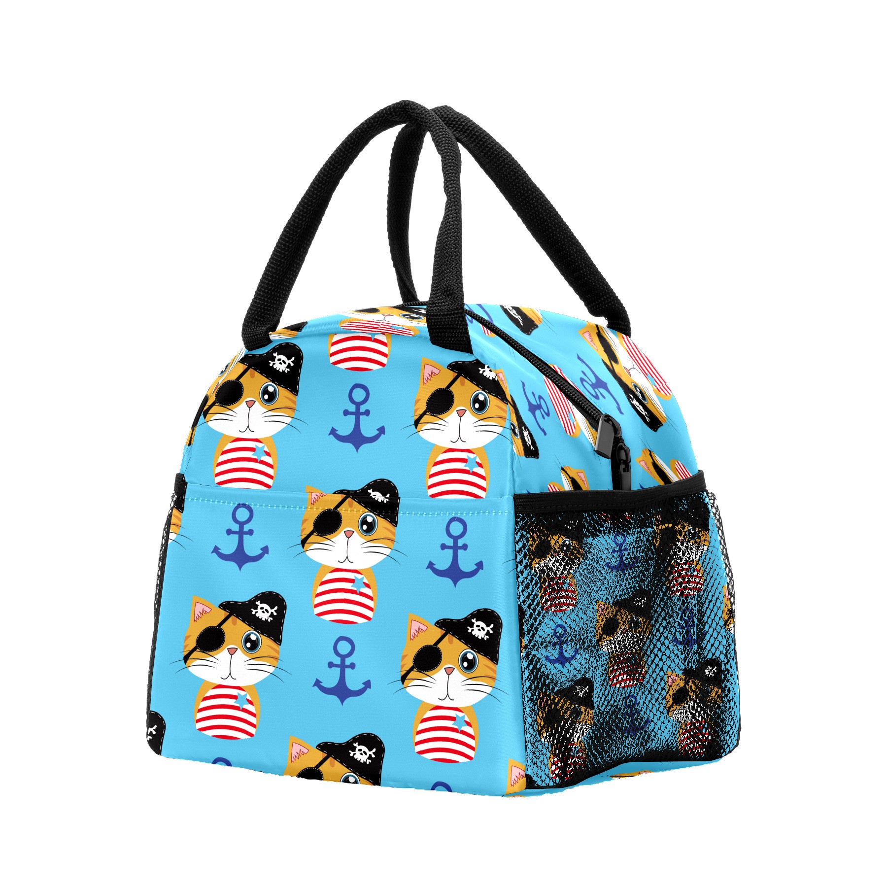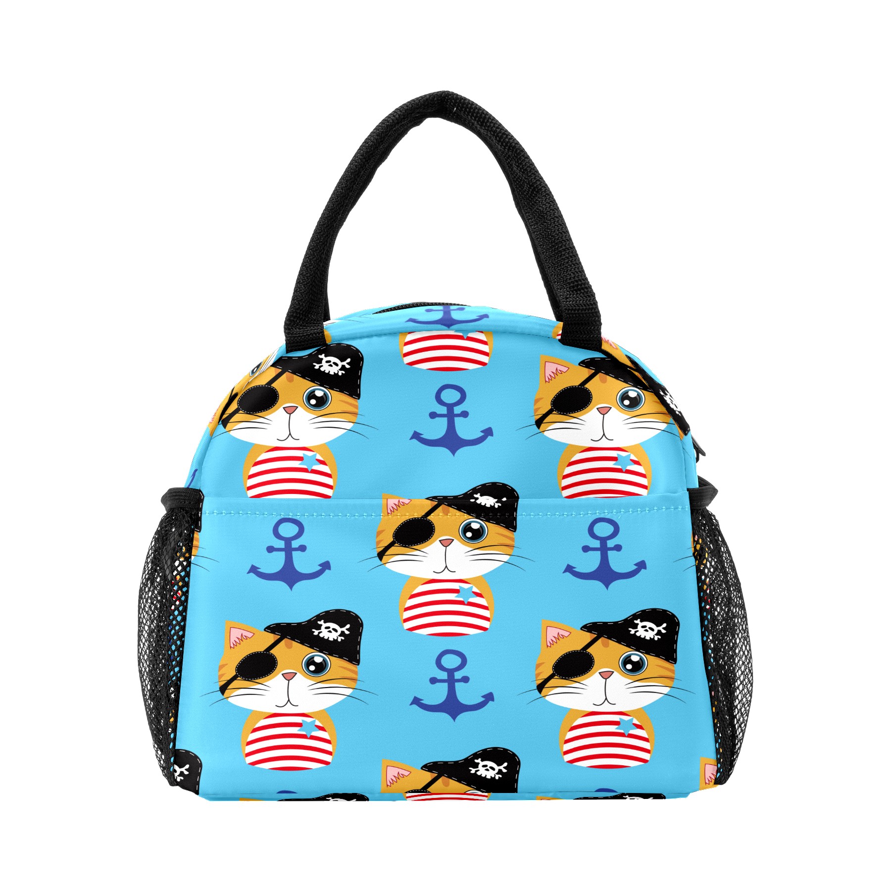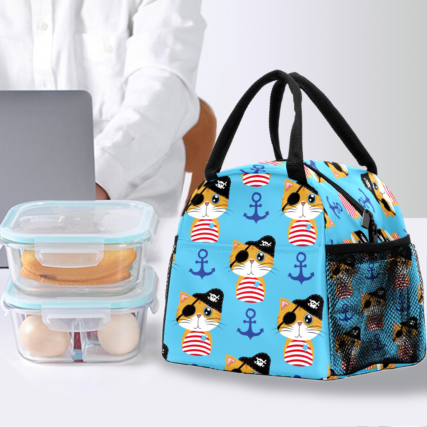 Lunch Bag for Women Men, Nautical Pirate Cat Anchor Pattern Insulated Reusable Lunch Box Thermal Cooler Tote Bag for Work Picnic Hiking Travel Beach