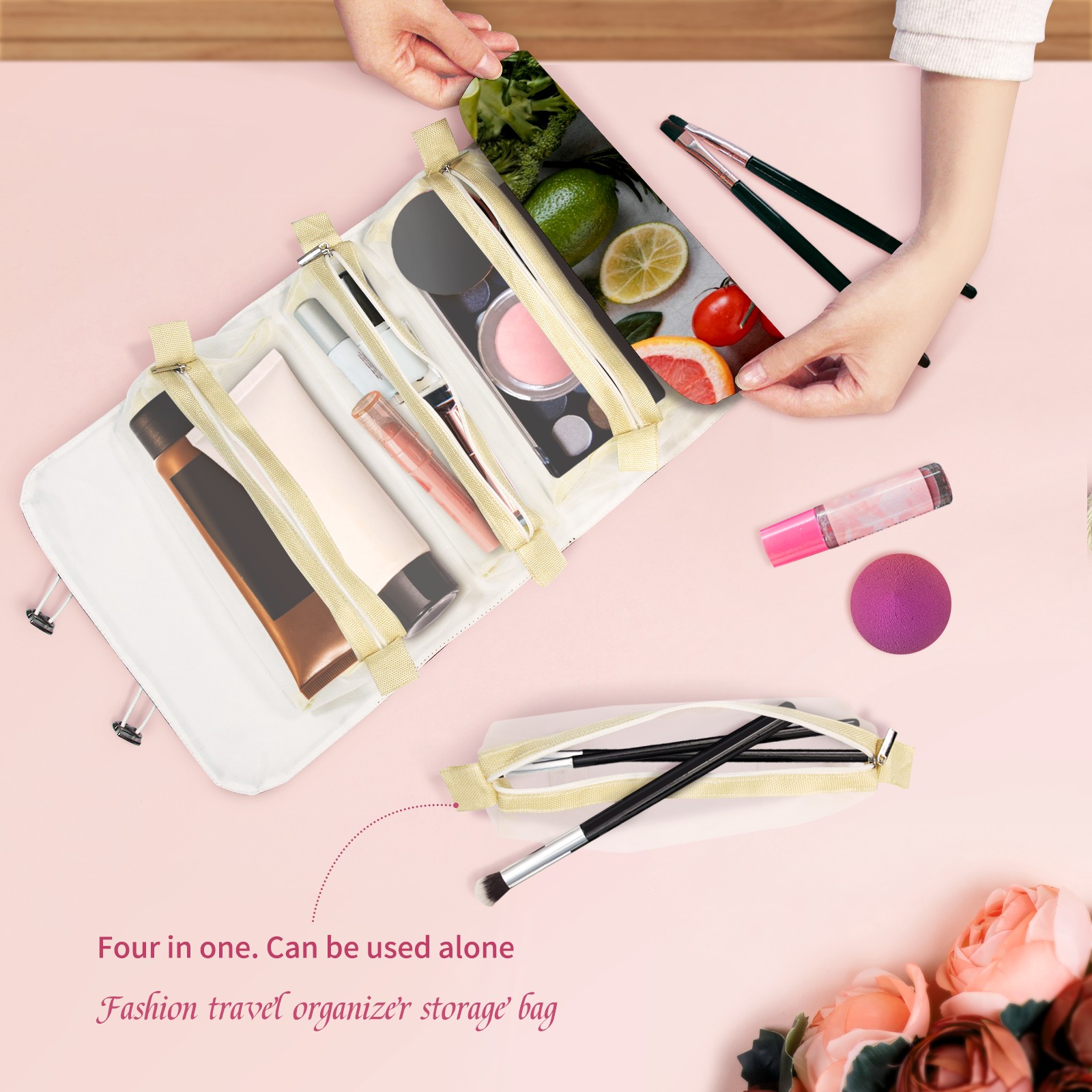 Makeup Bag Organizer Toiletry Bags for Traveling Travel Makeup Organizer Make Up Case Roll Up Toiletry Bag Makeup Bag Juicy Fruit & Vegetables Travel Cosmetic Bag