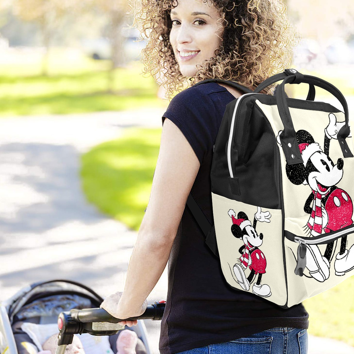 Backpack Diaper Bag Mickey Mouse Vintage Santa Claus Waterproof Baby Bag Mom and Dad's Diaper Backpack Lightweight Large Capacity Diaper Bag Travel Daypack