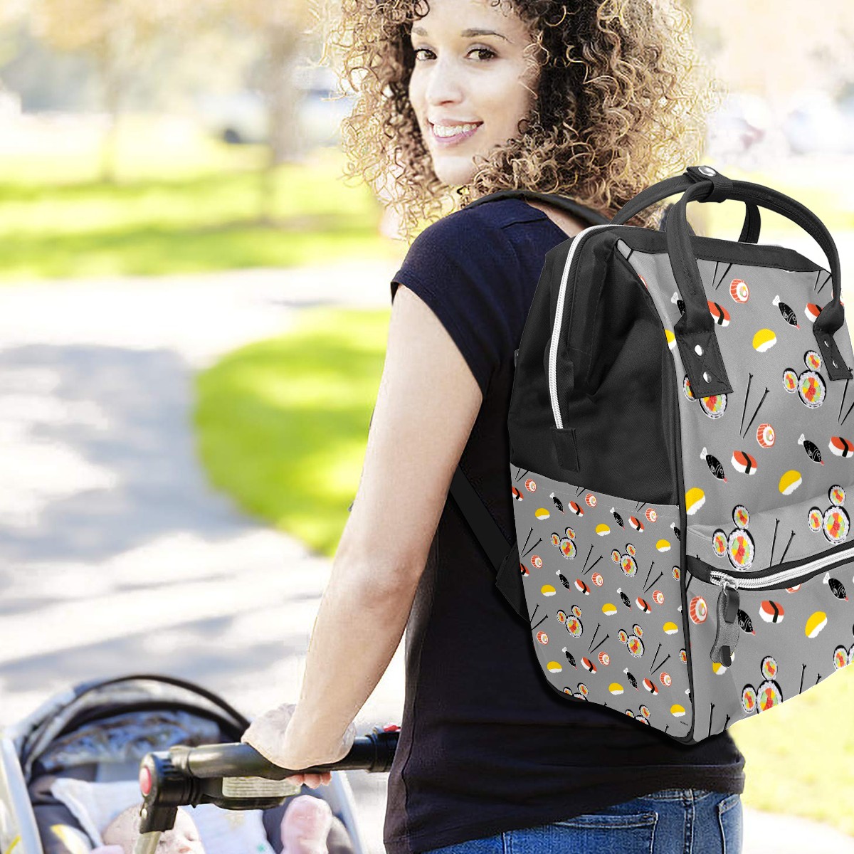 Backpack Diaper Bag Mickey Mouse Sushi Icon Pattern Waterproof Baby Bag Mom and Dad's Diaper Backpack Lightweight Large Capacity Diaper Bag Travel Daypack