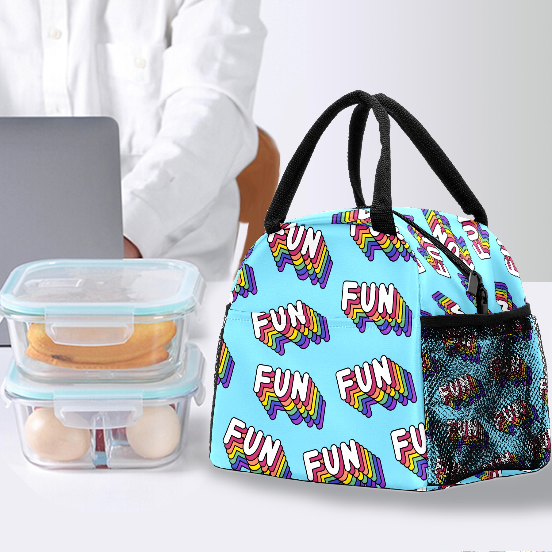 Lunch Bag for Women Men, Funny Rainbow Colorful FUN Pattern Insulated Reusable Lunch Box Thermal Cooler Tote Bag for Work Picnic Hiking Travel Beach