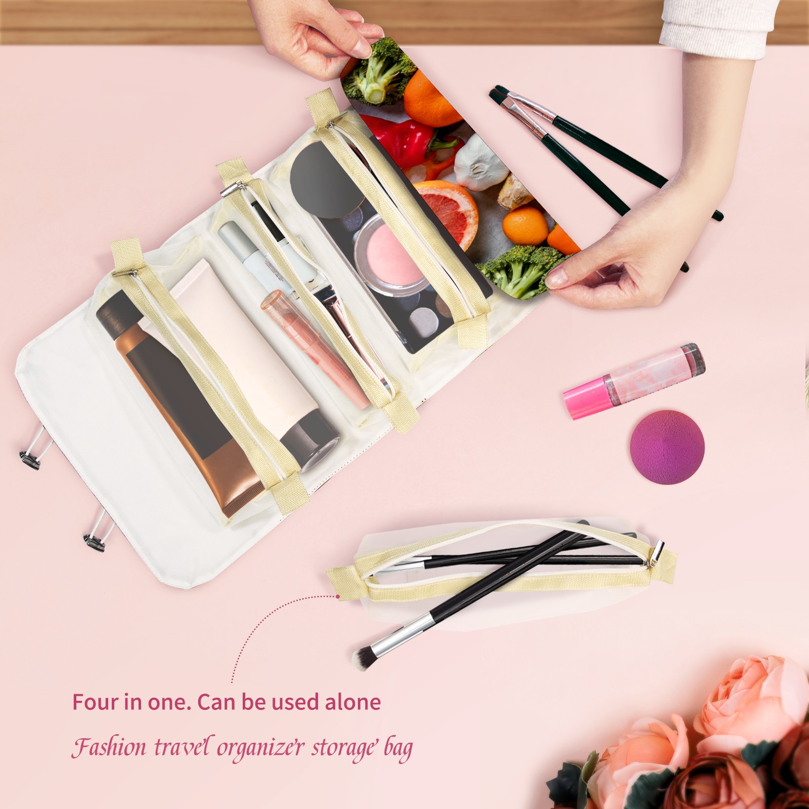 Makeup Bag Organizer Toiletry Bags for Traveling Travel Makeup Organizer Make Up Case Roll Up Toiletry Bag Makeup Bag Healthy Food Composition Travel Cosmetic Bag