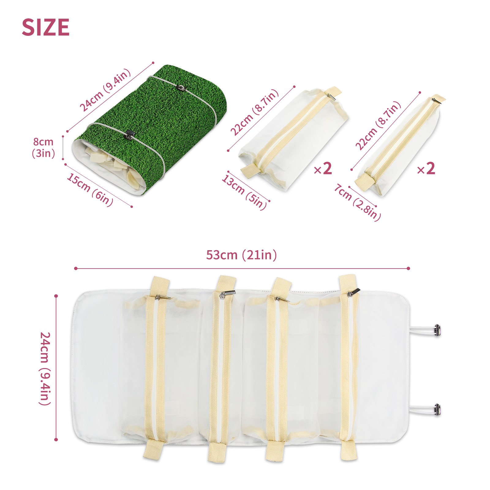 <p> This is a nice and compact travel/ organizer bag. All the pouches are removable. This makes it very easy to use or pull out what you need in the moment, and not get stuck rummaging through a bag and not being able to find your items. It folds up nicely, and has 2 bungee straps that you can sinch tight to hold. It works great for traveling. </p> <p> </p> <p><b> Notes:&nbsp; </b></p> <p> 1.Due to the difference between different monitors,the picture may not reflect the actual color of the item. We guarantee the style is the same as shown in the pictures.&nbsp; </p> <p> 2.Due to the manual measurement and different measurement methods, please allow 1-3cm deviation.Thanks! </p>