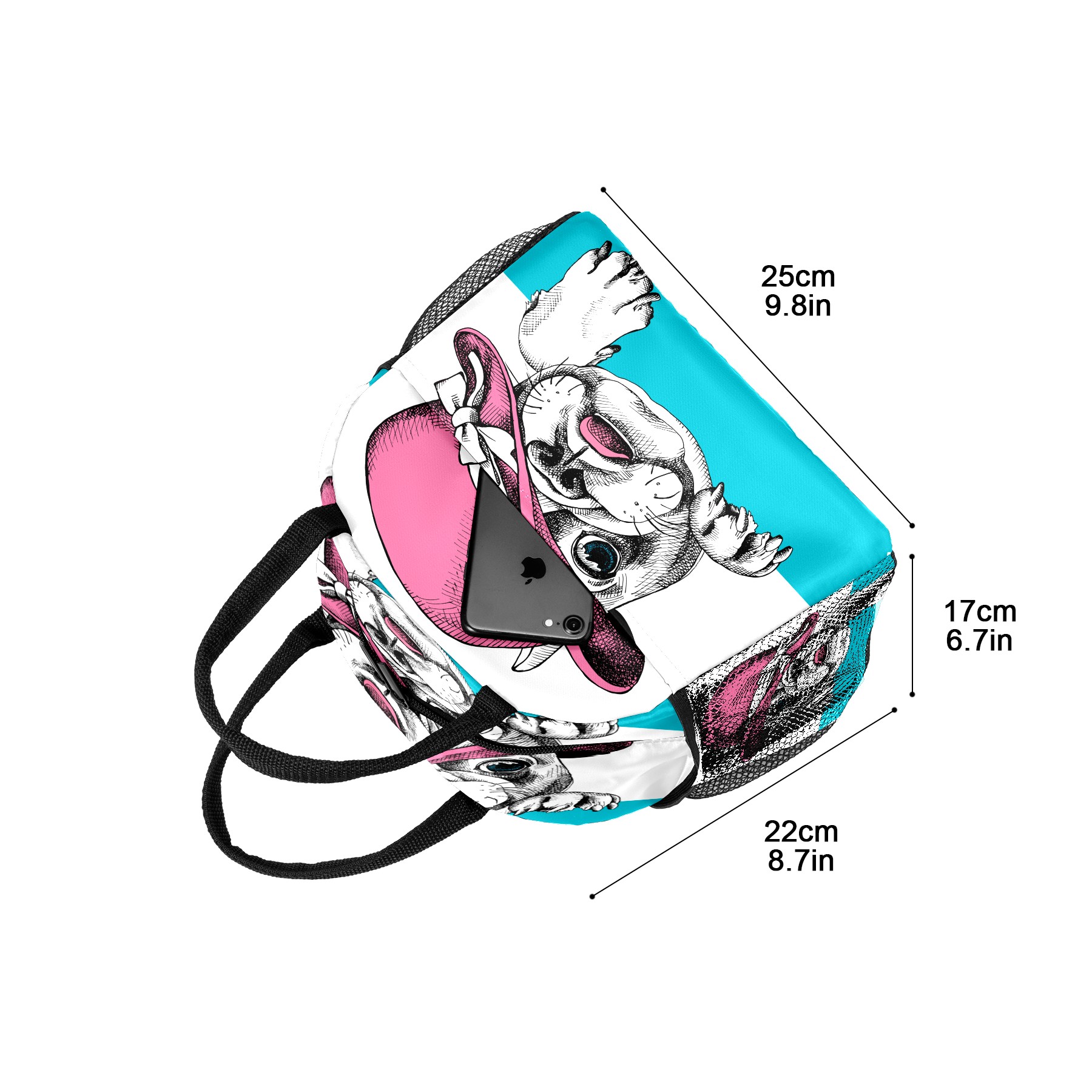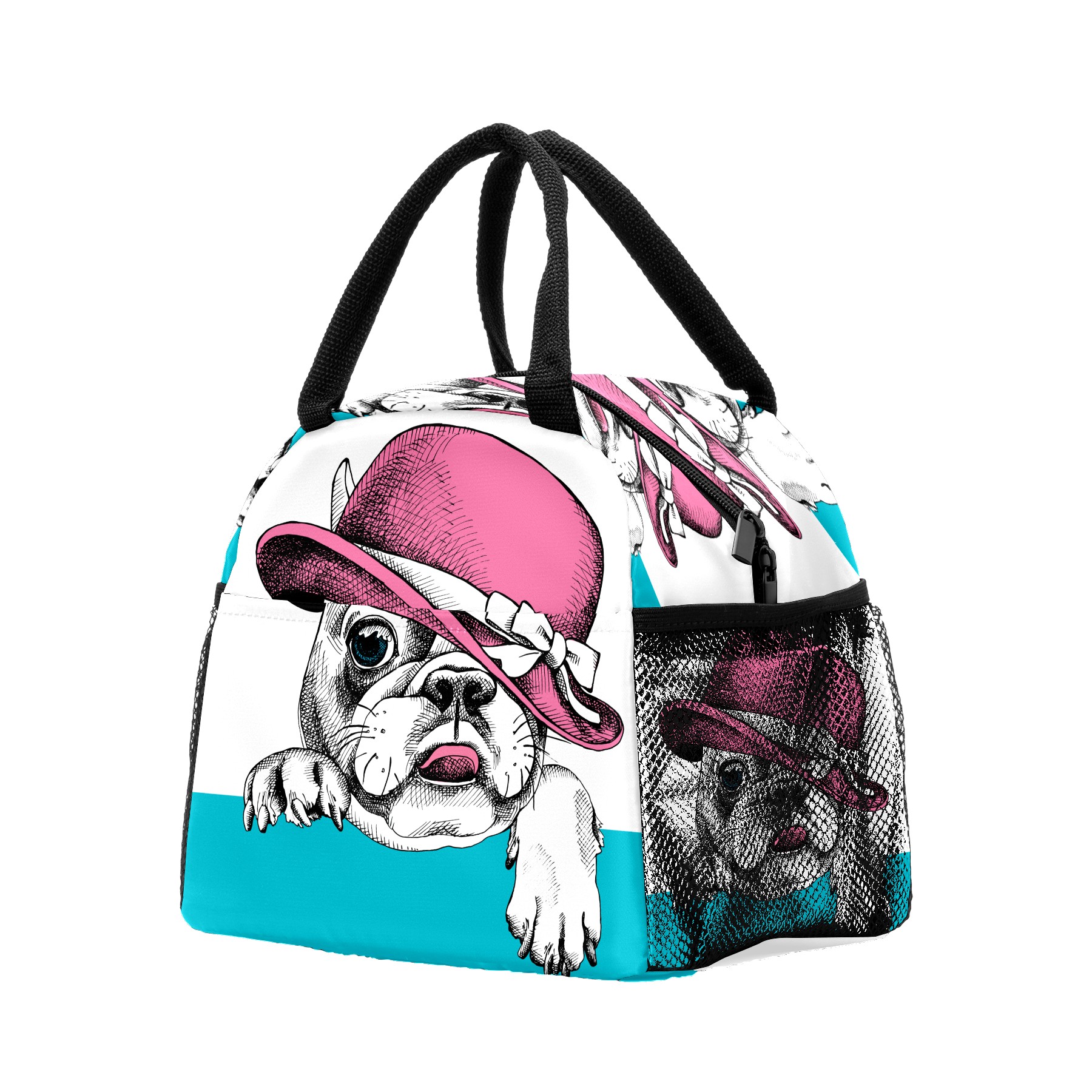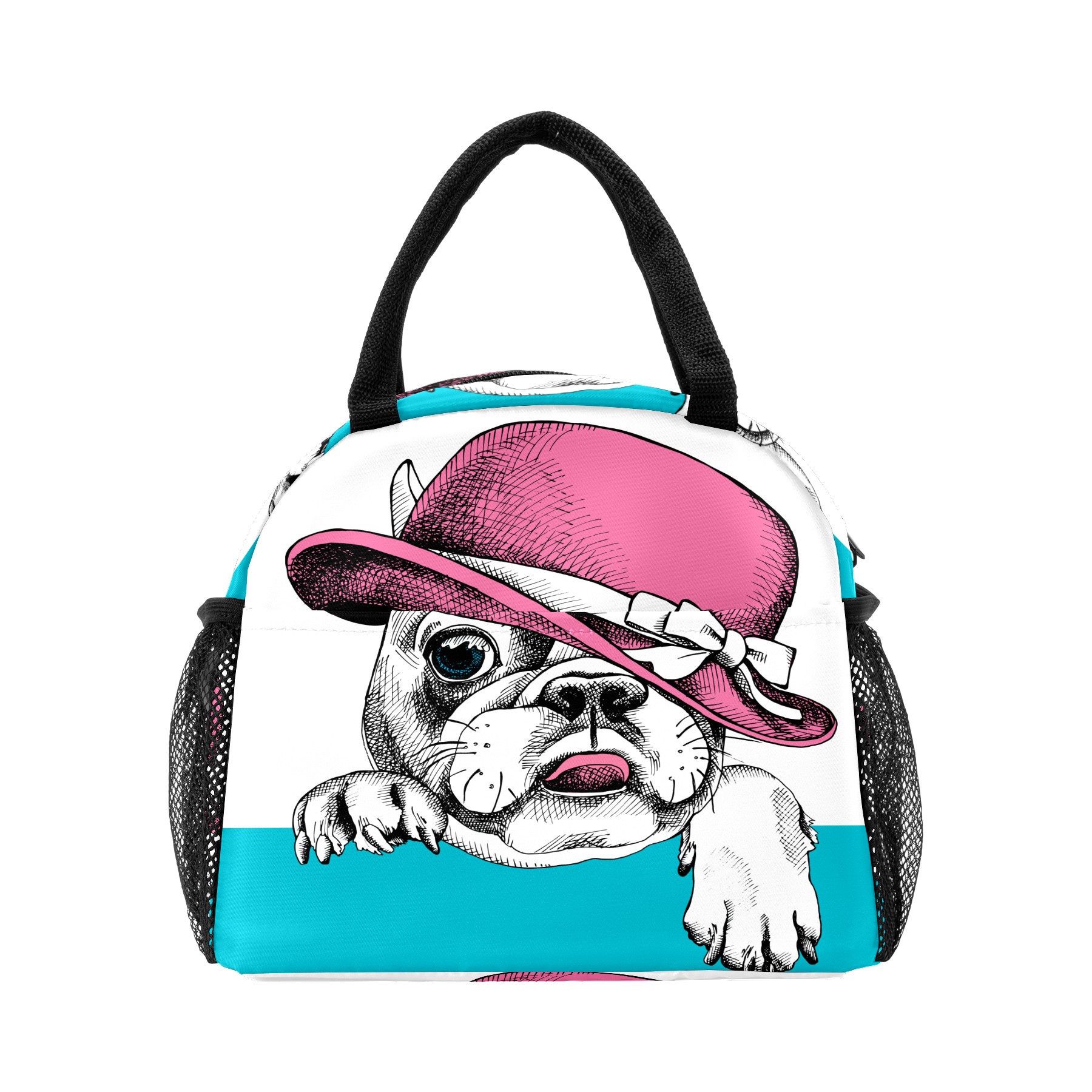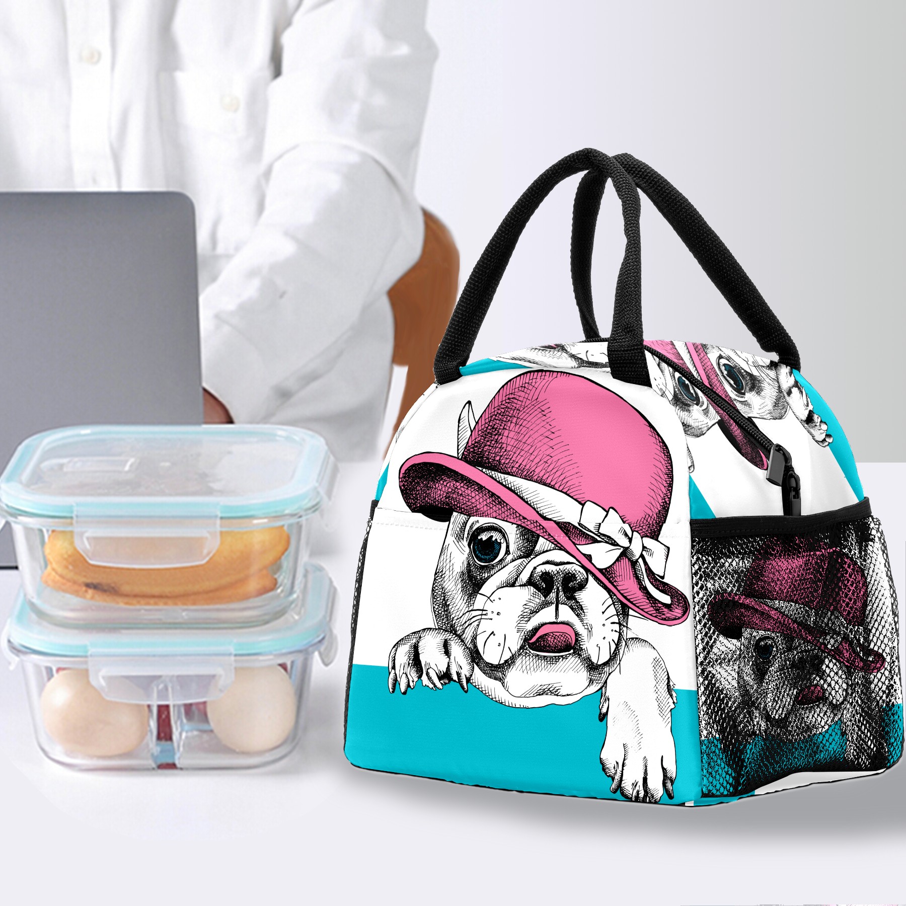 Lunch Bag for Women Men, Funny Pug With Hat Insulated Reusable Lunch Box Thermal Cooler Tote Bag for Work Picnic Hiking Travel Beach